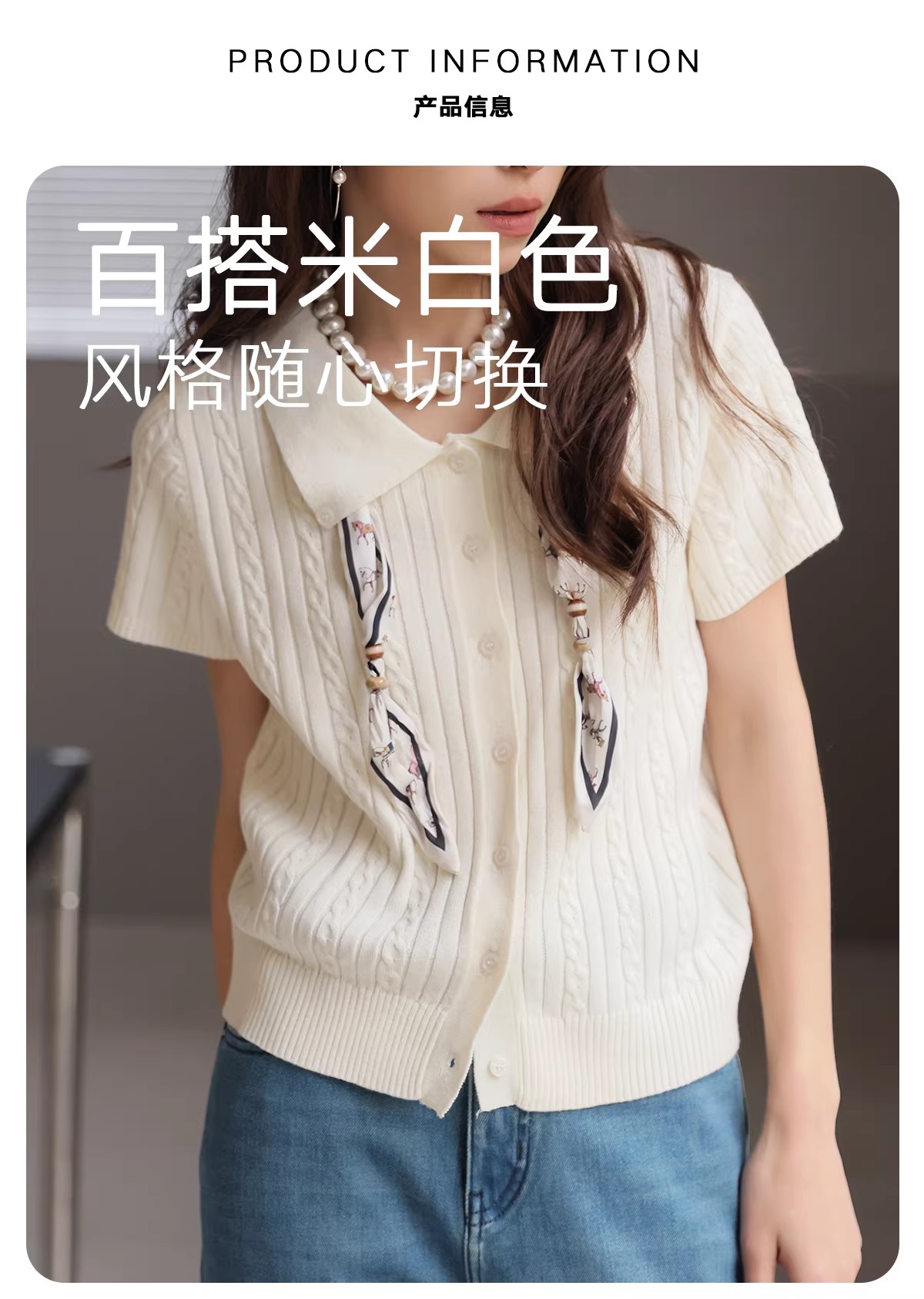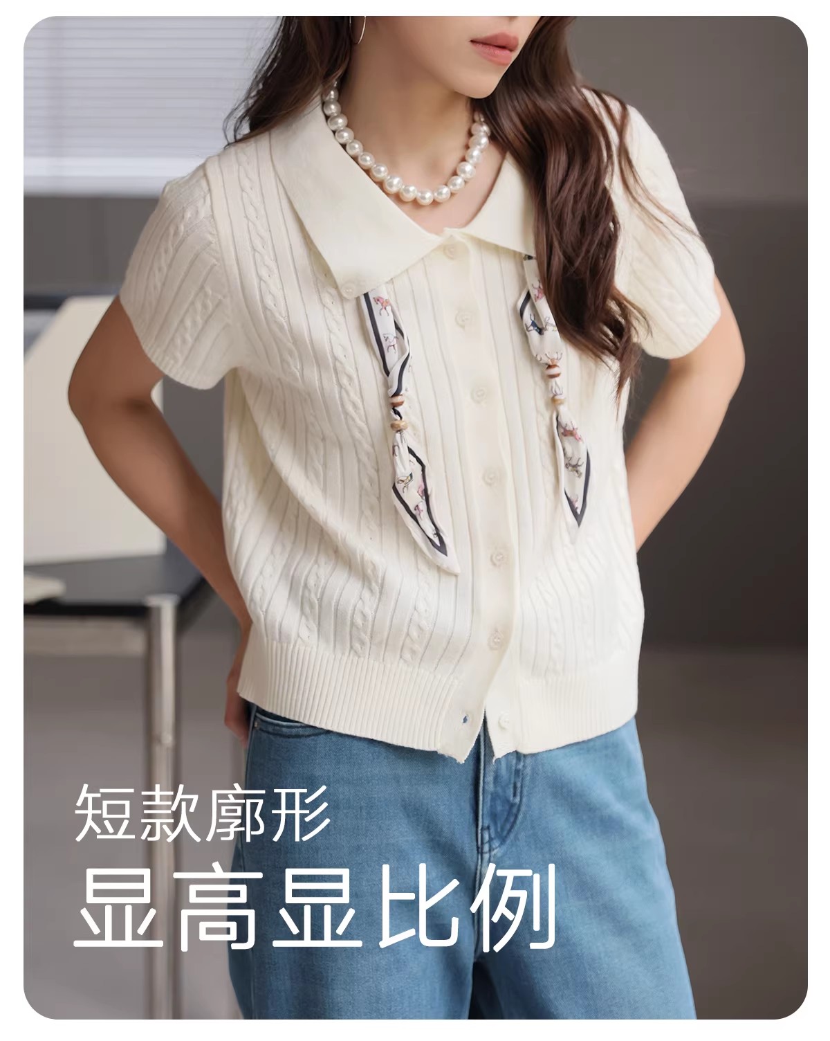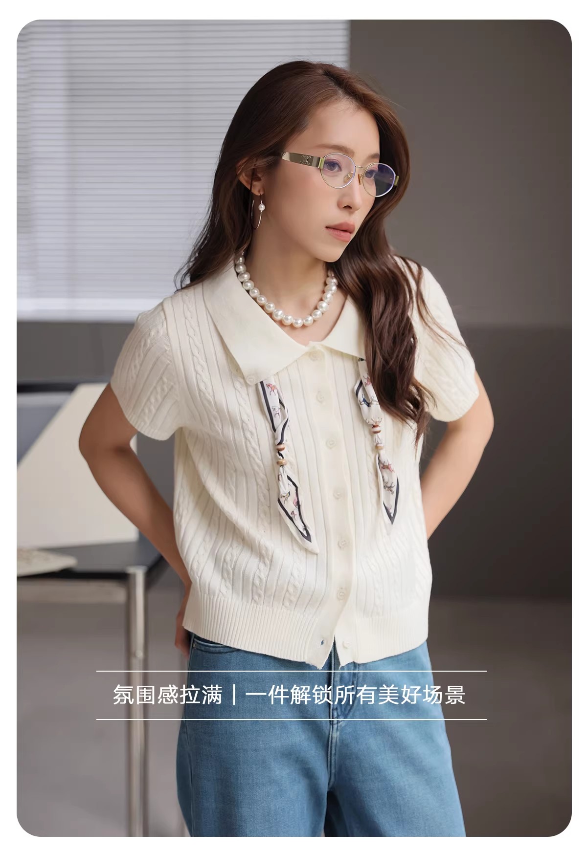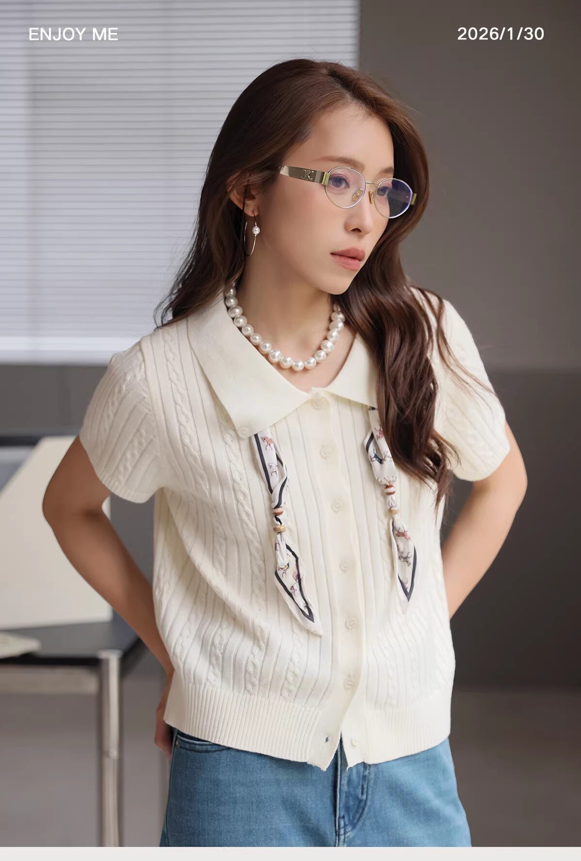 【门店同款】ENJOY春季“柔权主义”配丝巾短袖针织衫 169250398