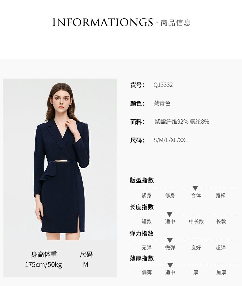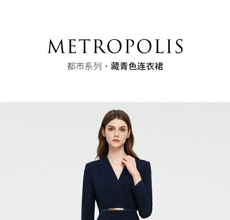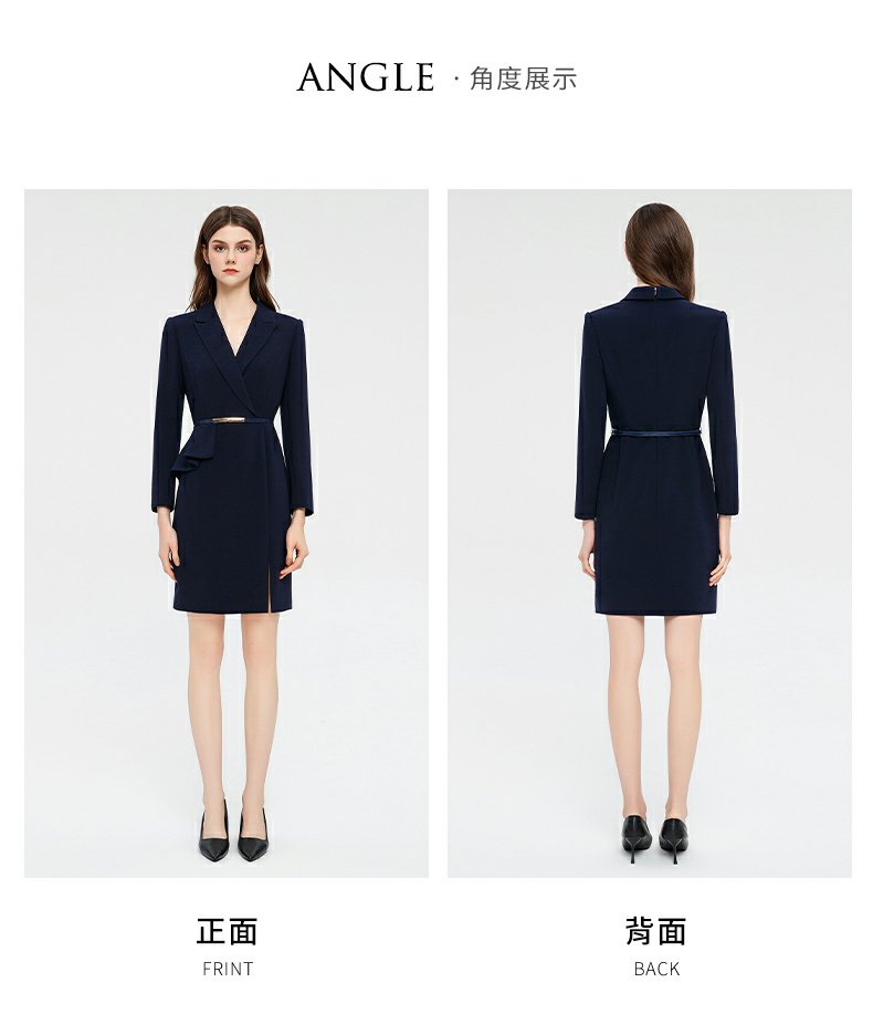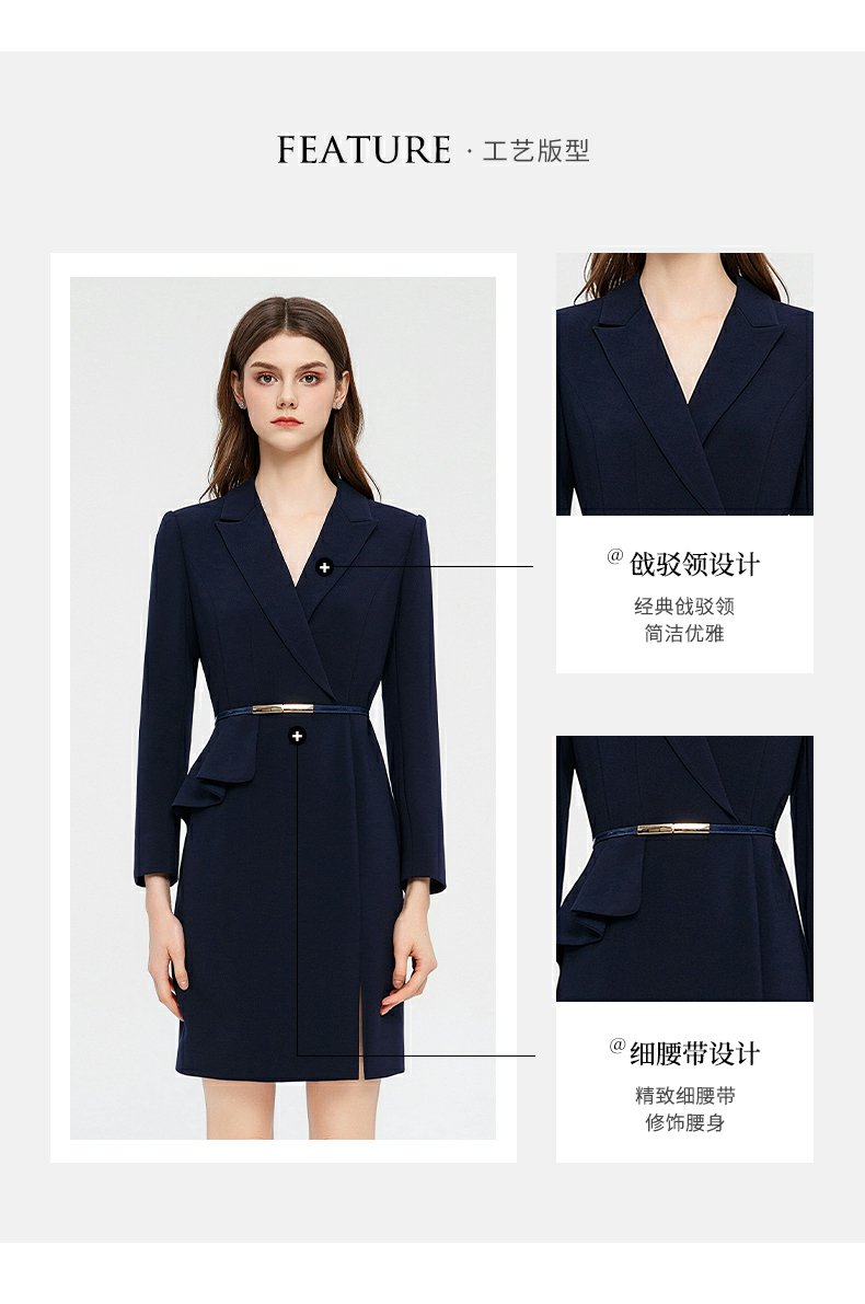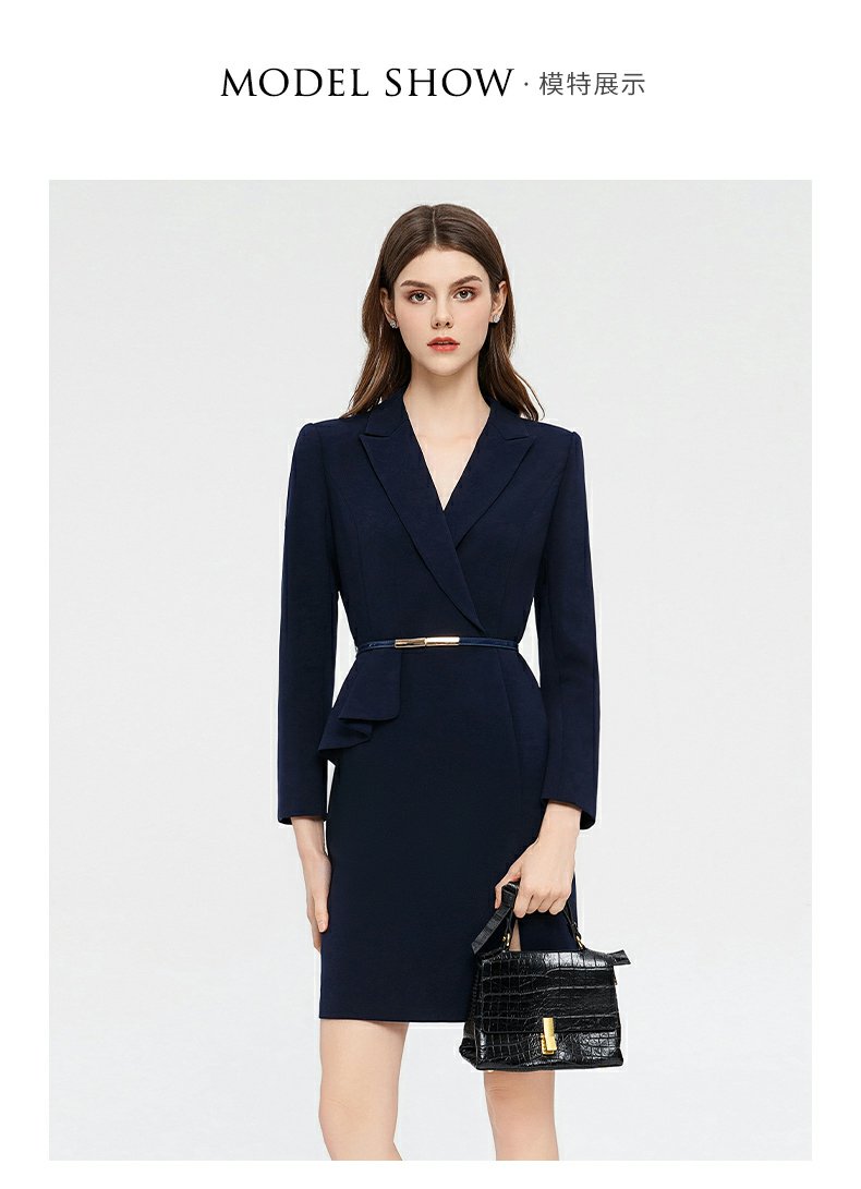 IWY/时尚干练藏青色西装连衣裙女2023新款气质女神范通勤总裁职业正装Q13332