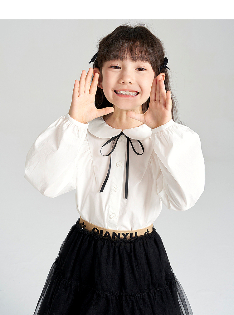 笛莎千与2025春季新款女童时尚长袖衬衫