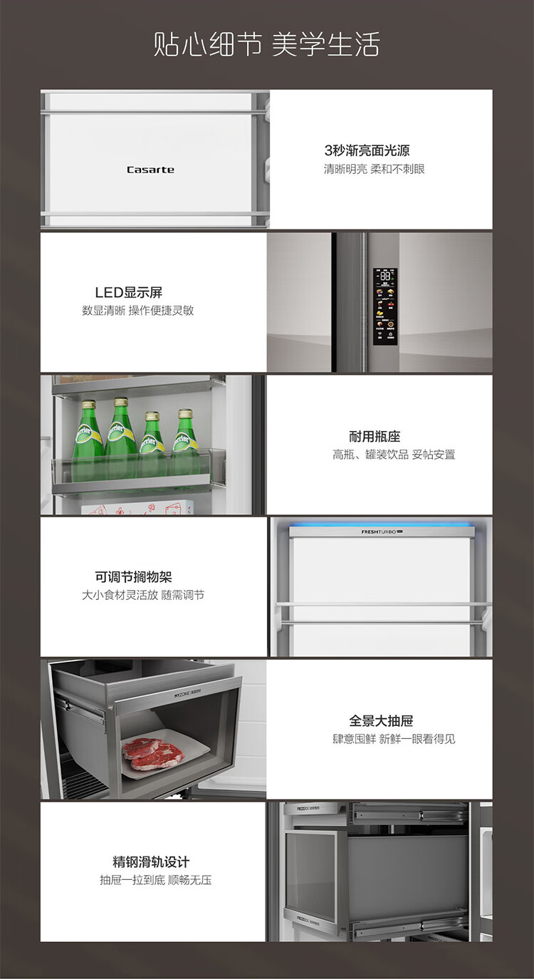 卡萨帝叠式对开门冰箱603升 零距离嵌入式 大容量冰箱 三门 多门冰箱 风冷无霜双系统 一级变频节能冰箱 帛拉蒂【影雕】+零嵌冰箱+双低氧窖藏