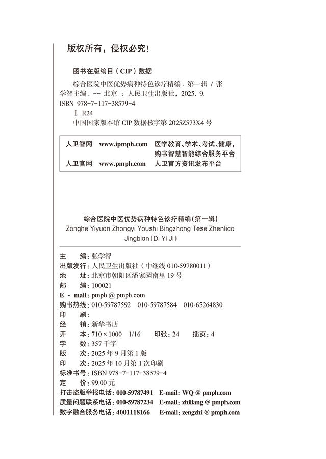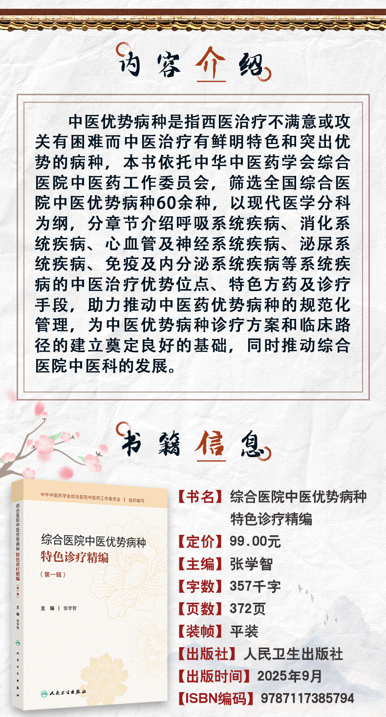 综合医院中医优势病种特色诊疗精编(第一辑)张学智 筛选全国综合医院中医优势病种60余种 以现代医学分科为纲 人民卫生出版社