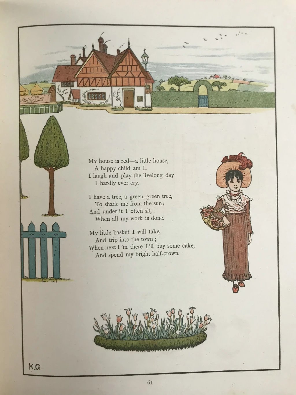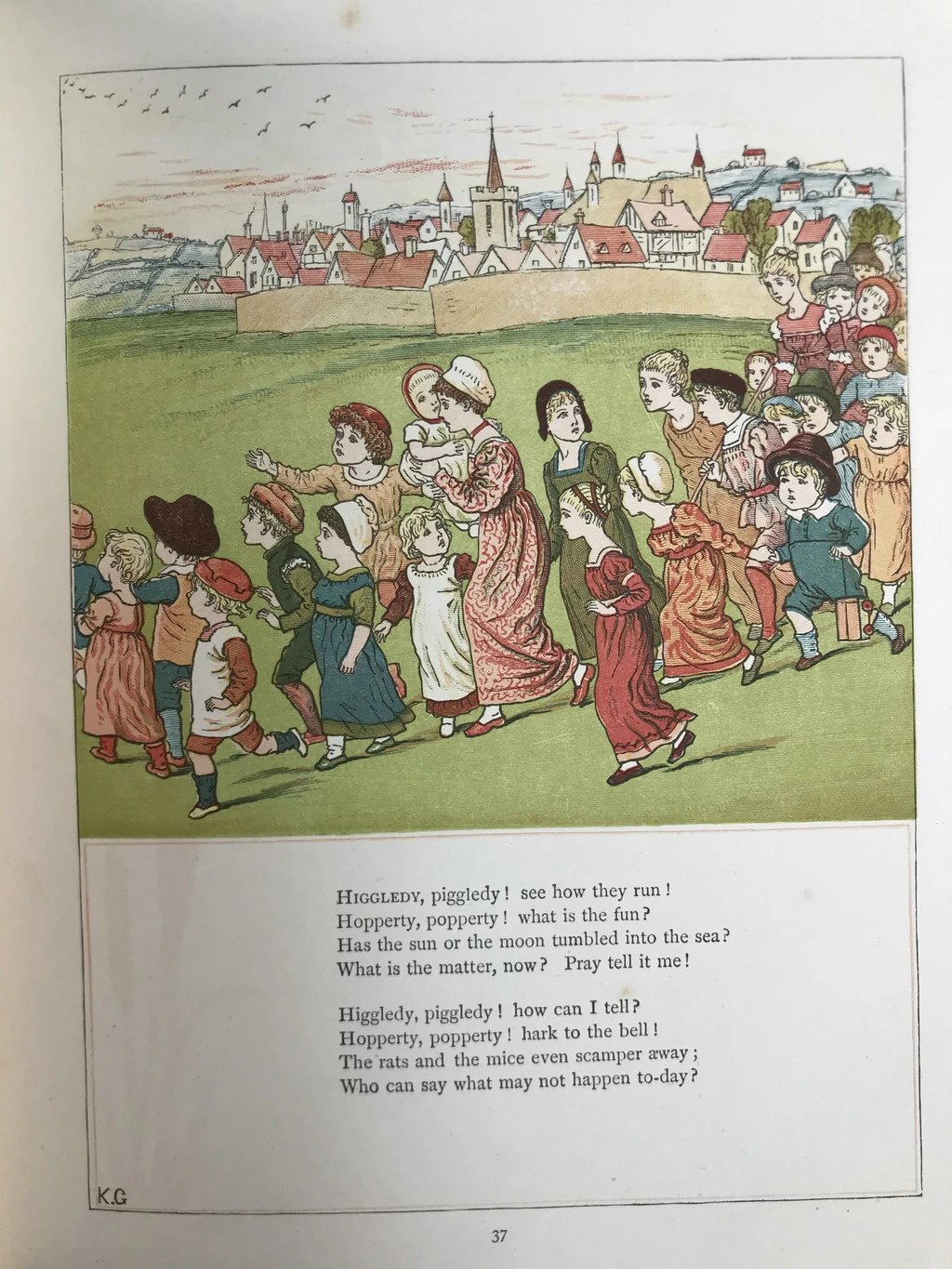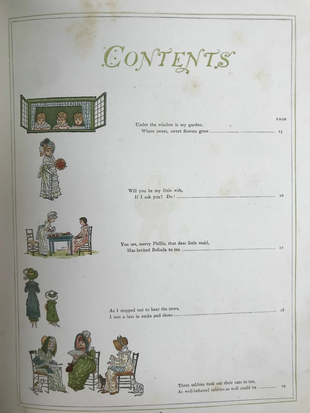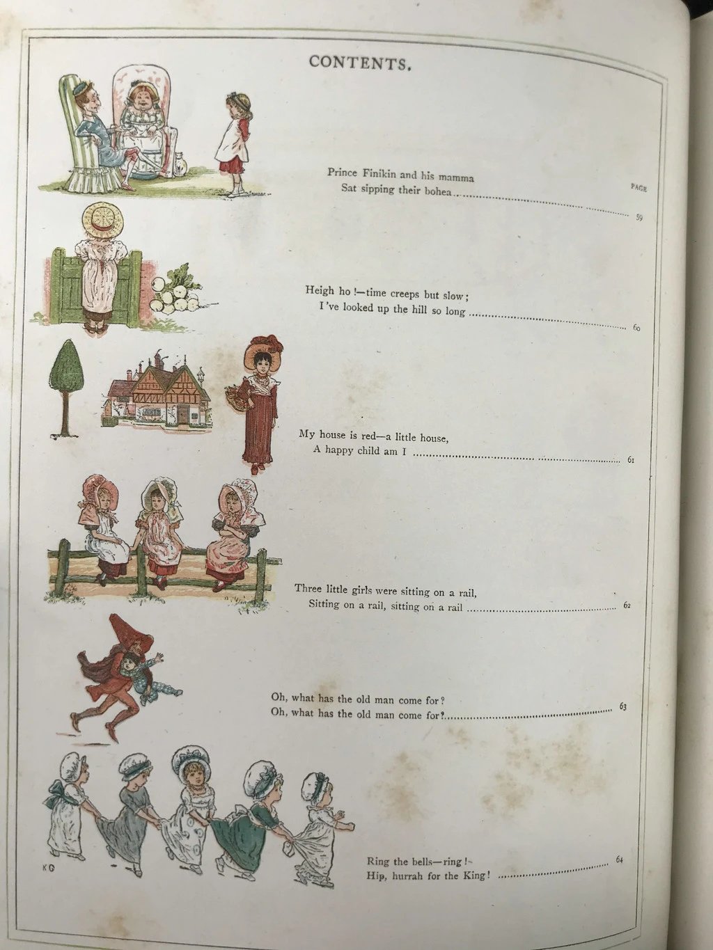 约19世纪后期 凯特·格林纳威《窗下:童画与童谣集》 数十幅精美彩色插图 精装18开