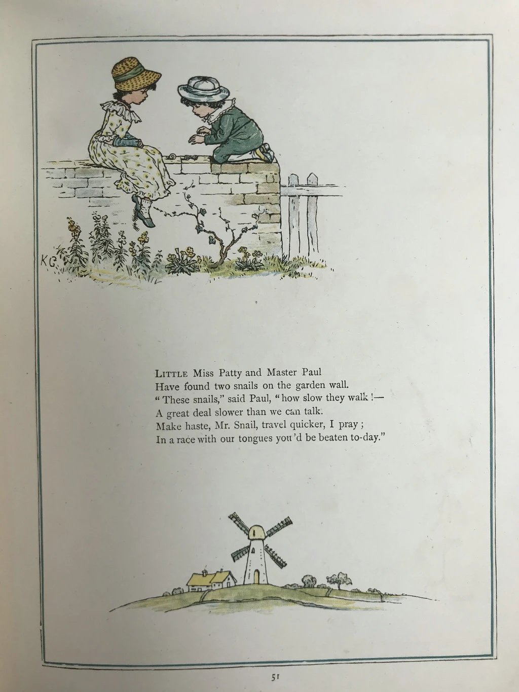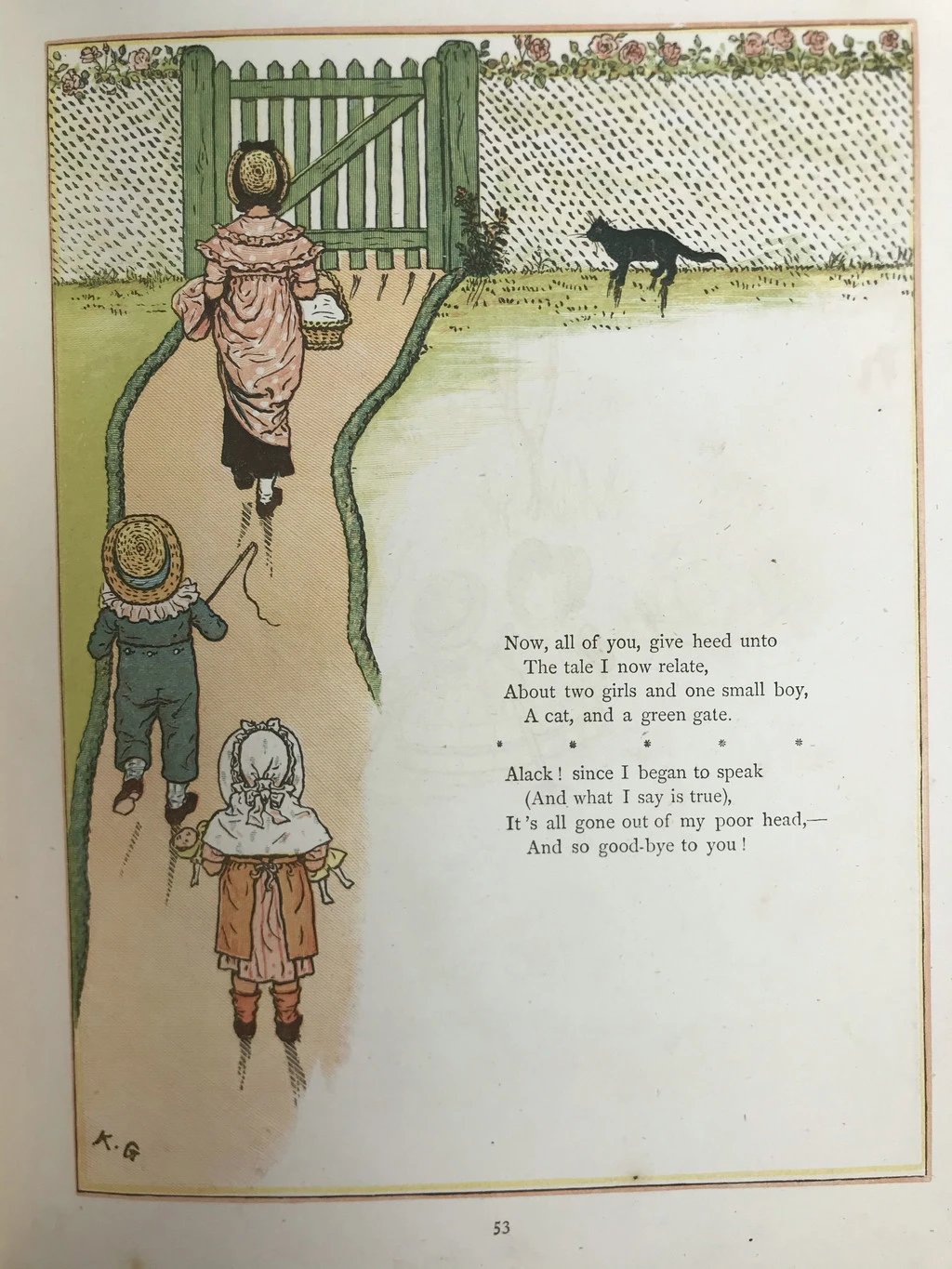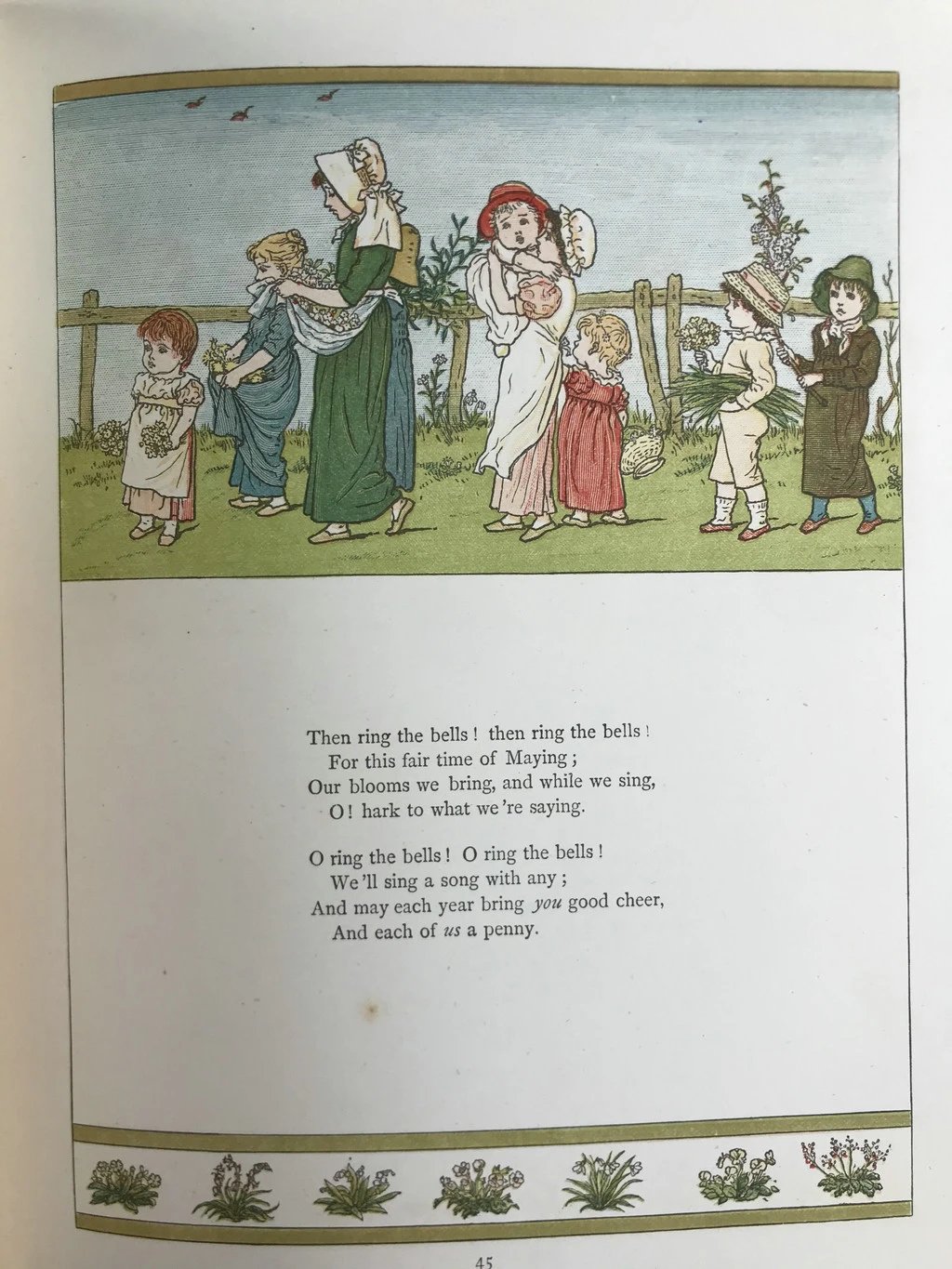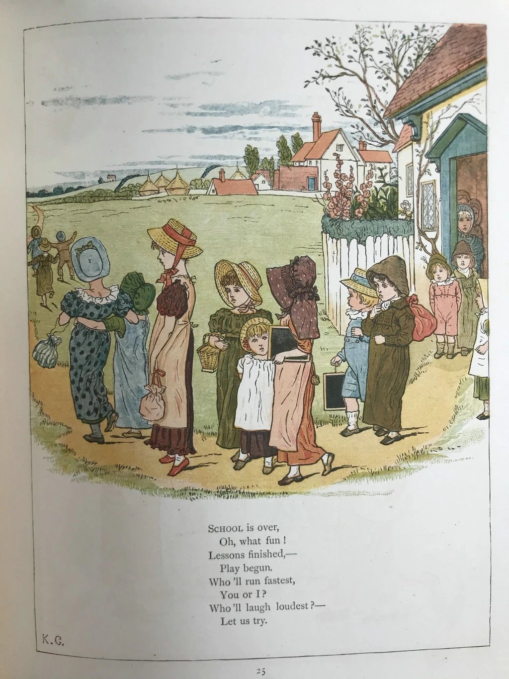 约19世纪后期 凯特·格林纳威《窗下:童画与童谣集》 数十幅精美彩色插图 精装18开