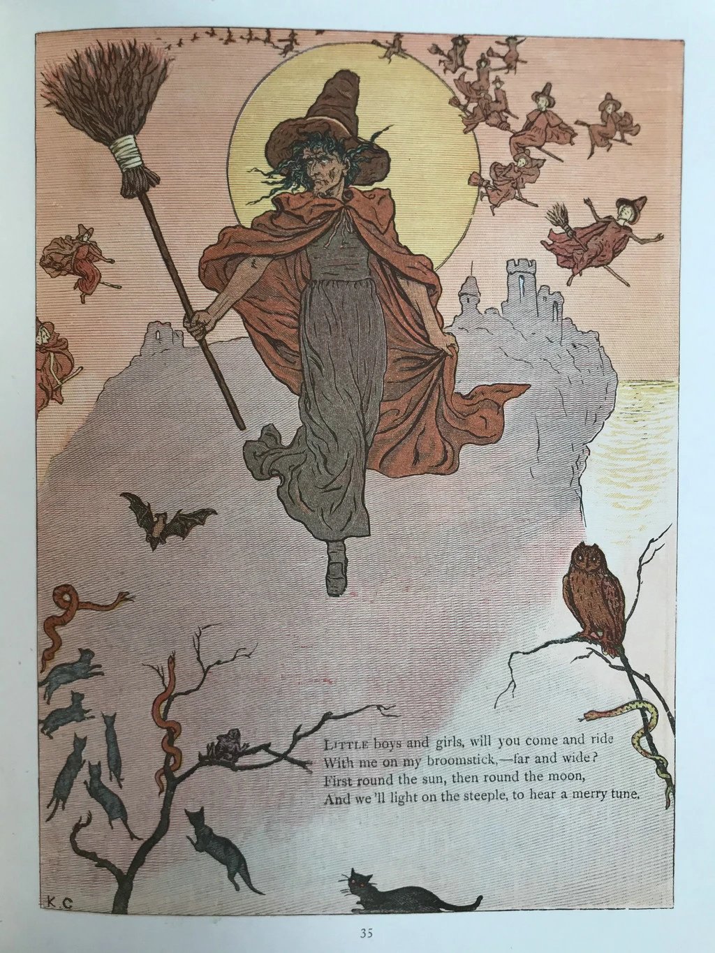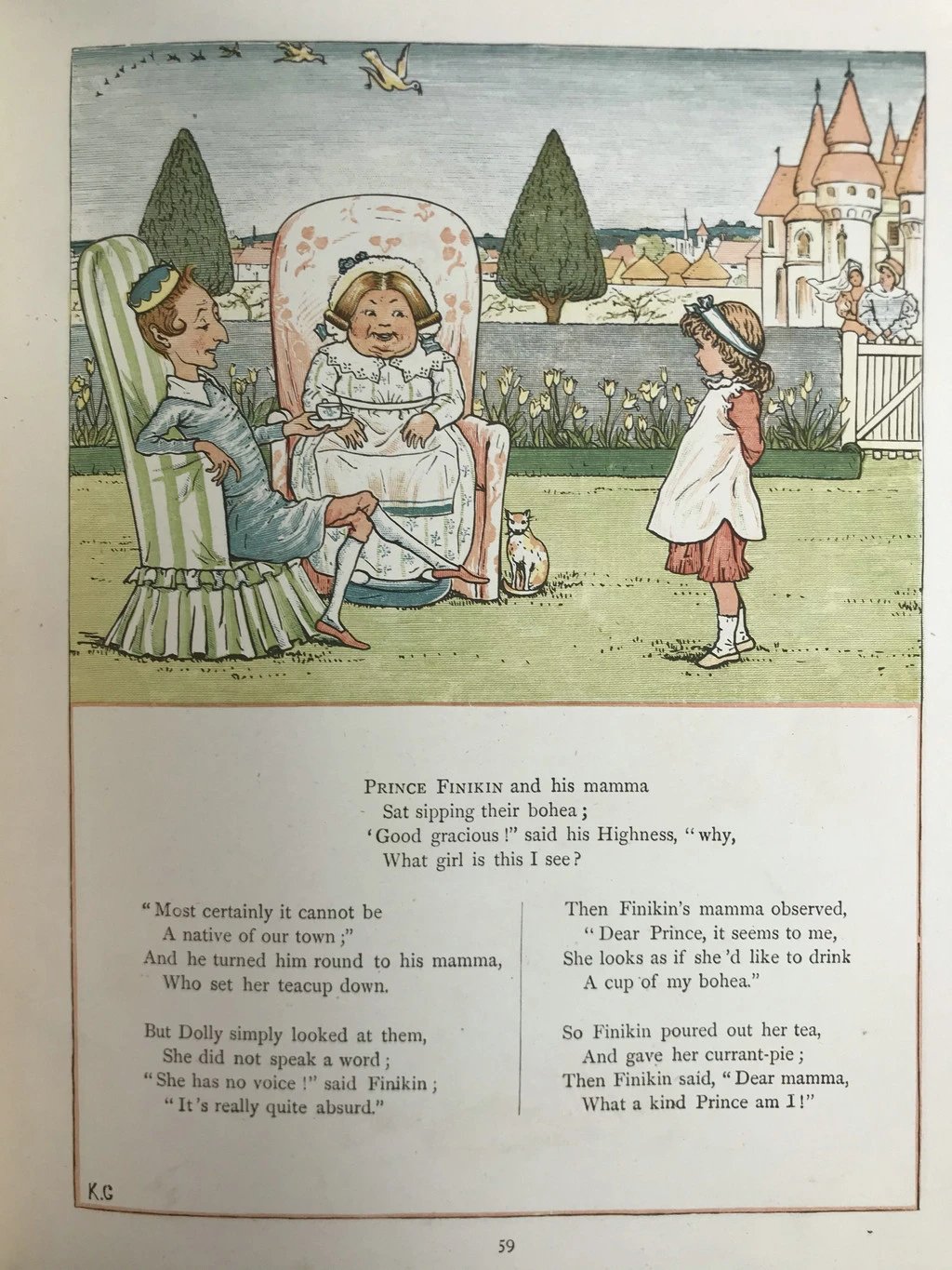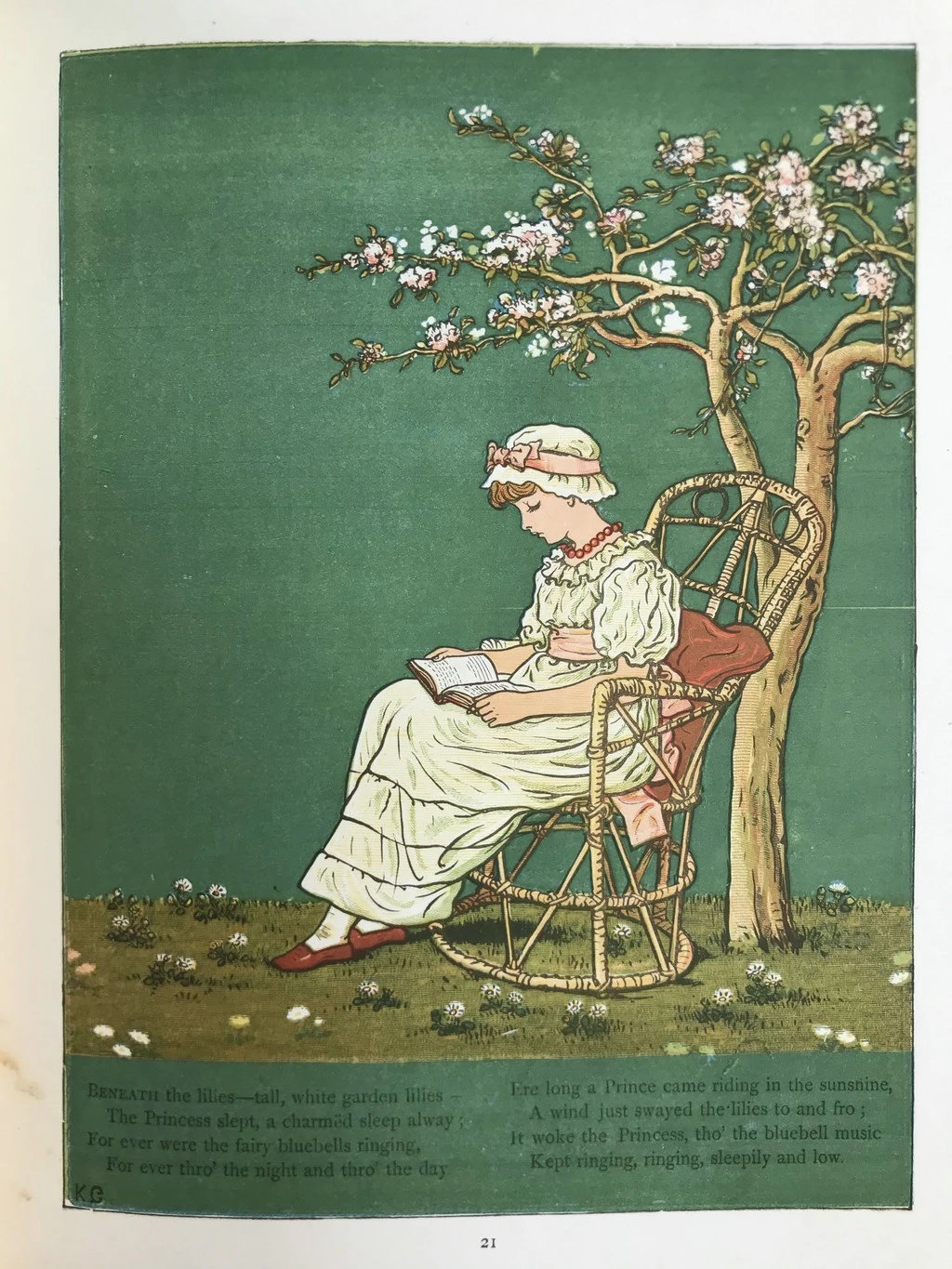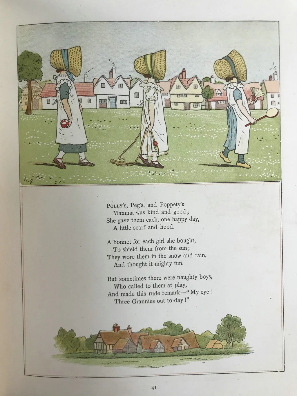 约19世纪后期 凯特·格林纳威《窗下:童画与童谣集》 数十幅精美彩色插图 精装18开