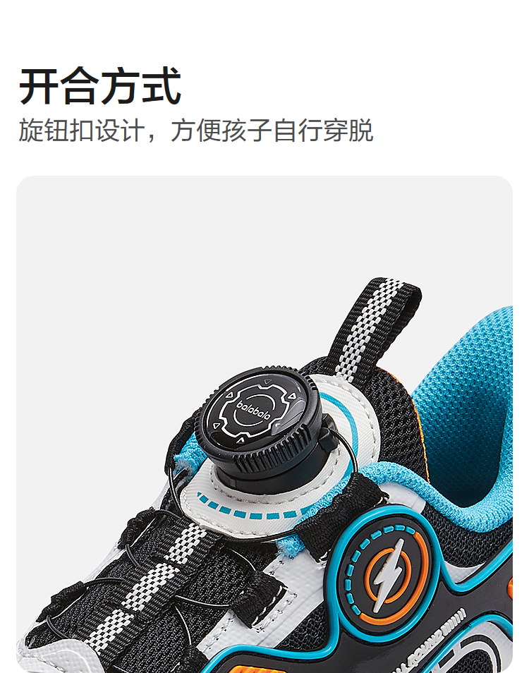 巴拉巴拉童鞋儿童运动鞋男童春秋透气网布鞋科技感旋钮扣潮流鞋子