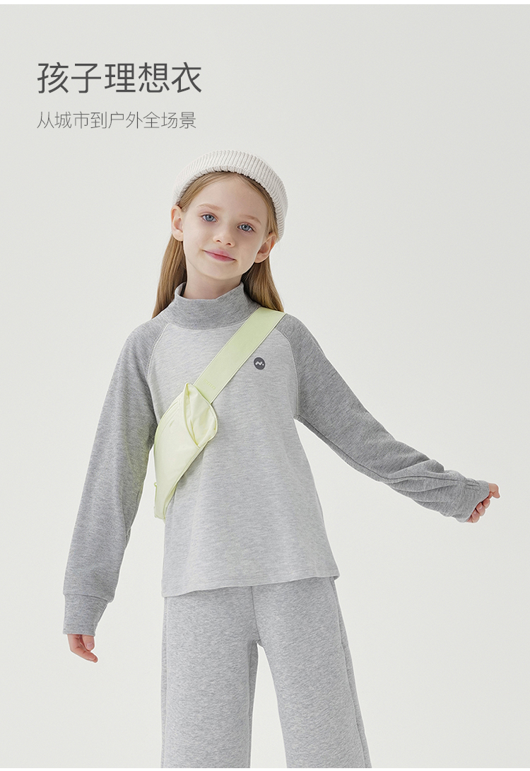 马克珍妮男女童半高领撞色插肩长袖打底衫儿童T恤秋冬新款241118