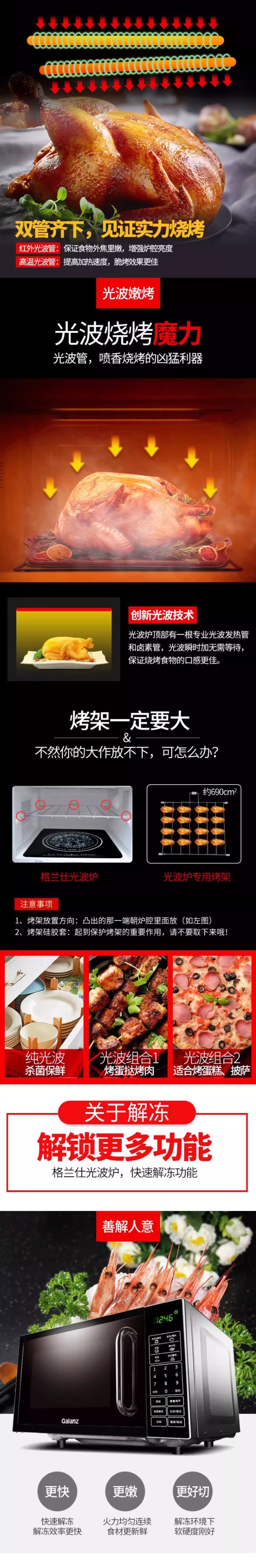 格兰仕(507438)(Galanz) 微波炉 G90F25MSXLVIII-A7(G0) 25L 语音播报 家用平板光波炉 微烤一体