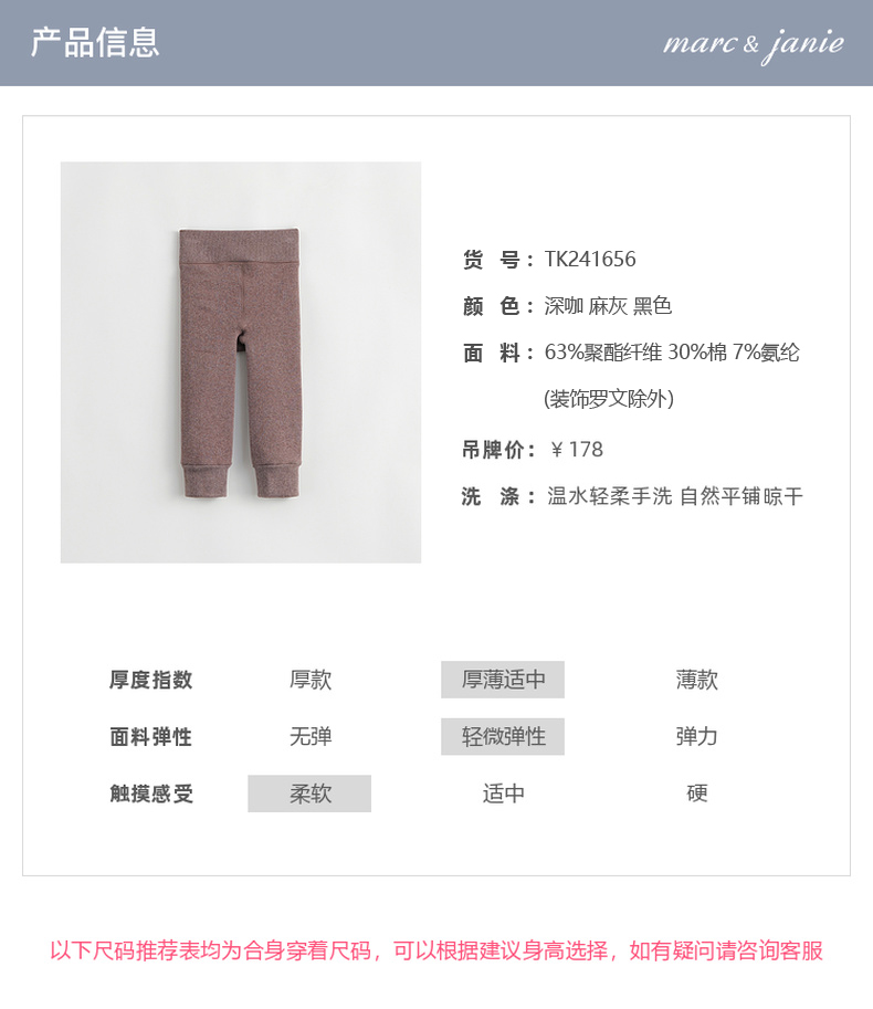 【百搭神裤】马克珍妮女童弹力加绒保暖打底裤儿童裤子冬装241656