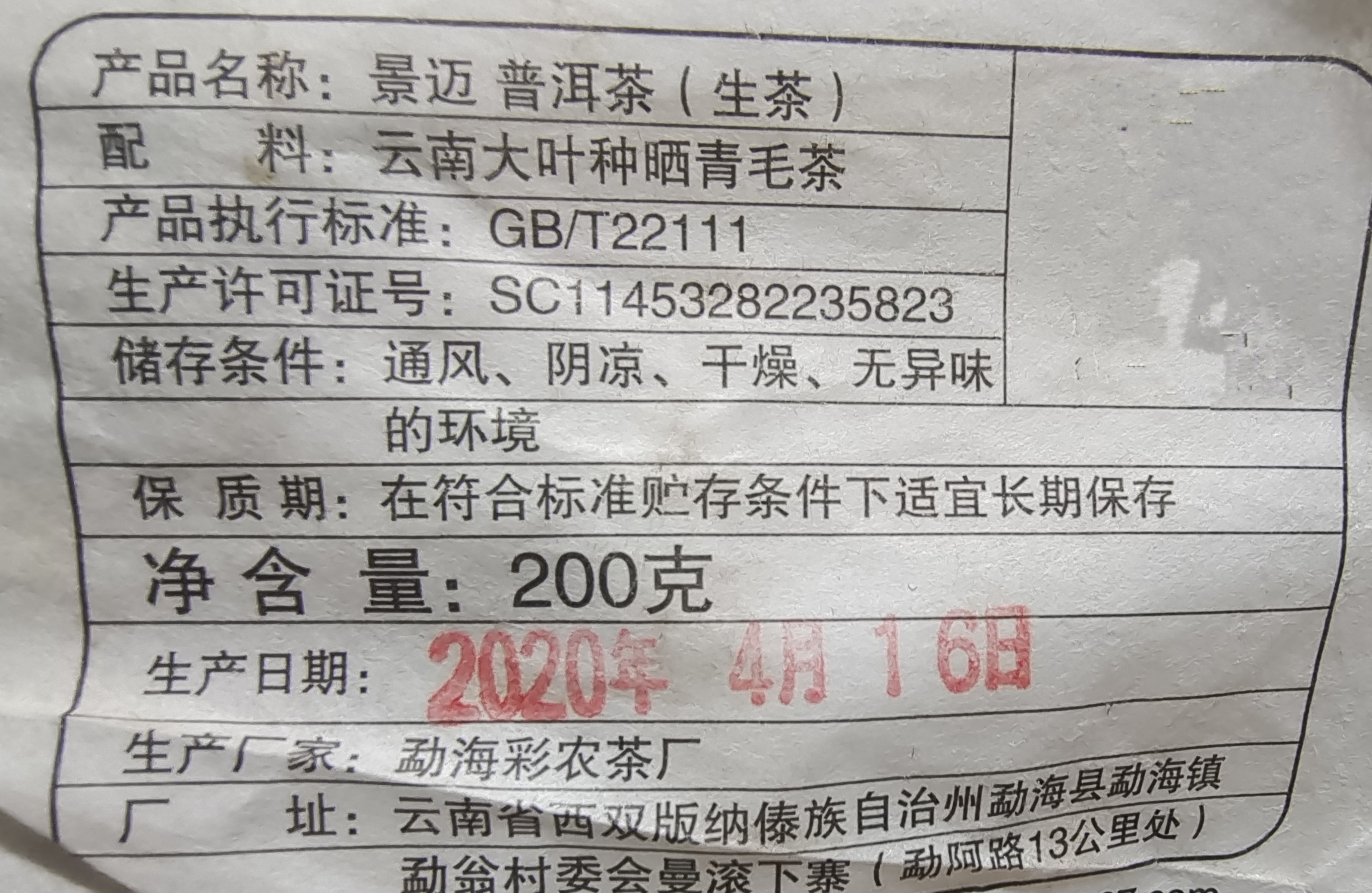 原料地域:景迈