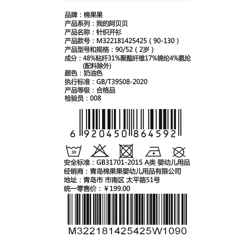 | 胸围 | 31 | 33 | 35.5 | 37.5 | 39.5 |