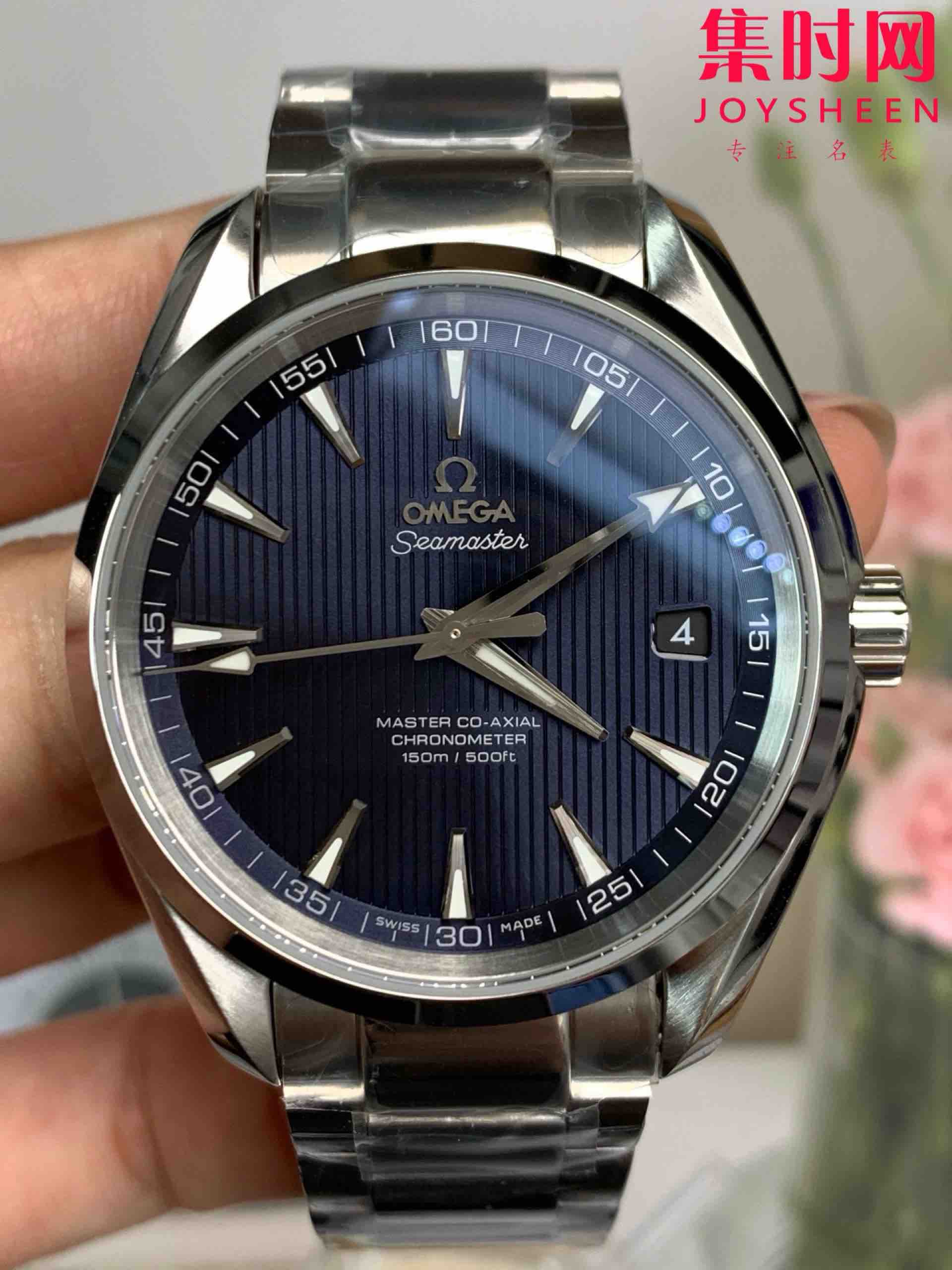 欧米茄VS海马150米系列 蓝色盘 3点位日历 Aqua Terra 150米腕表 8500一体机 男士腕表 表径41.5mm 黄金尺寸,适配多数腕围,日常通勤与正式场合皆能hold住!