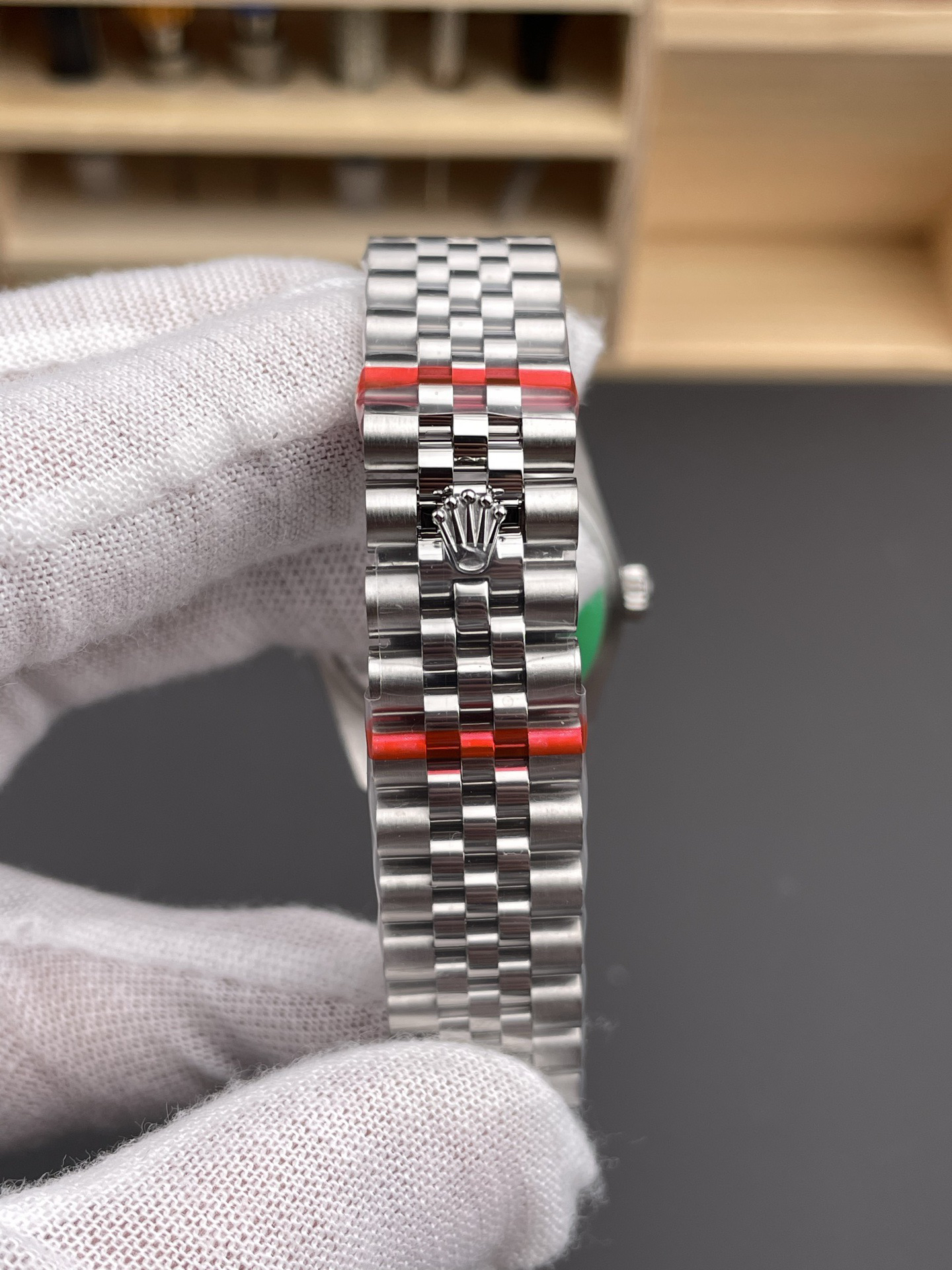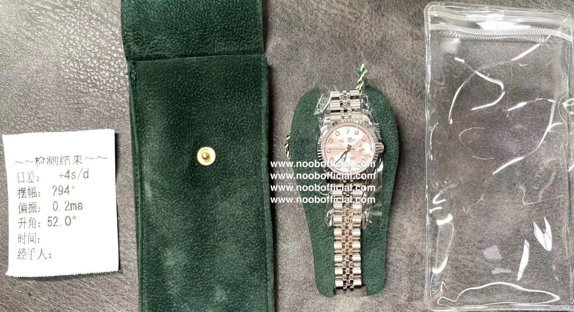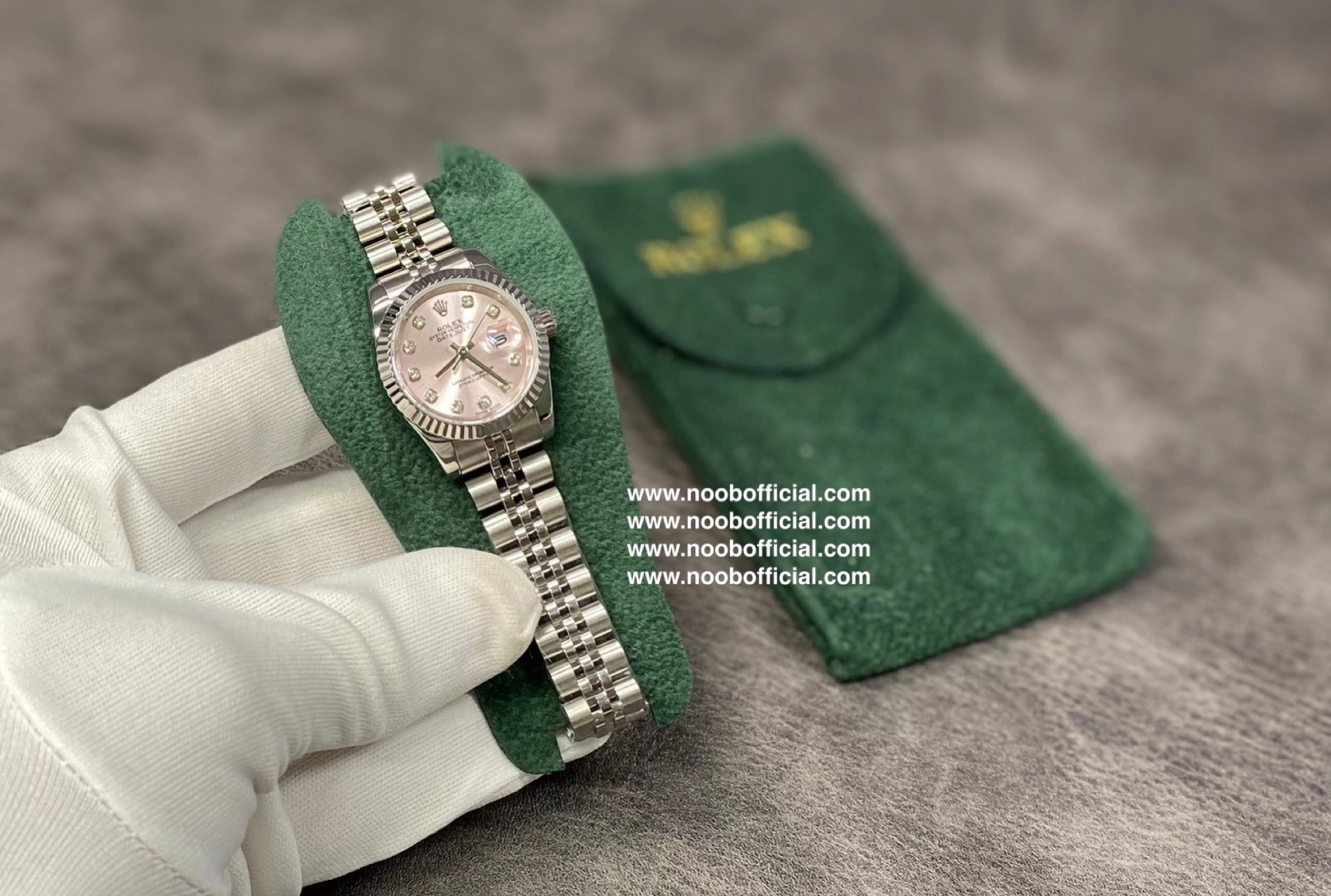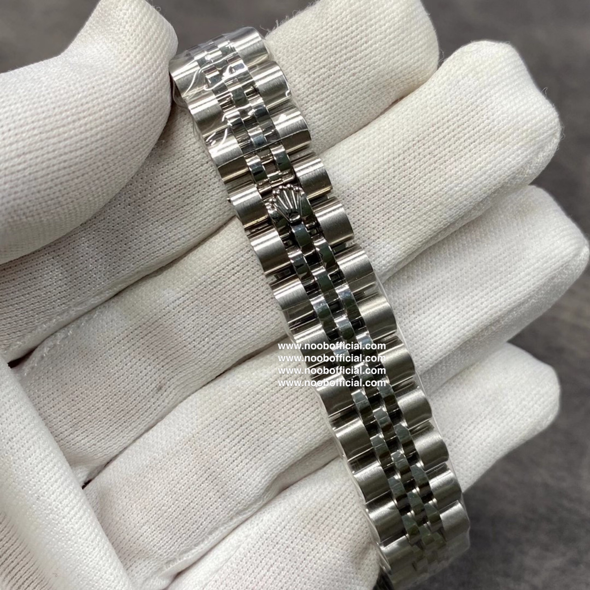 Noob【高品质】龙虾粉表盘,劳力士女款原版开模:劳力士女装日志型28和31毫米新一代五件拼装头粒,隐蔽式弹簧皇冠带扣、开启劳力士皇冠标志轻松打开表带.表壳与表带之间达到无缝连接视觉效果,完美无破绽❕