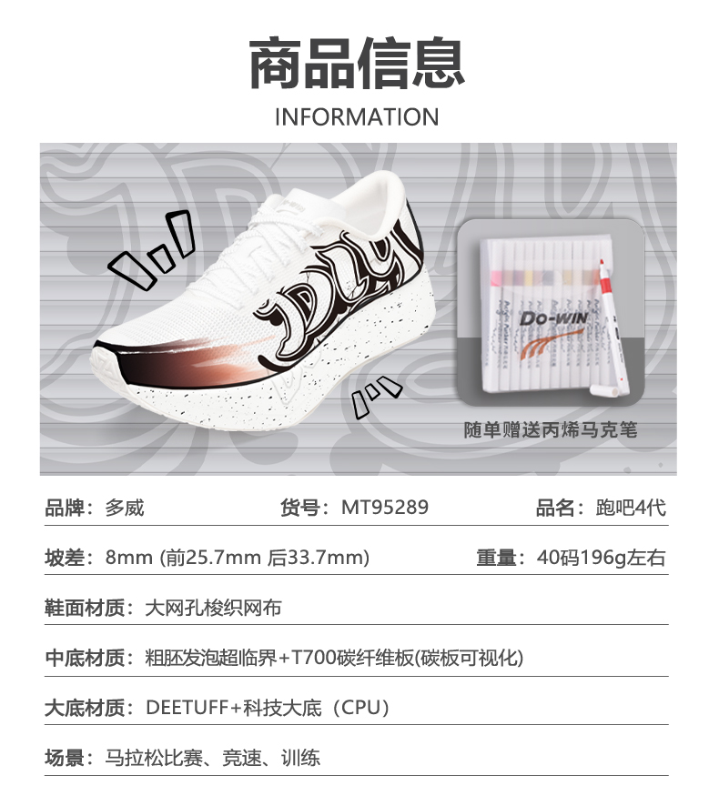 多威跑吧4代涂鸦版专业马拉松跑鞋碳板竞速跑步鞋