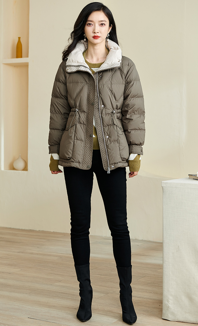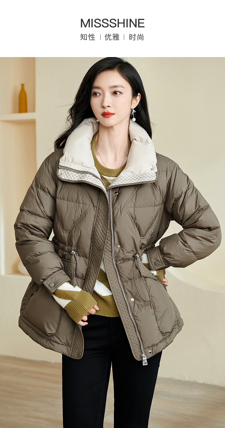 米思阳2025冬季新款时尚百搭抽绳收腰短款羽绒服厚保暖外套女2314