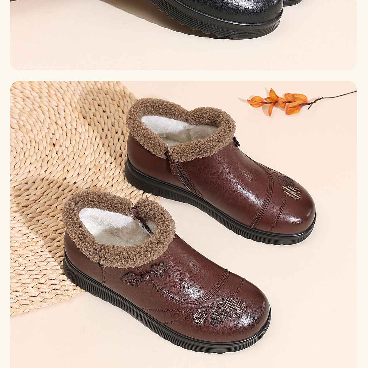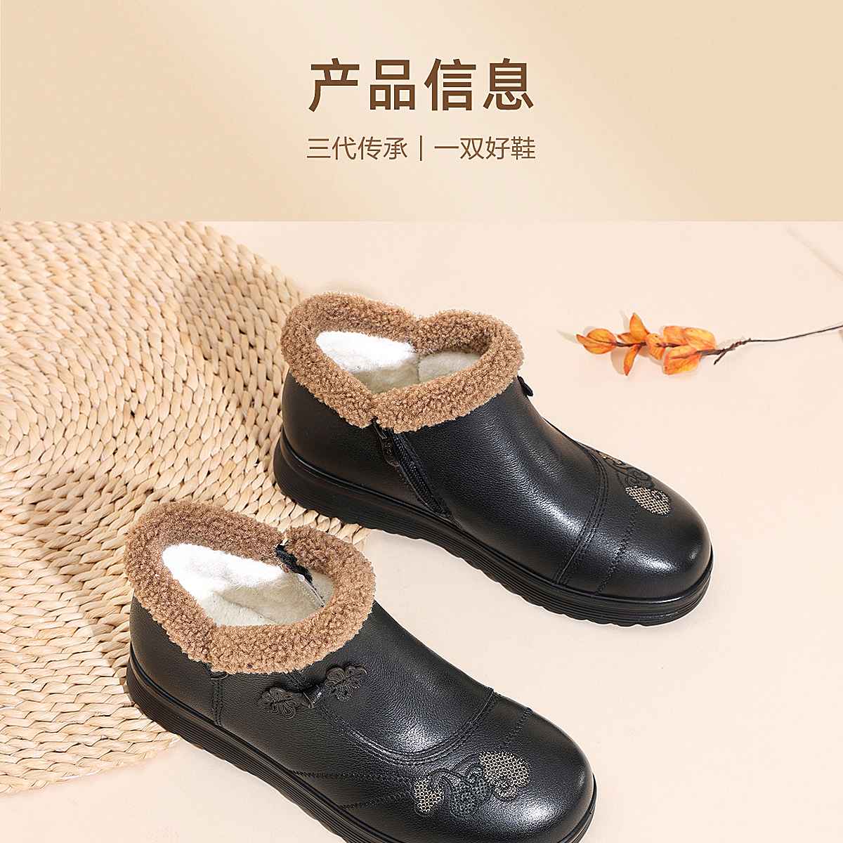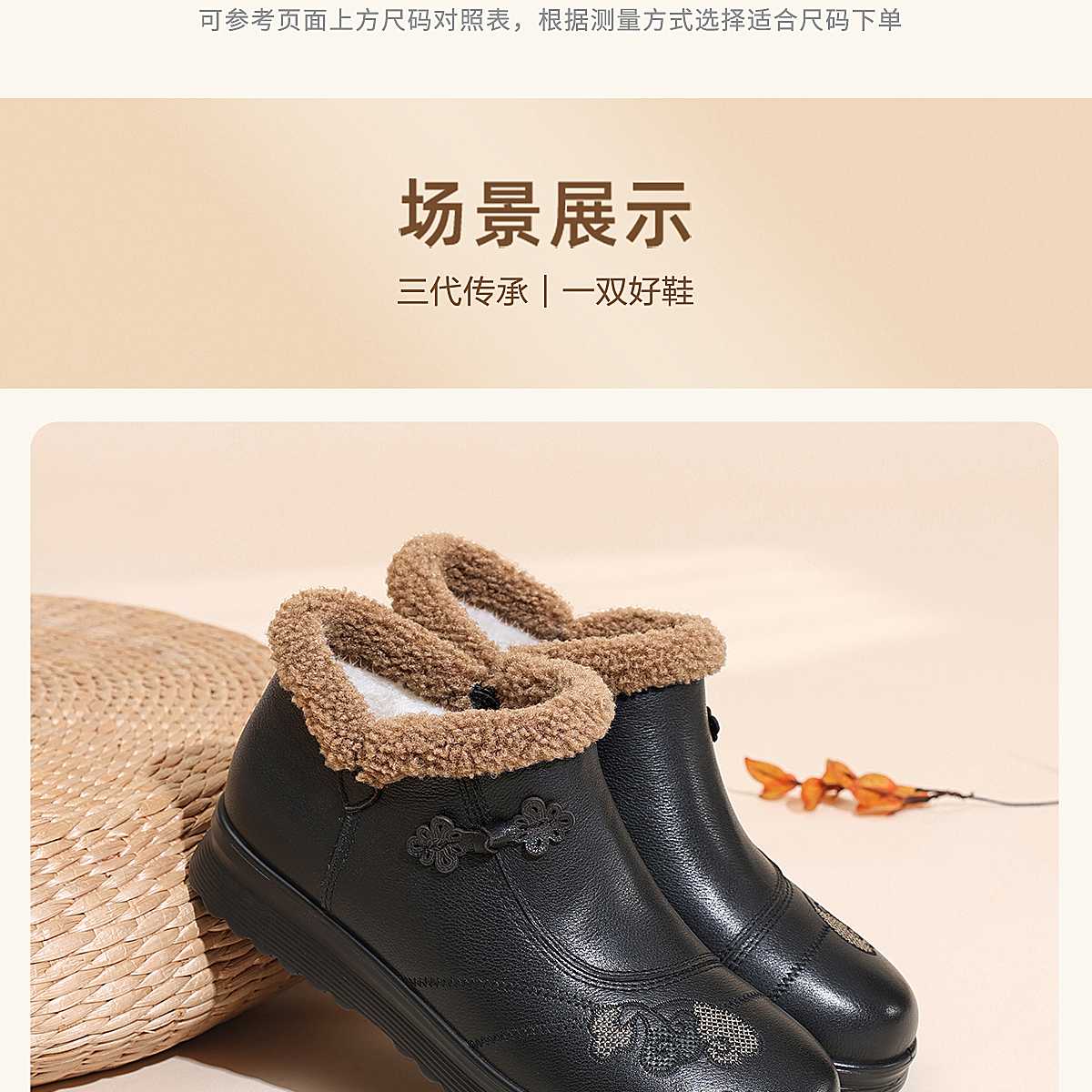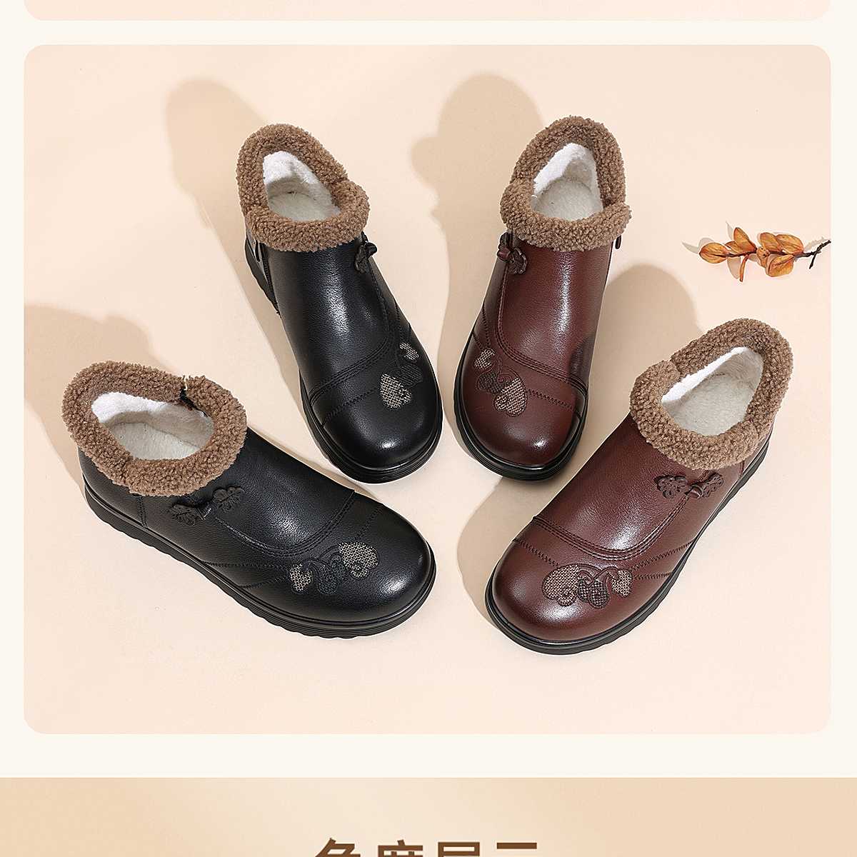 信诺妈妈棉鞋女中老年羊毛保暖皮鞋平底舒适雪地靴子2025冬季新款5M659-16ZY