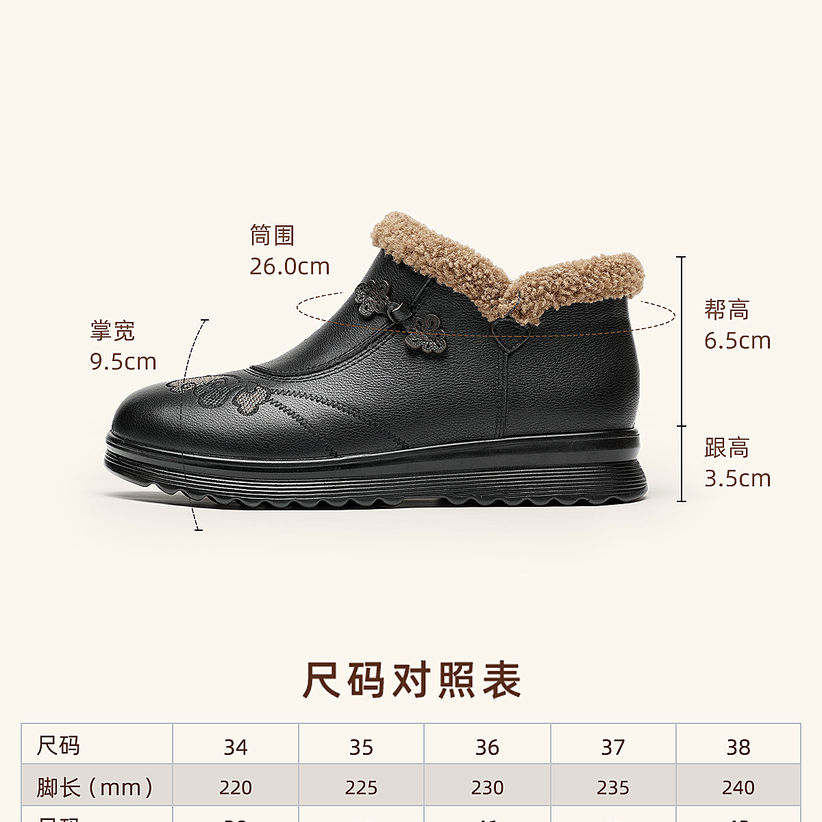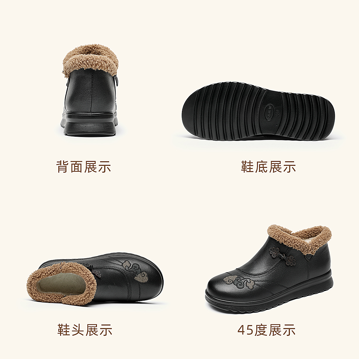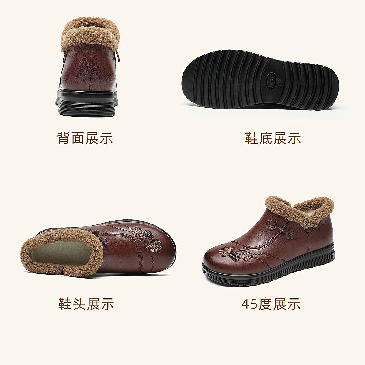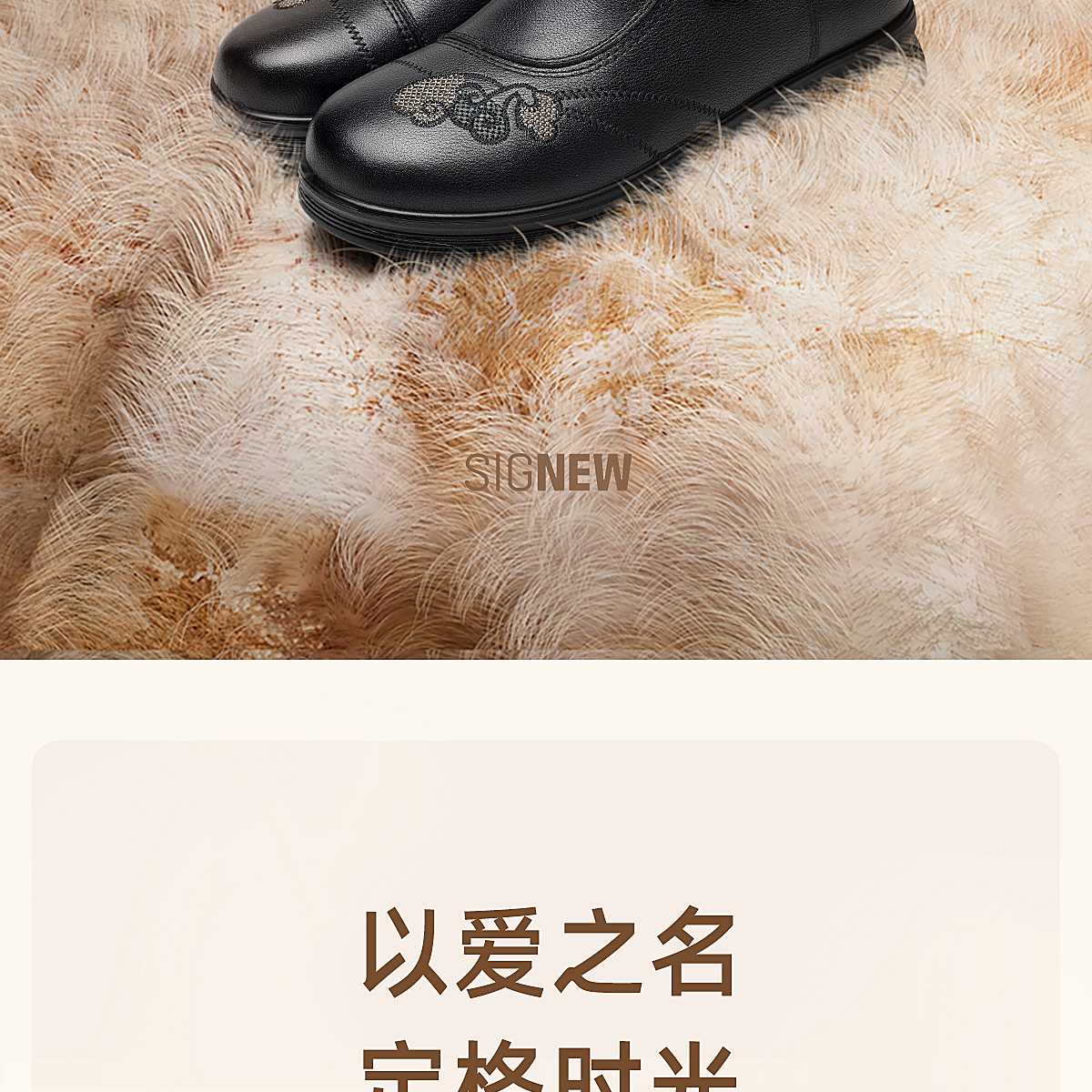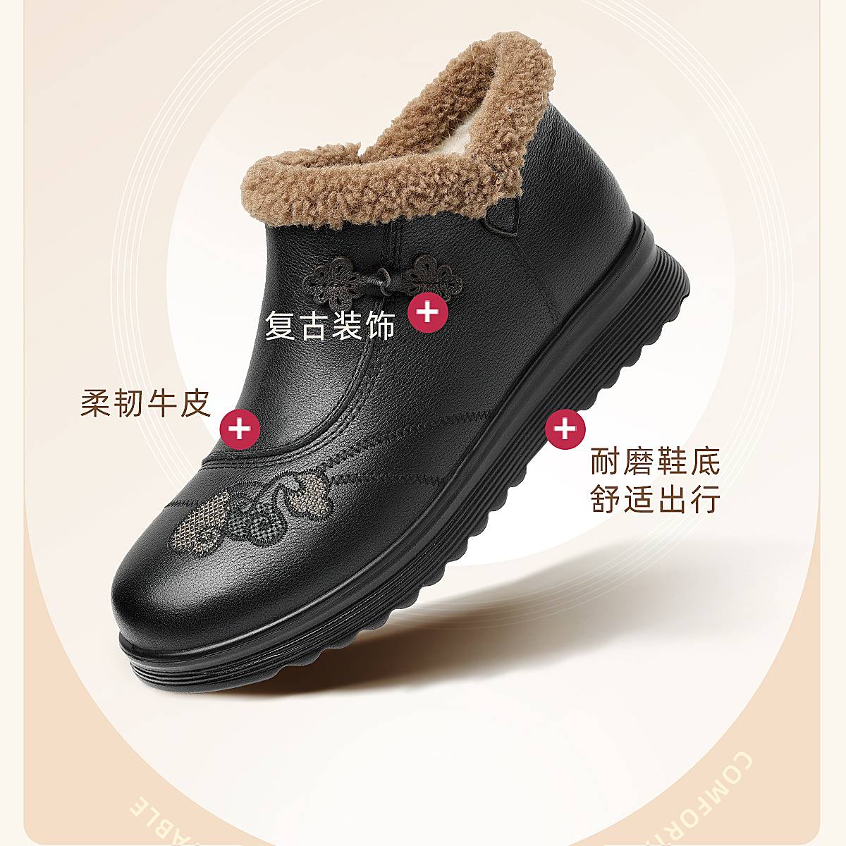 信诺妈妈棉鞋女中老年羊毛保暖皮鞋平底舒适雪地靴子2025冬季新款5M659-16ZY