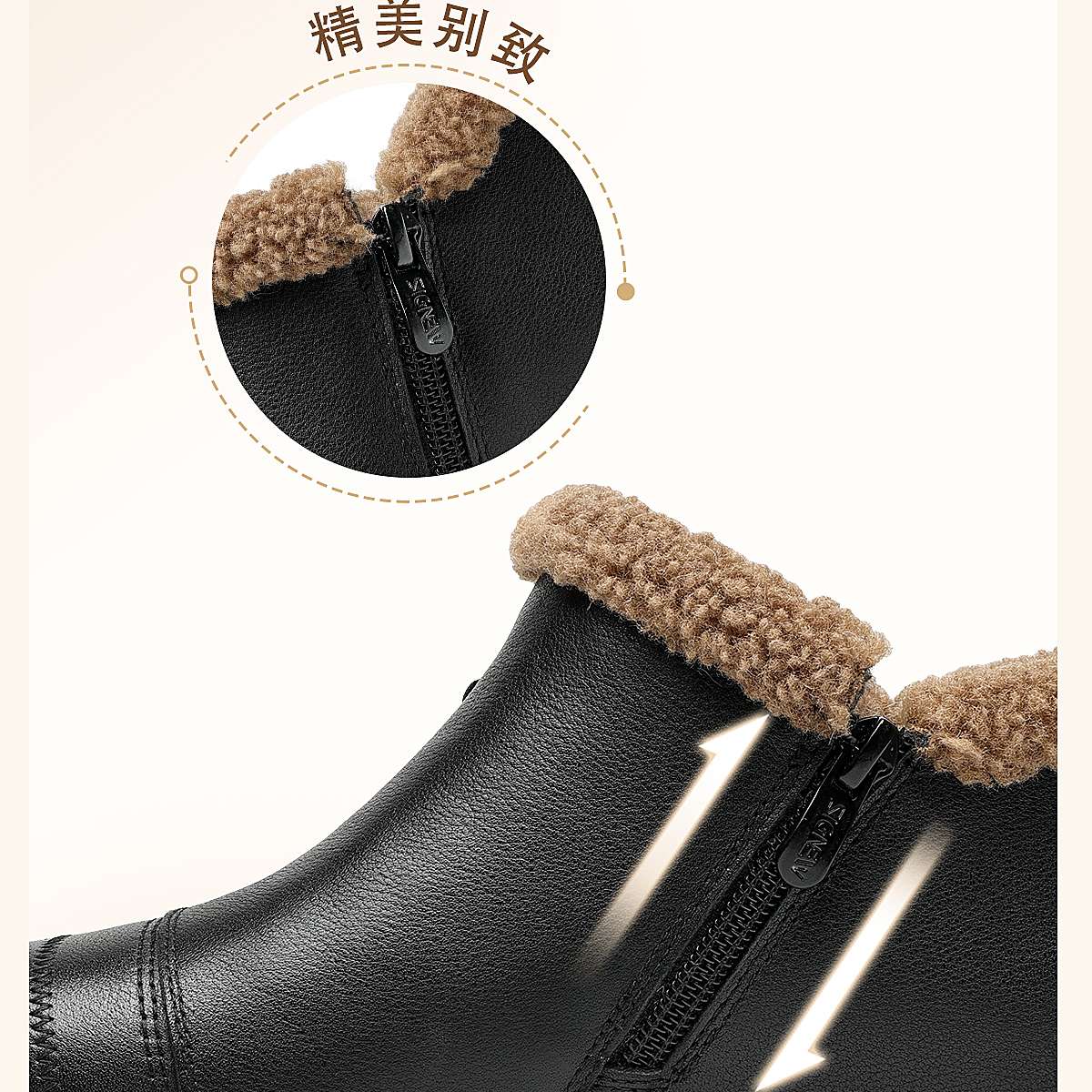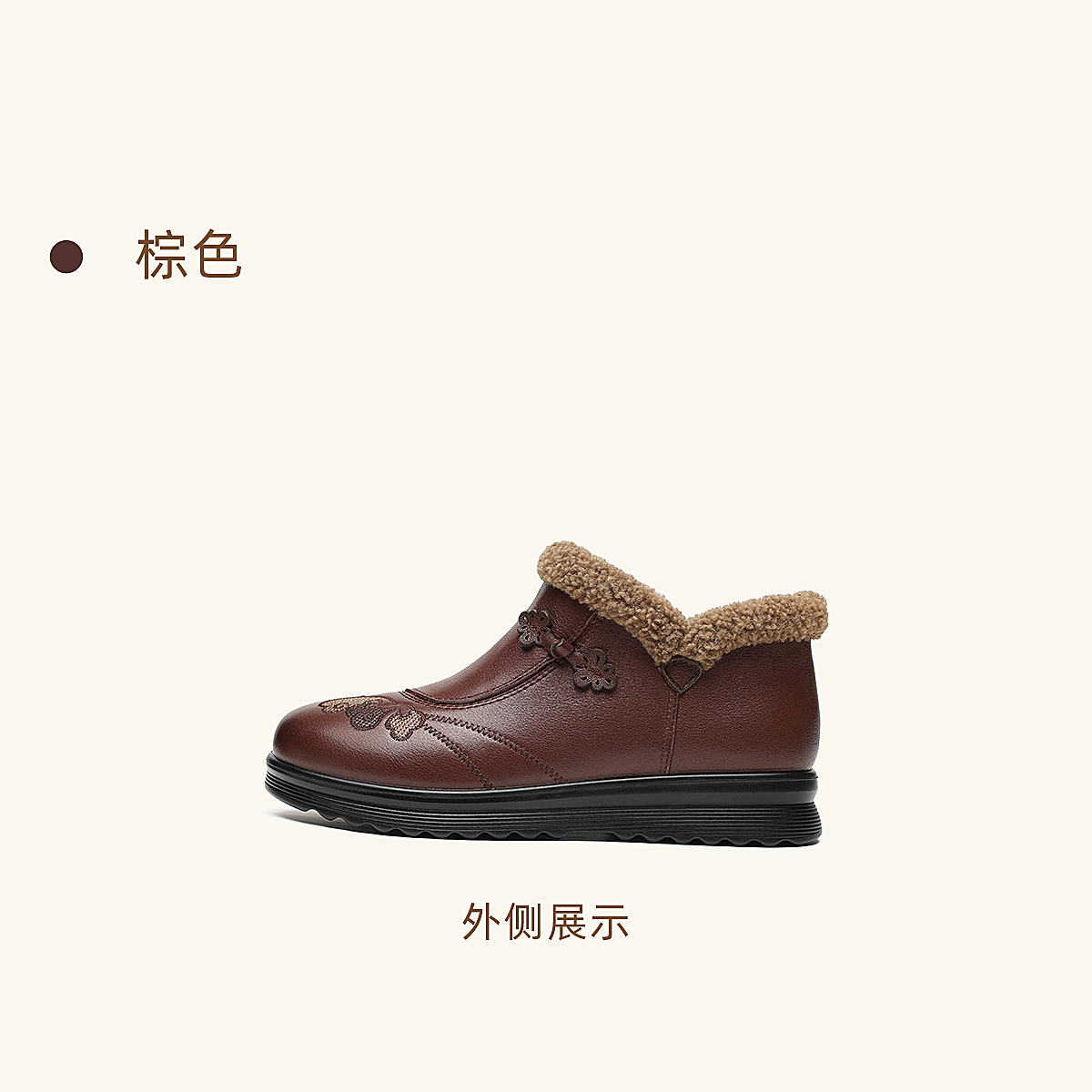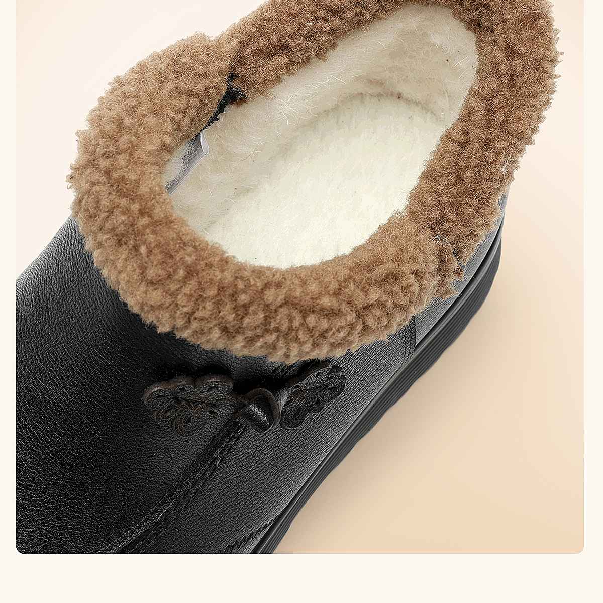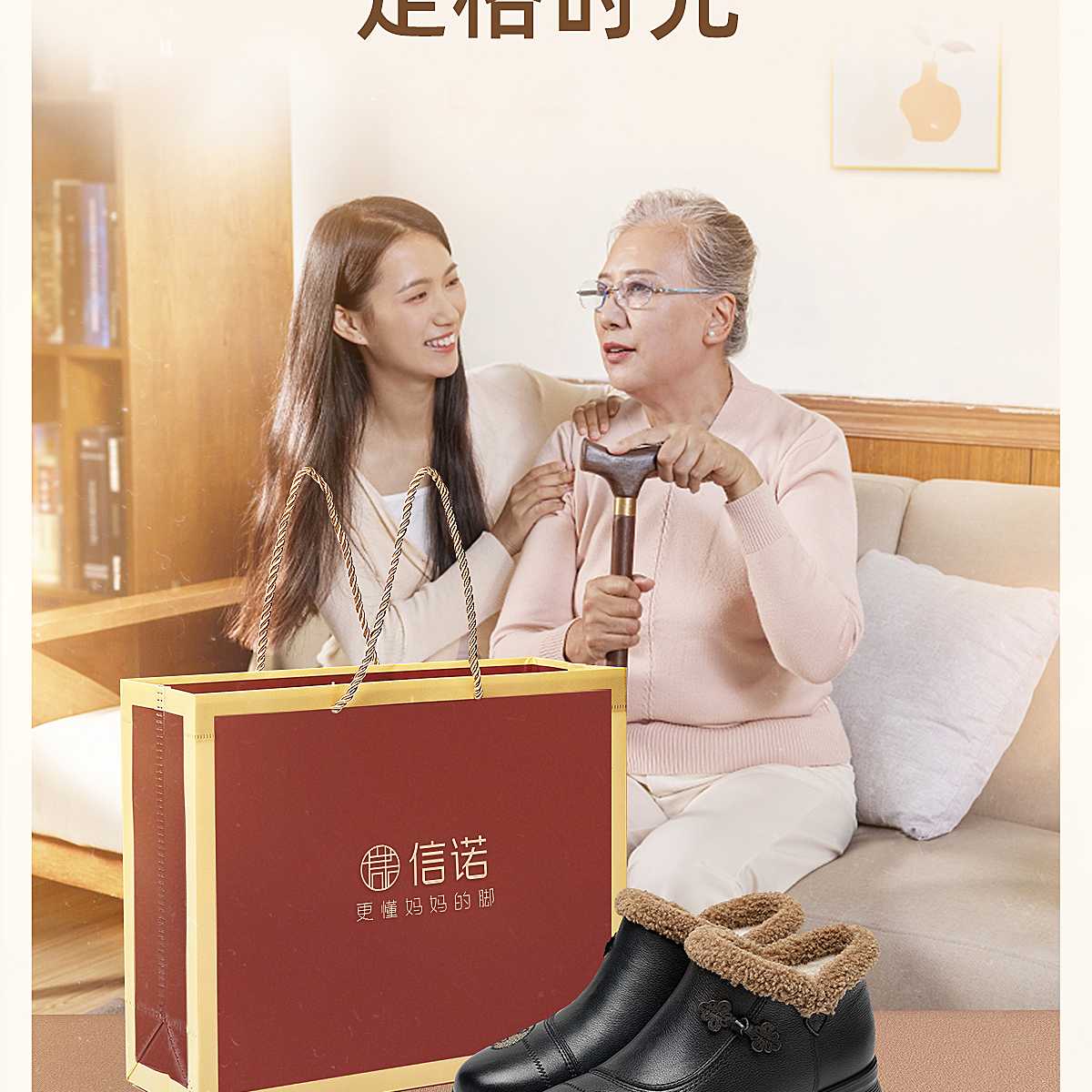 信诺妈妈棉鞋女中老年羊毛保暖皮鞋平底舒适雪地靴子2025冬季新款5M659-16ZY