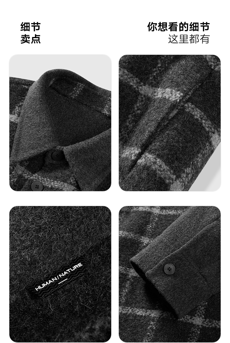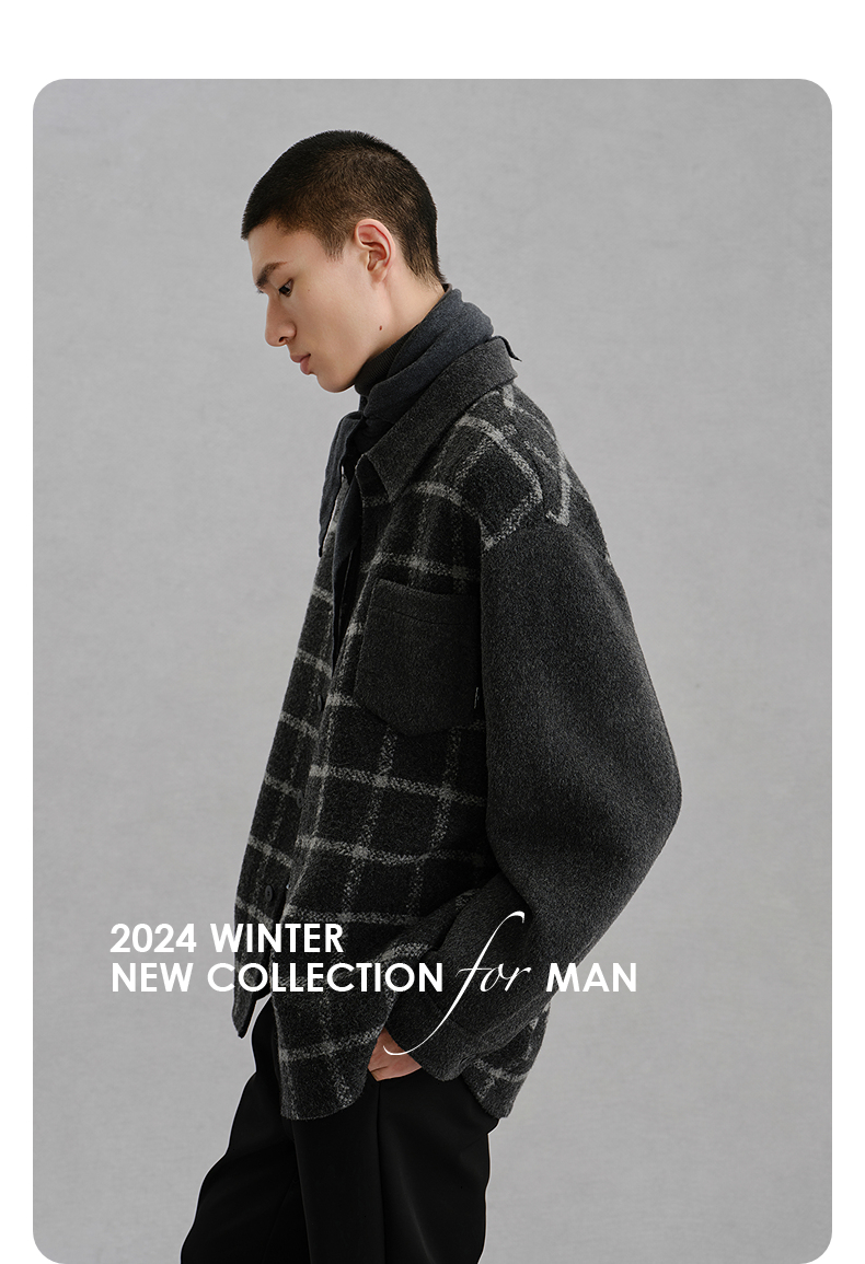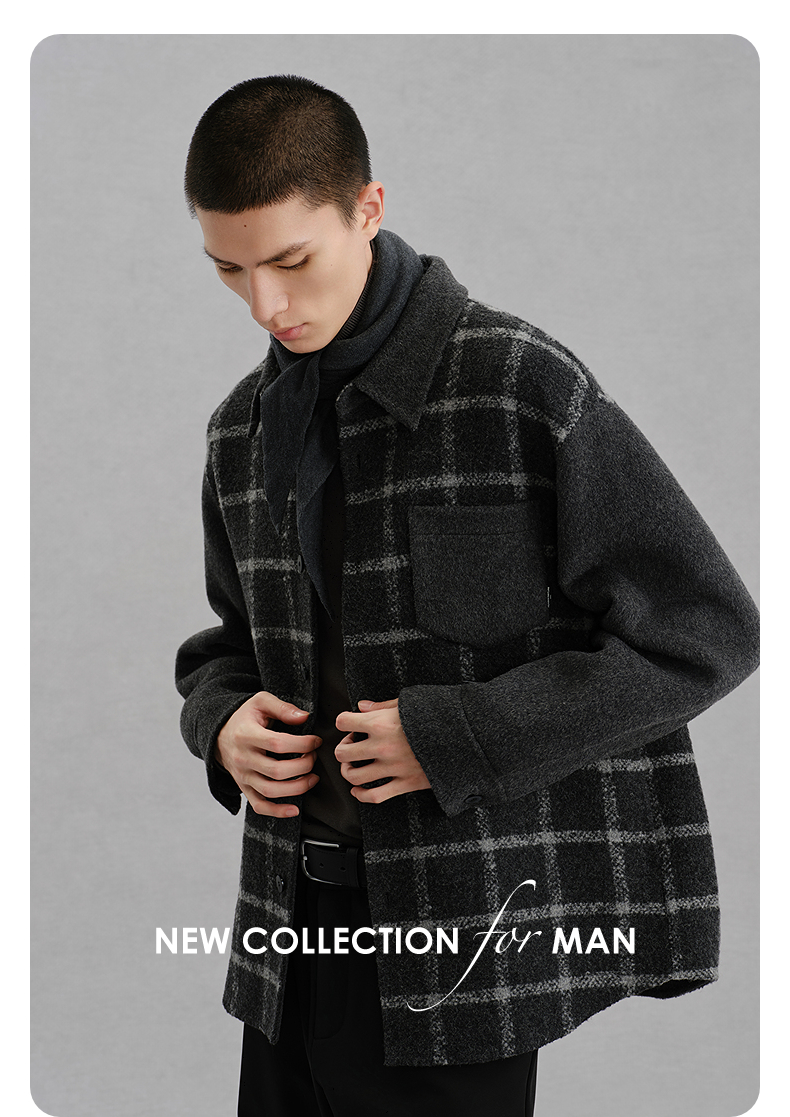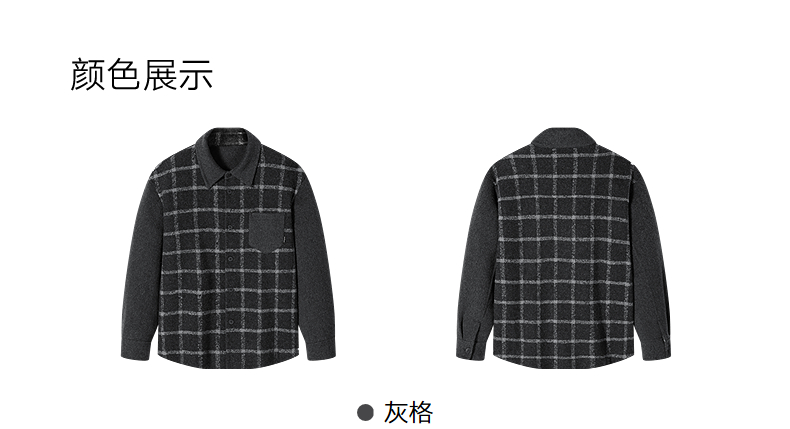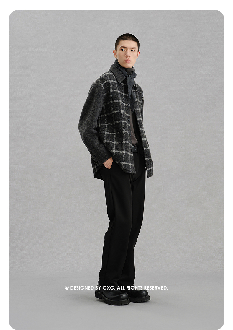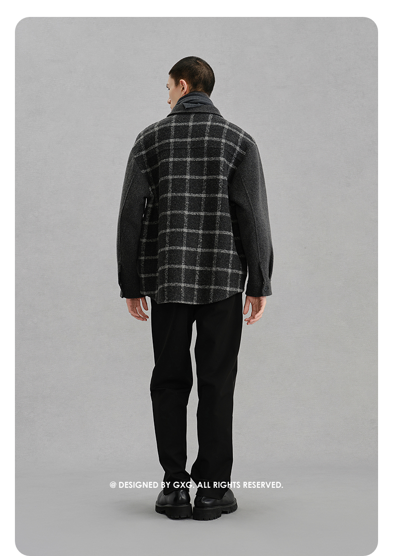 GXG男装 灰格拼接设计通勤短款大衣24冬热卖G24X064017