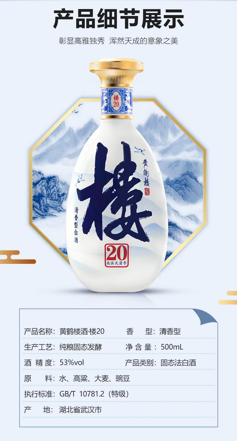 武汉 黄鹤楼53度南派大清香白酒楼20 500ML/瓶