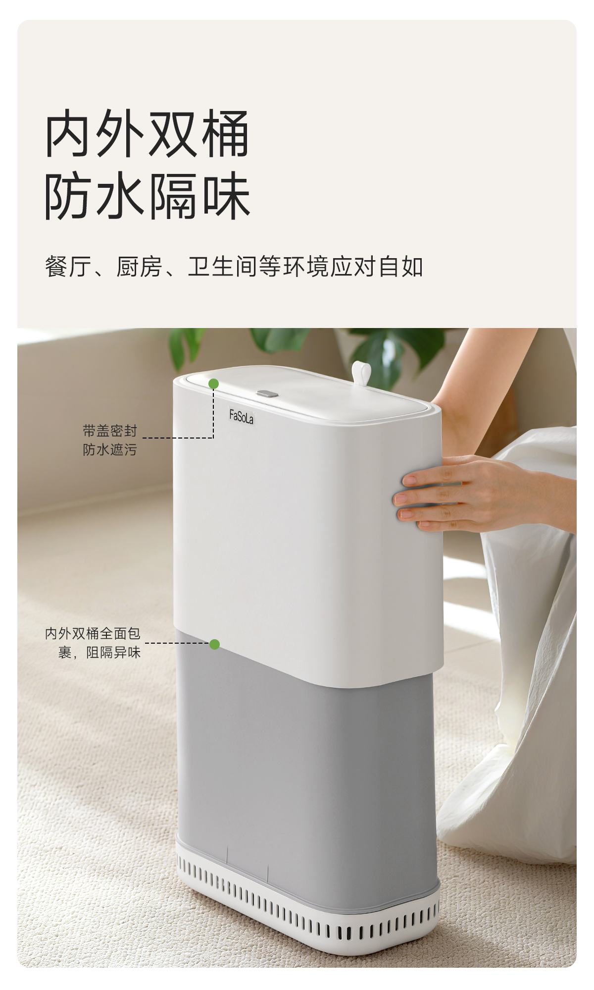 FaSoLa垃圾桶家用厕所带盖厨房客厅专用桶长方形大容量