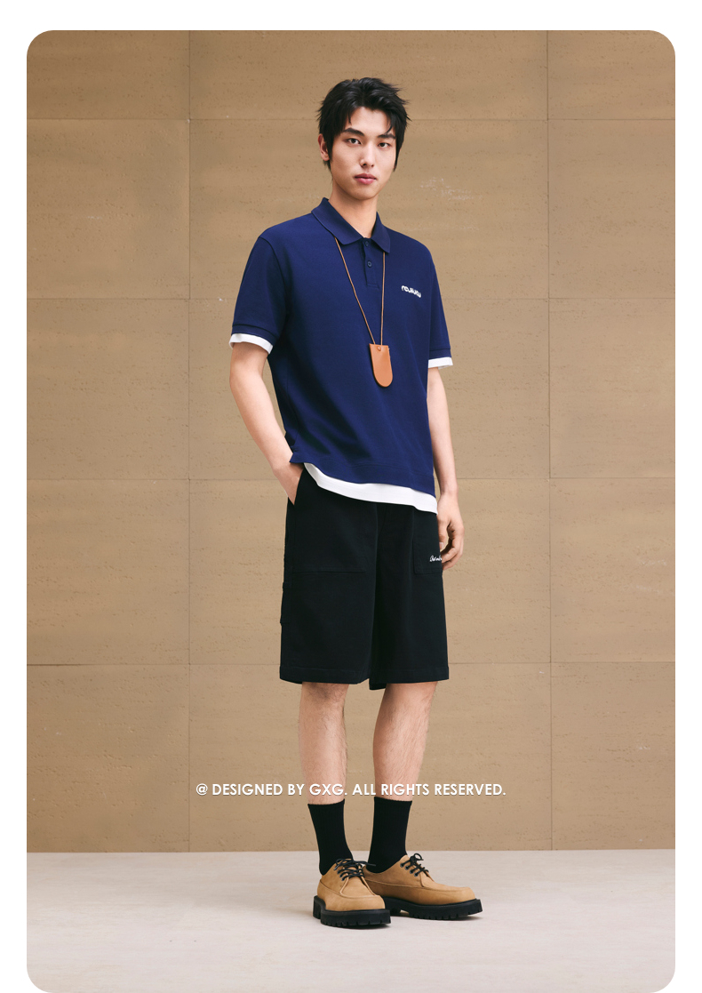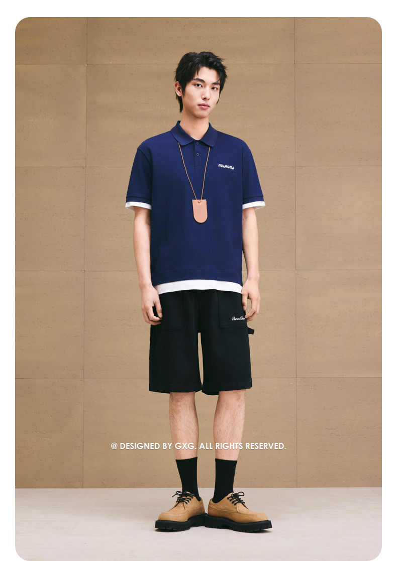 GXG男装 大口袋贴布牛仔短裤绣花工装短裤通勤短裤 2025夏季热卖