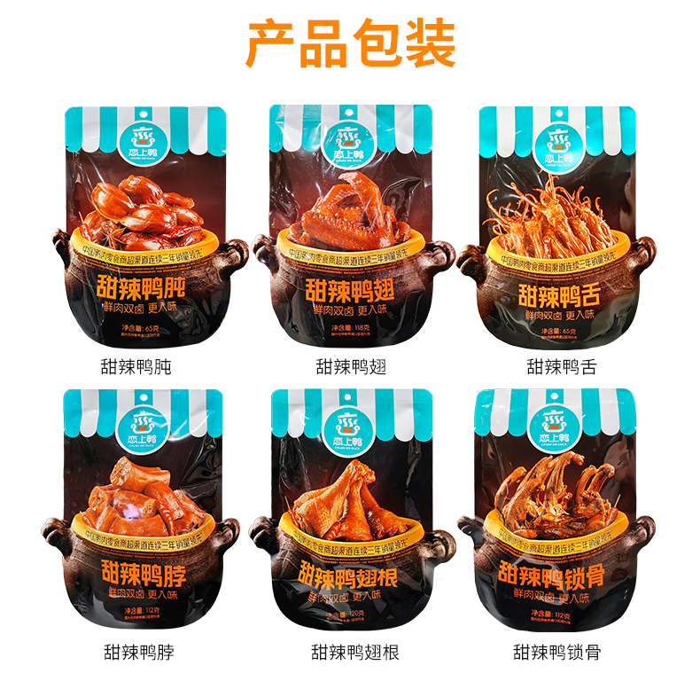 恋上鸭甜辣鸭货系列65-120g