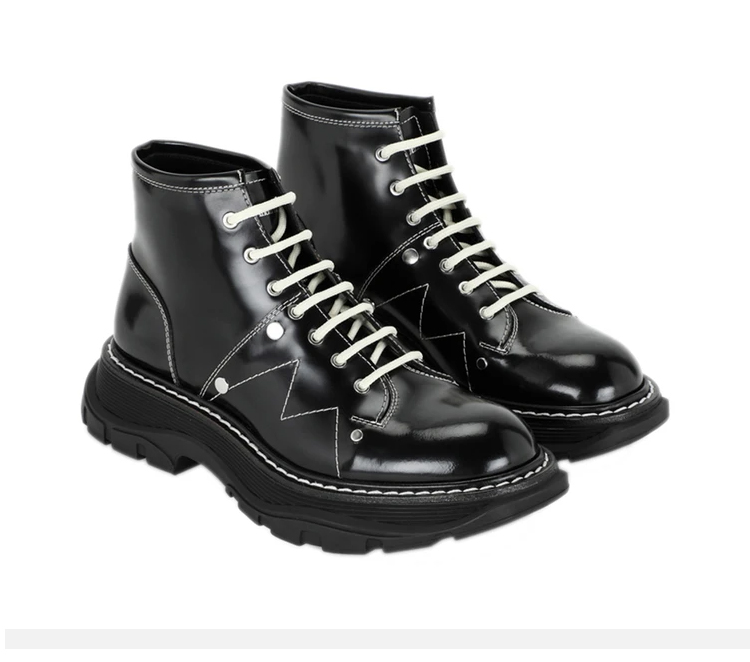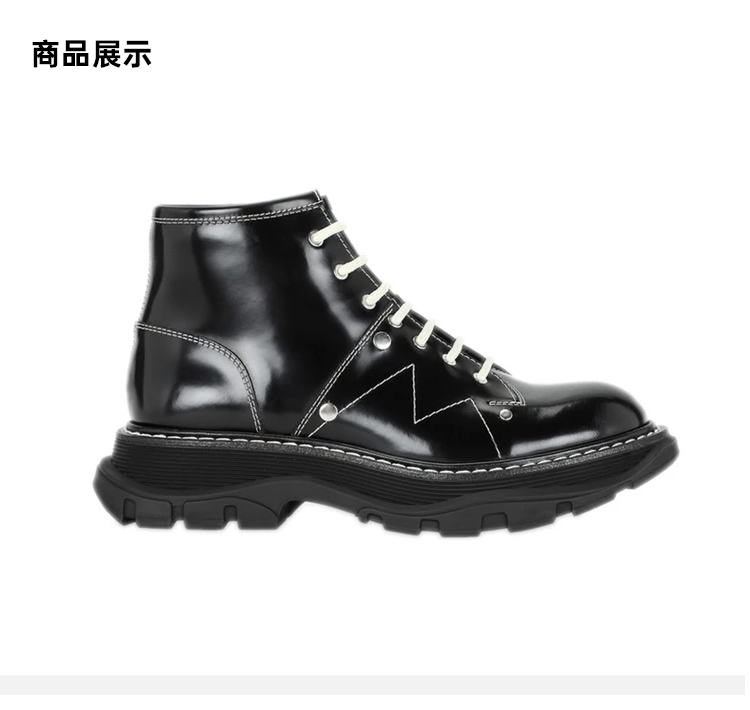 ALEXANDER MCQUEEN 亚历山大.麦昆 Tread 系带皮靴 女士皮鞋皮靴 黑色 595469 WHZ81 1090