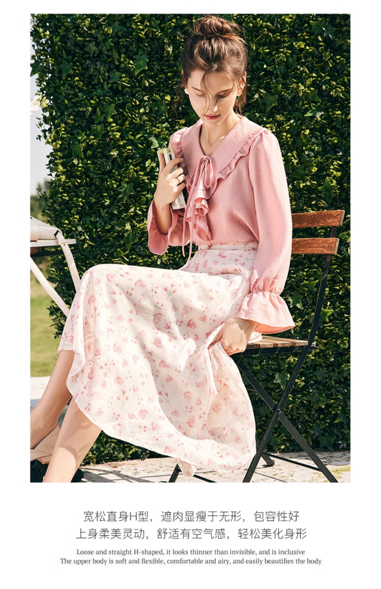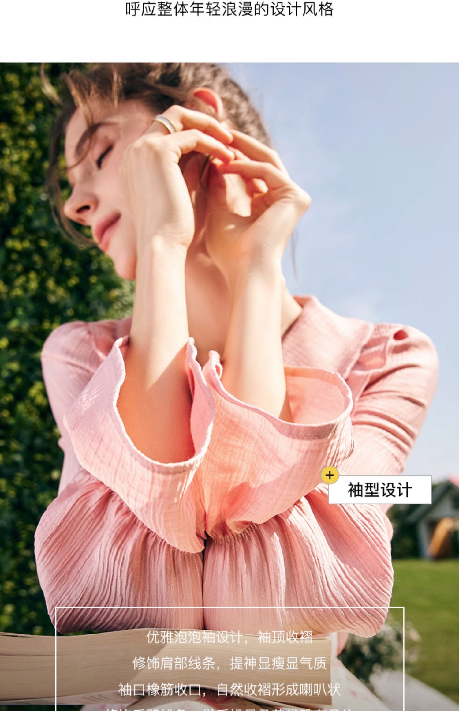 OLrain欧芮儿法式粉色蕾丝雪纺衫女秋季2023年新款宽松泡泡袖小衫