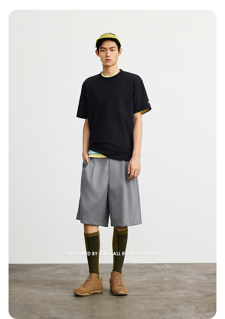 GXG男装 黑色T恤简约圆领短袖针织休闲舒适好搭T恤 夏季热卖G25X441014