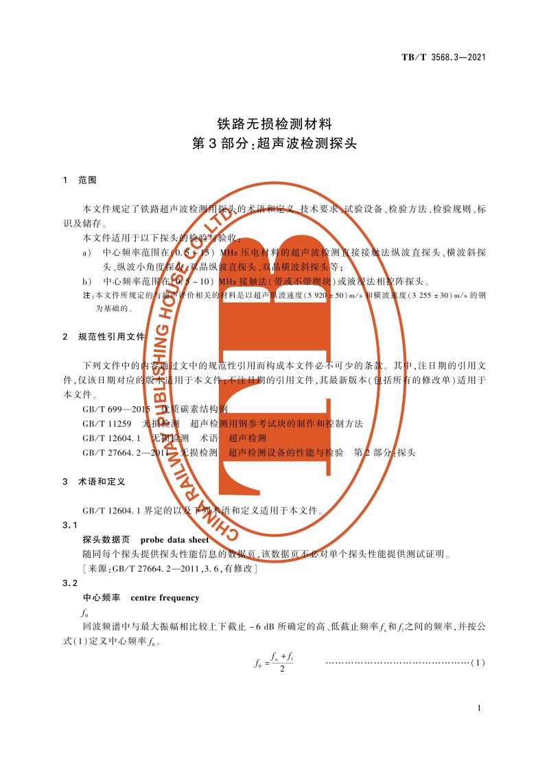 15113.6366 铁路无损检测材料 第3部分:超声波检测探头 TB/T 3568.3-2021