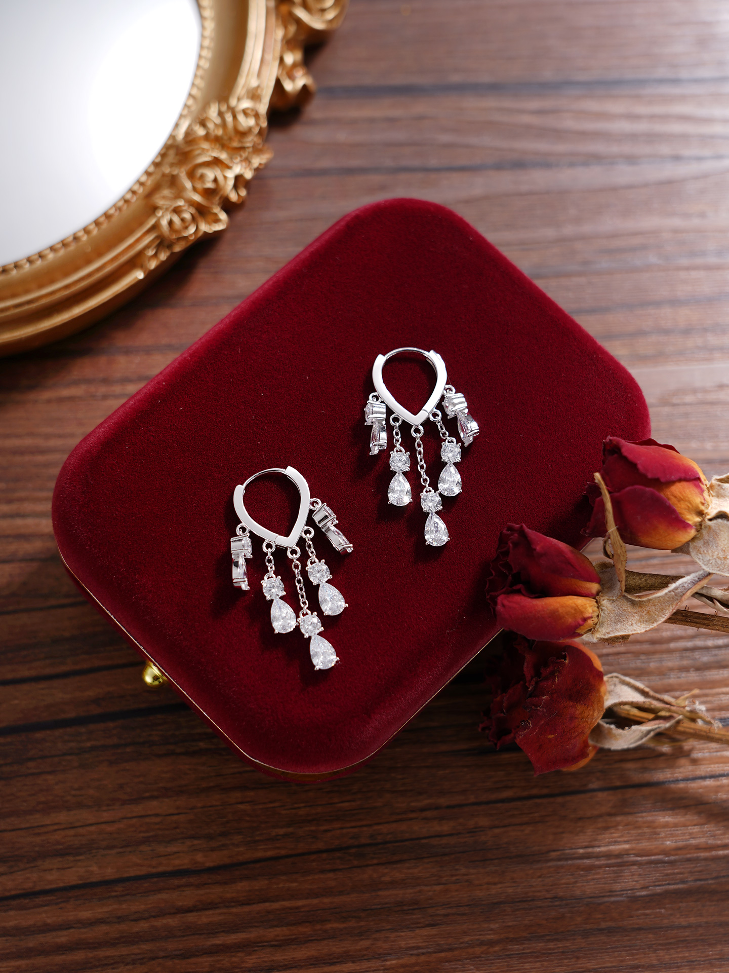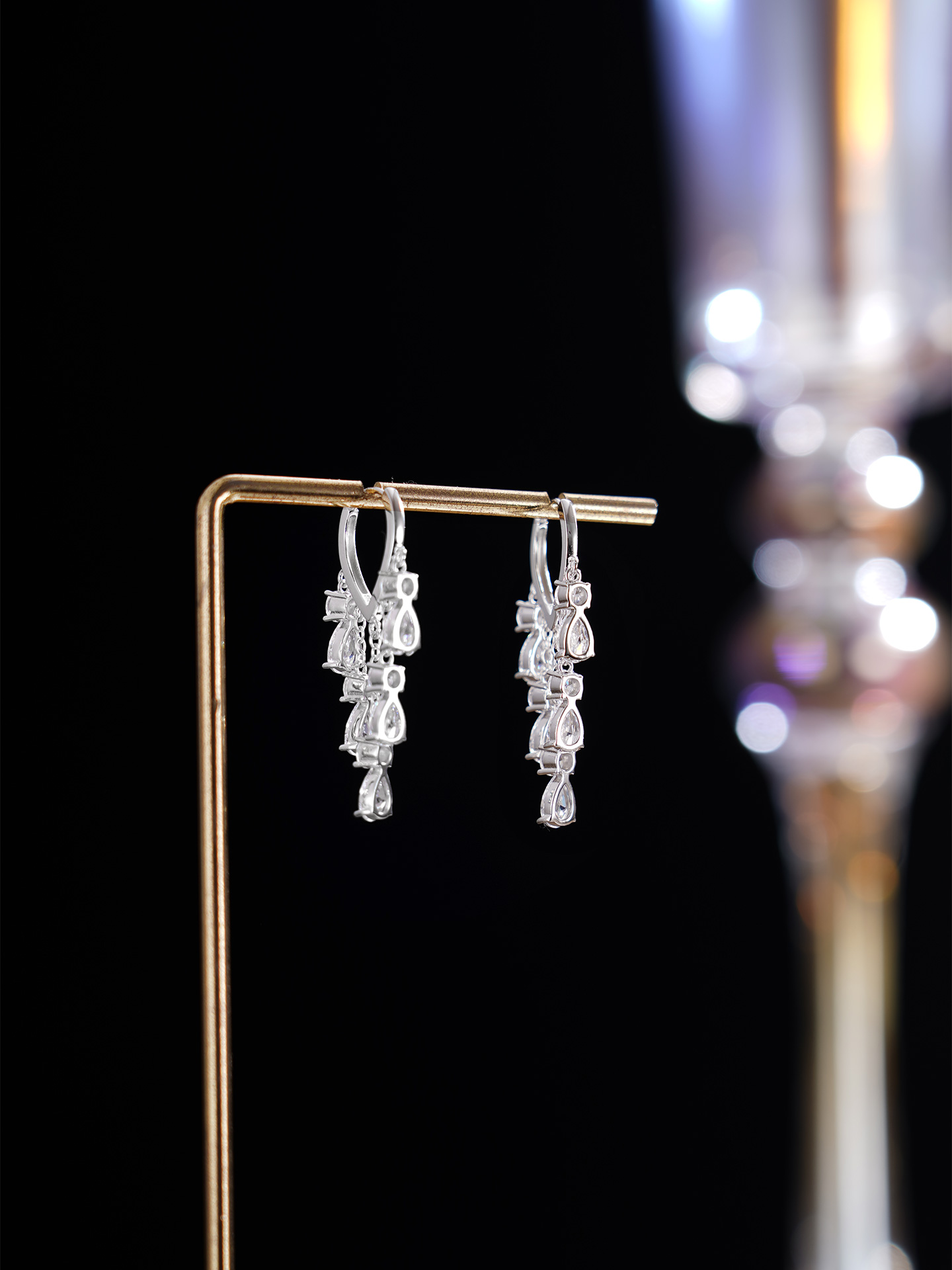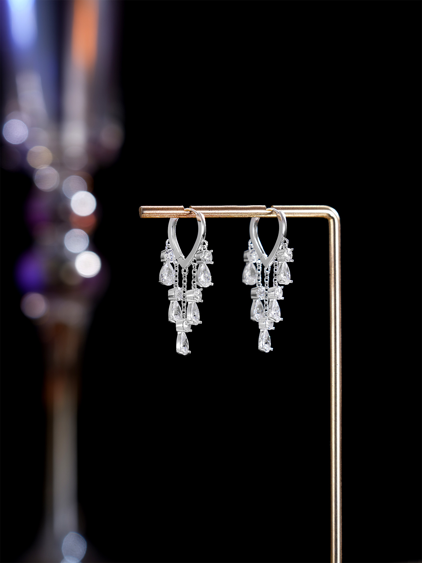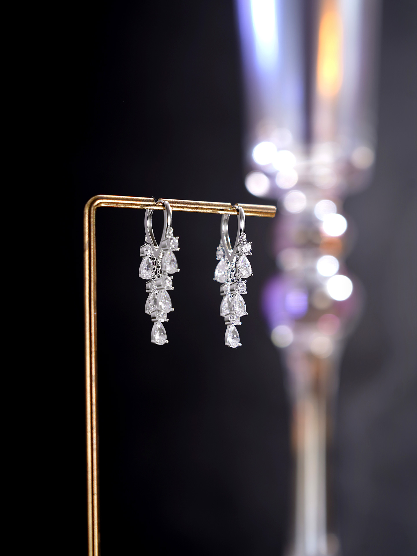 【寓意】:耳饰流苏设计,水滴锆石镶嵌,宛如玉露低垂,象征甘露滋养万物,寓意福泽深厚、生活富足。