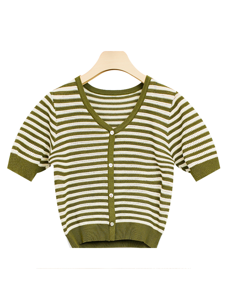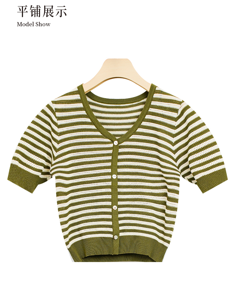 NUTS女装夏季新款条纹针织衫短袖毛衣女428053505