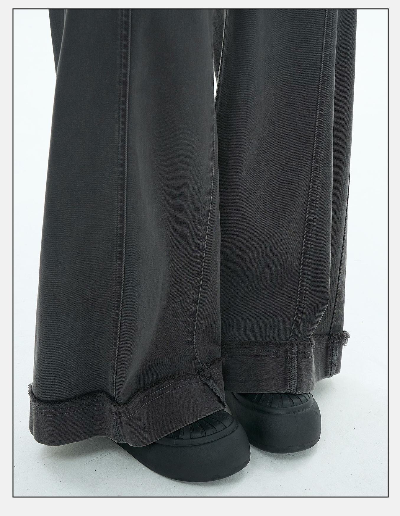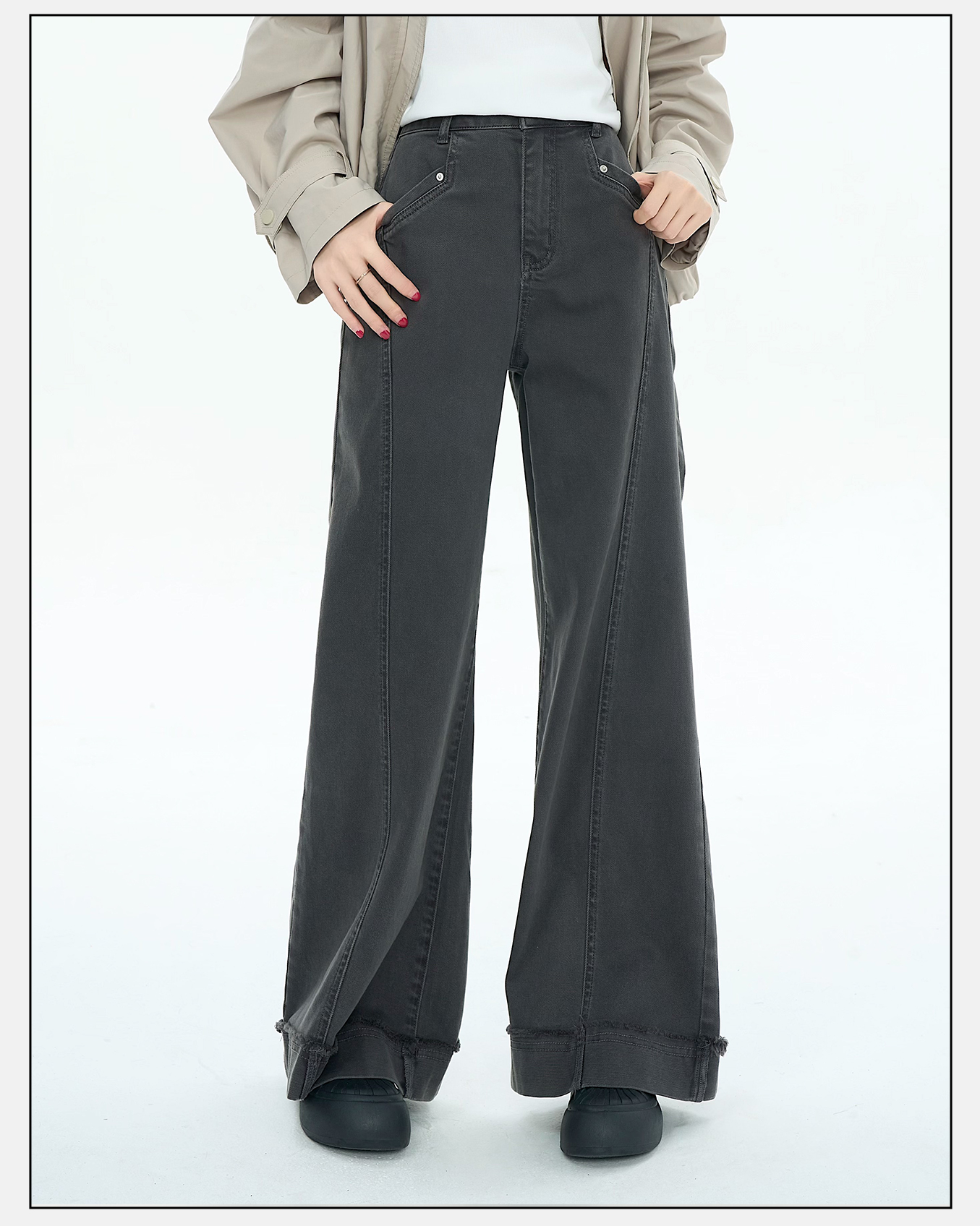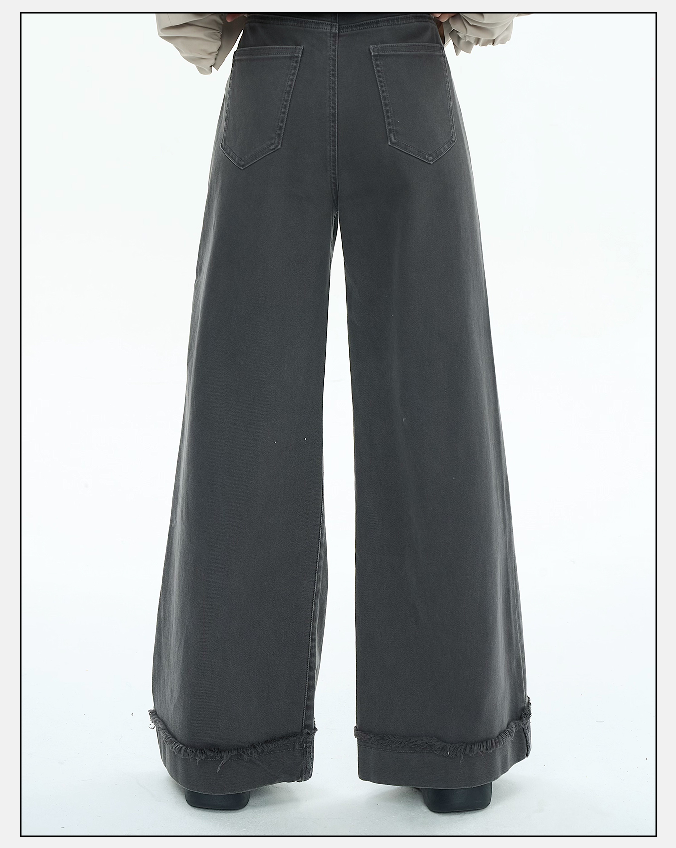 P&X设计师女装2025秋季丹宁女复古阔腿牛仔长裤825310249 黑色