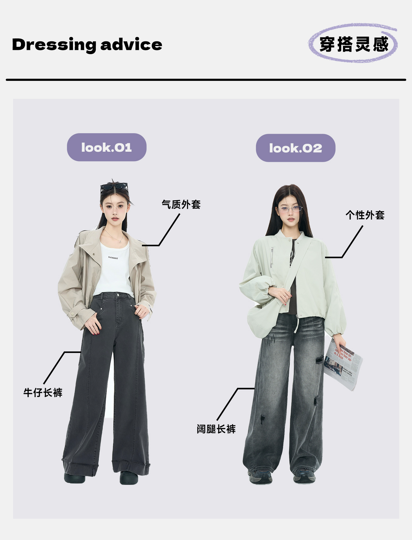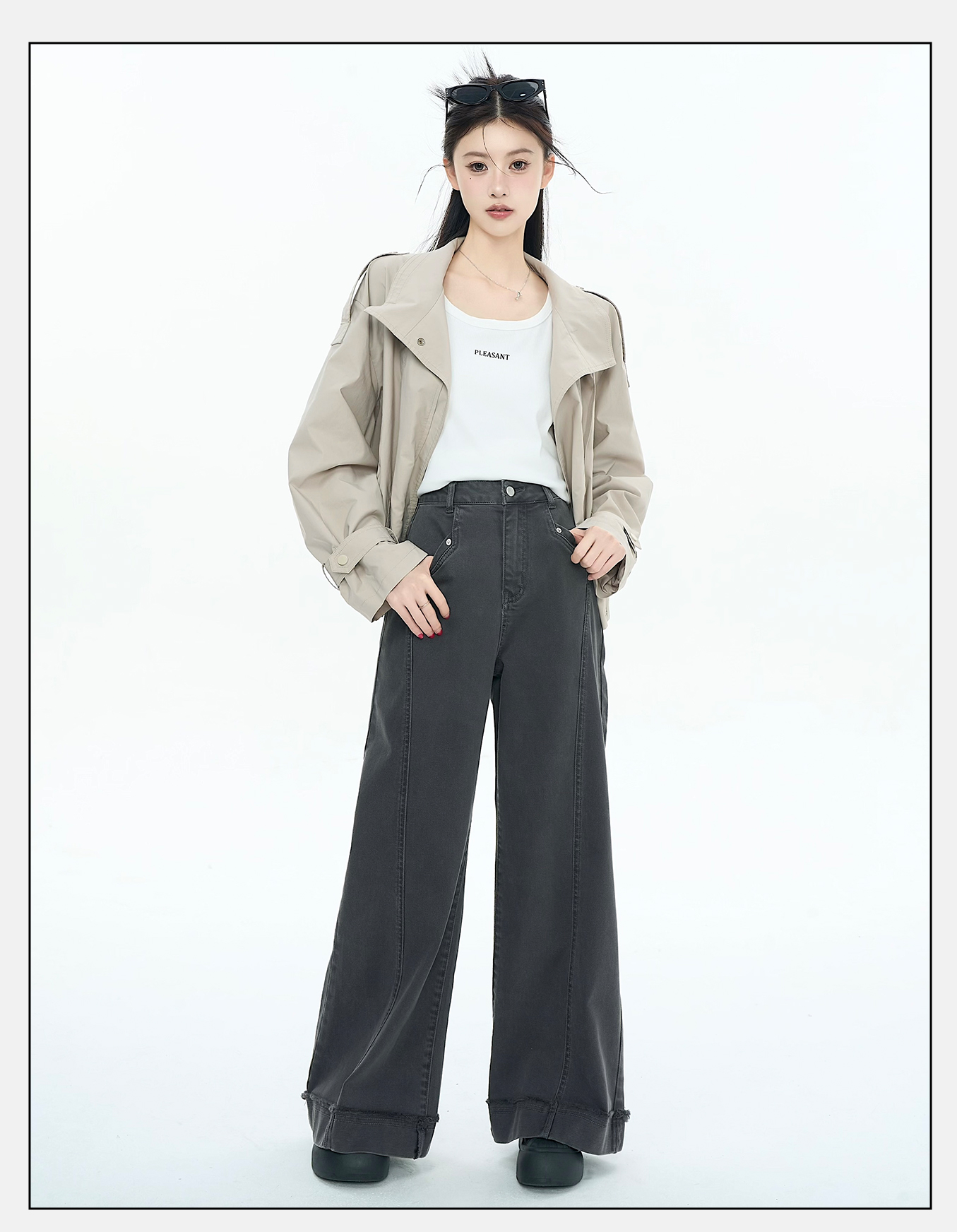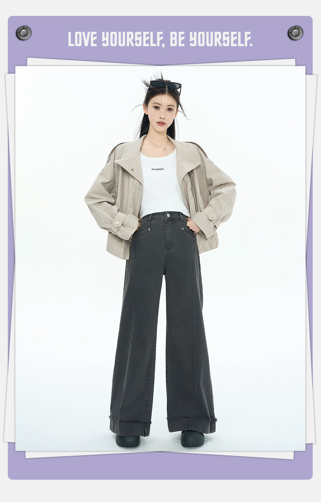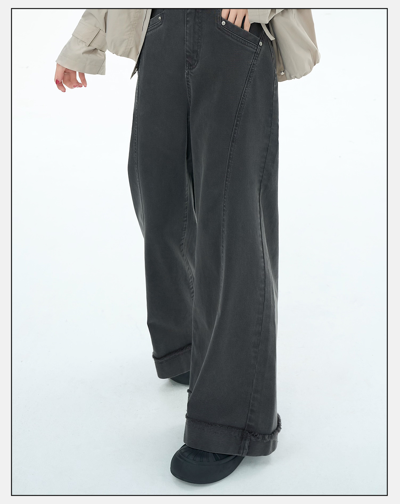 P&X设计师女装2025秋季丹宁女复古阔腿牛仔长裤825310249 黑色