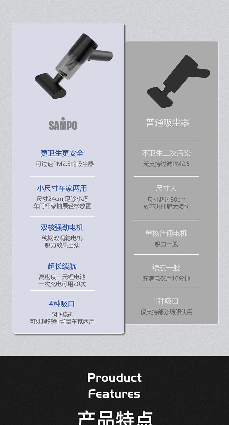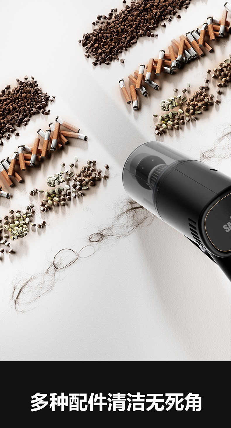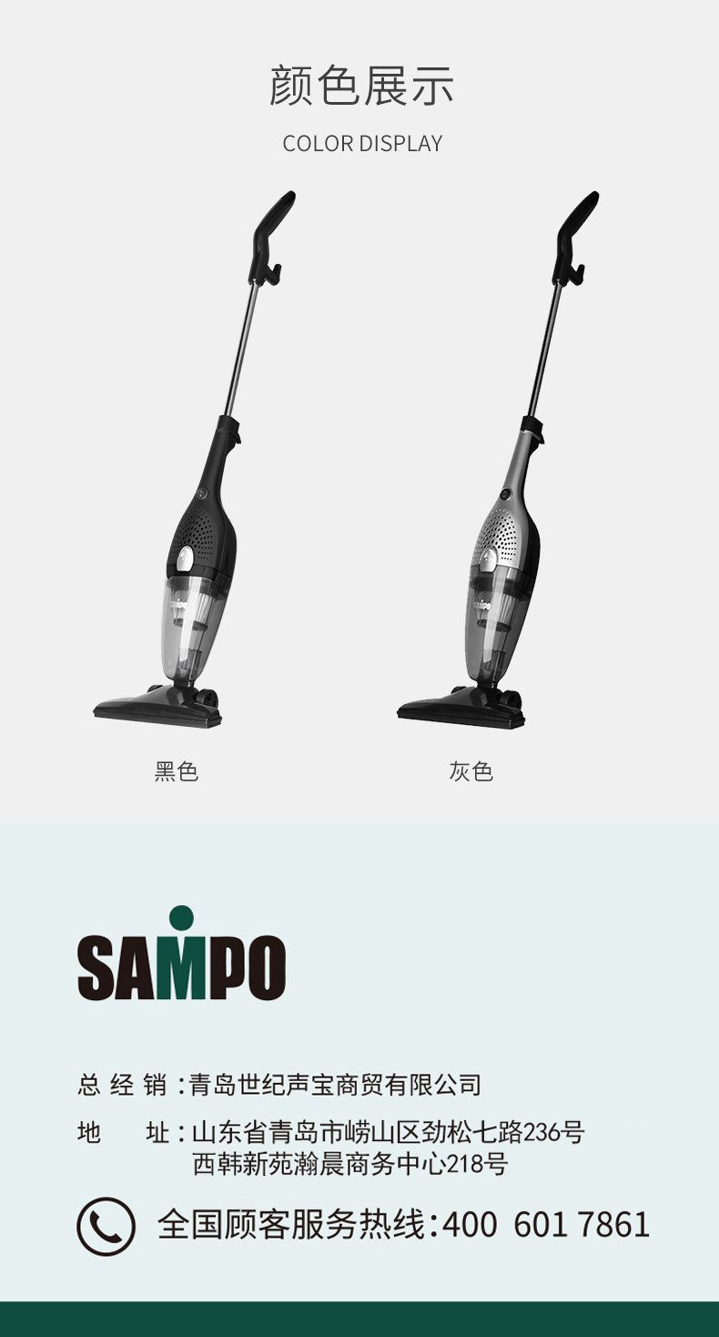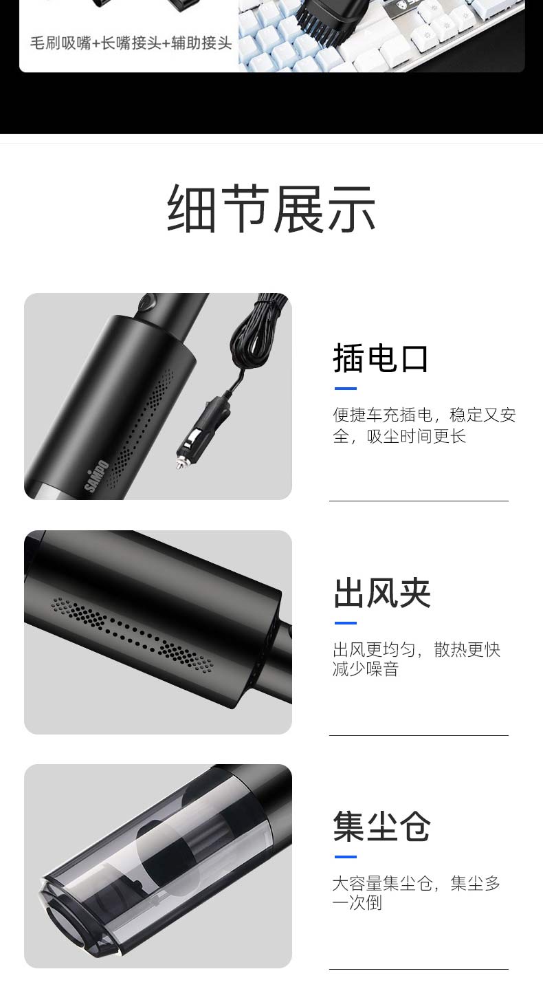 SAMPO 吸尘器手持便携家用毛发不缠绕八核电机大功率大吸力干湿两用滤芯可清洗静音车载家用吸尘器 车载吸尘器黑色