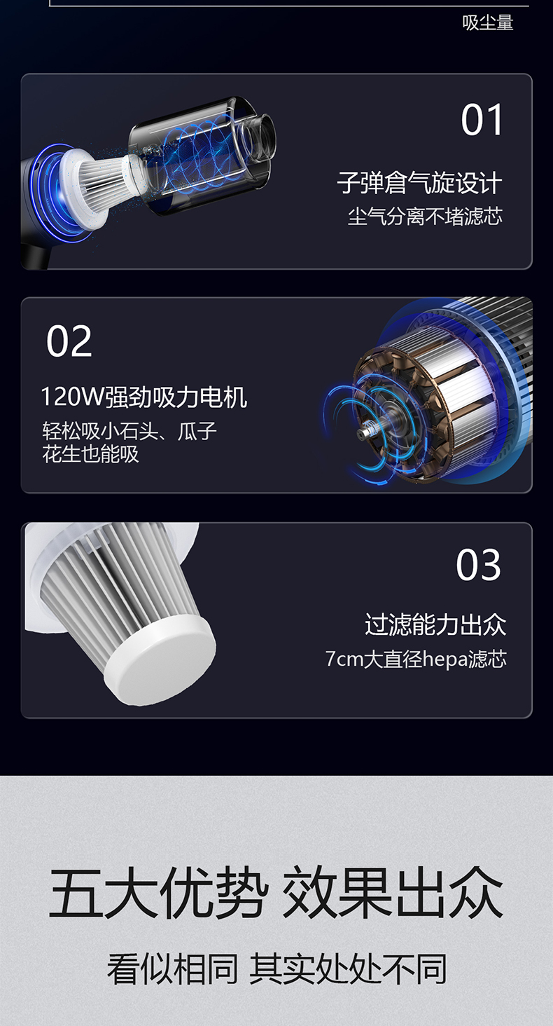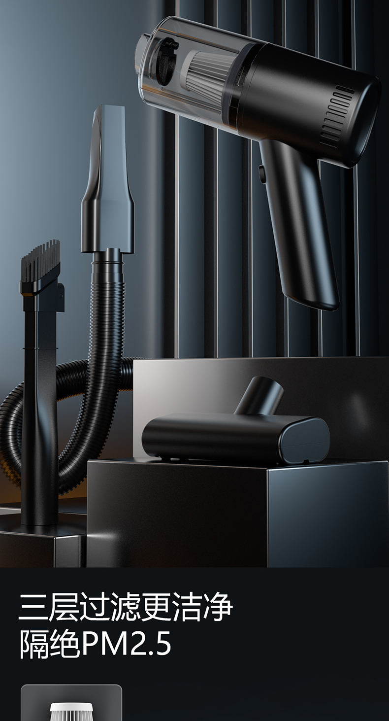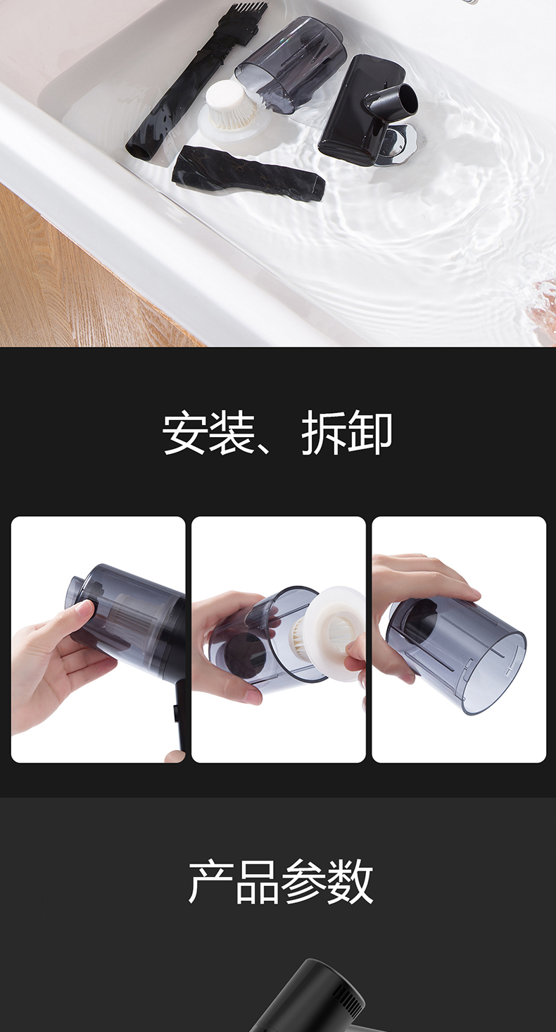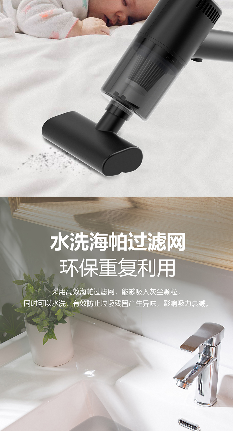 SAMPO 吸尘器手持便携家用毛发不缠绕八核电机大功率大吸力干湿两用滤芯可清洗静音车载家用吸尘器 车载吸尘器黑色