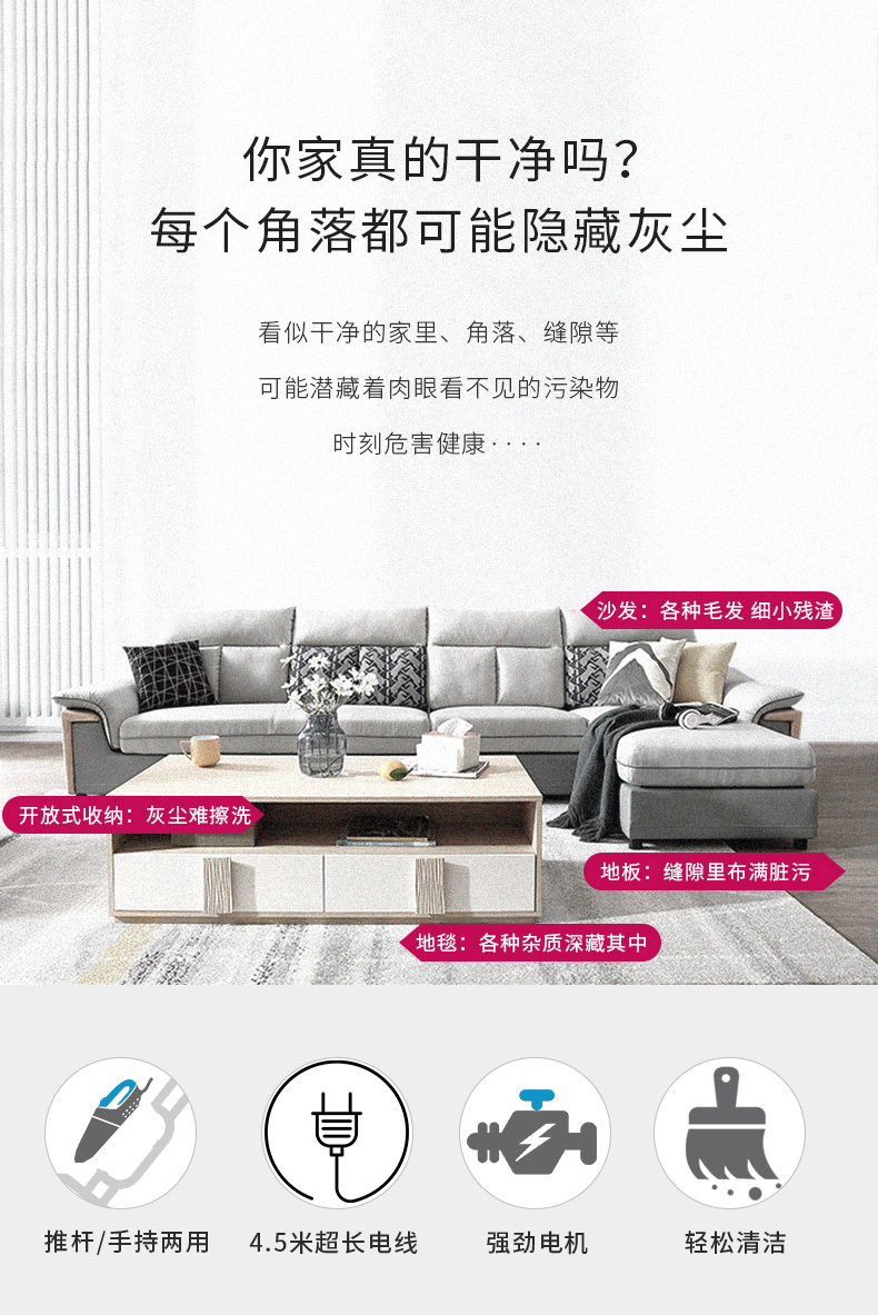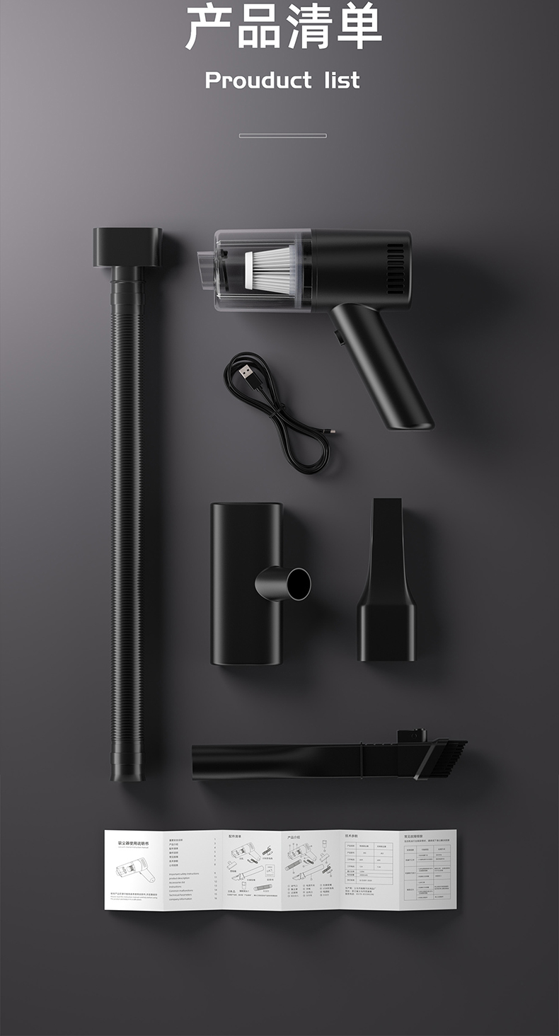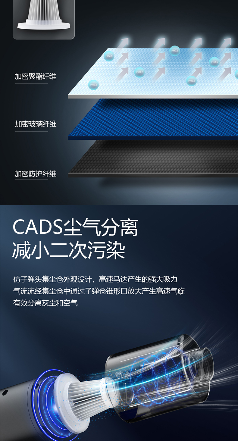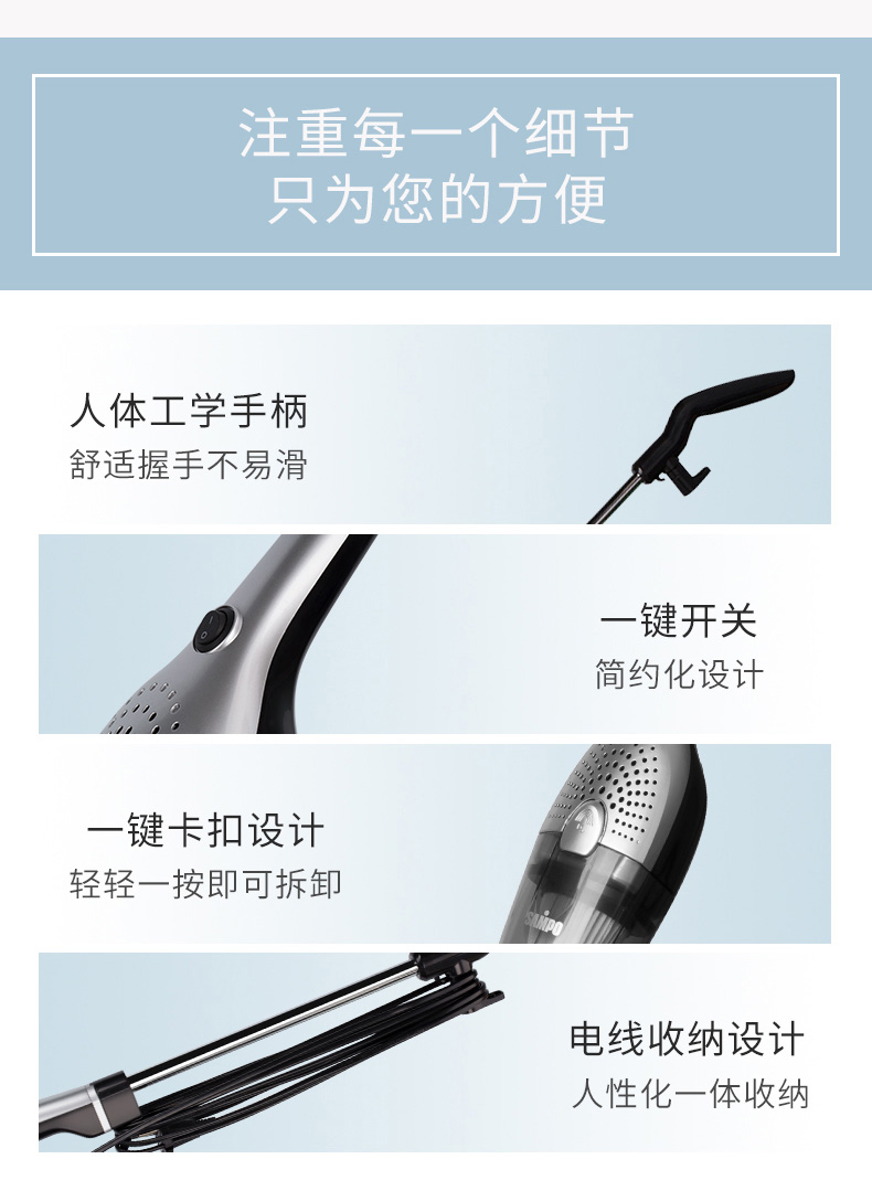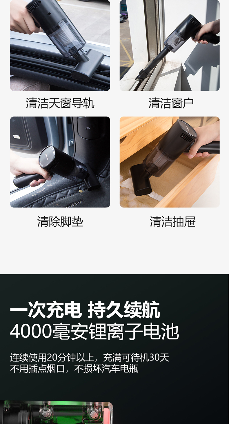 SAMPO 吸尘器手持便携家用毛发不缠绕八核电机大功率大吸力干湿两用滤芯可清洗静音车载家用吸尘器 车载吸尘器黑色