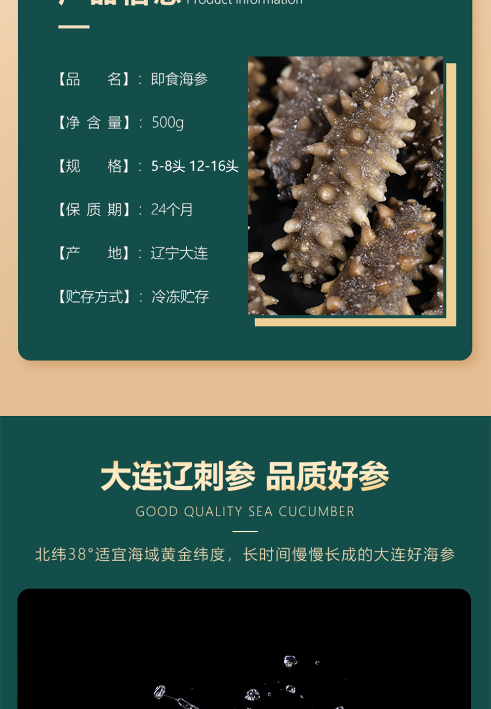 【北京卫视专享】辽宁大连鲜食高压普口海参500g装5~8头
