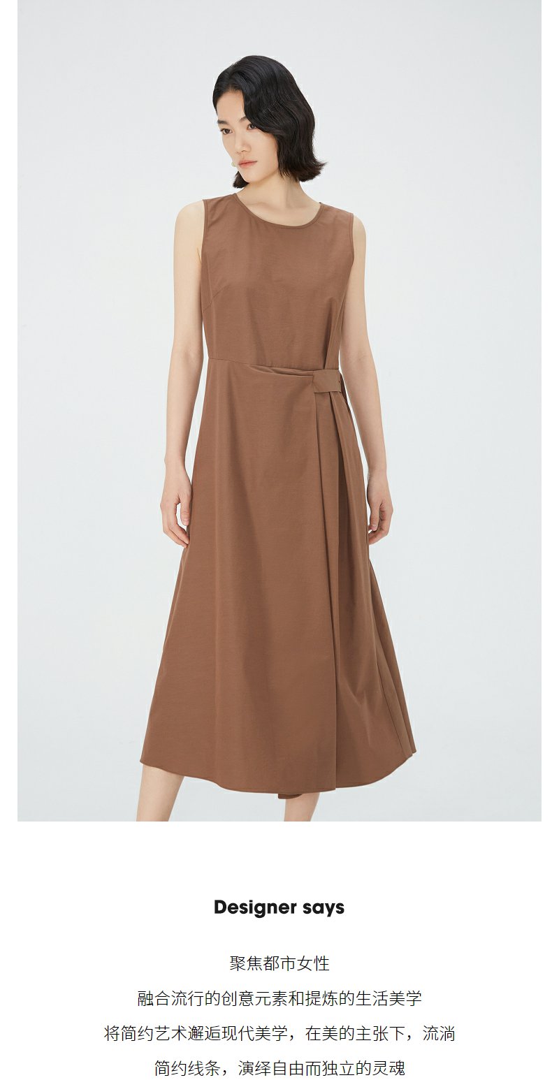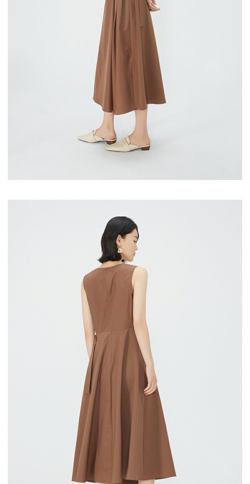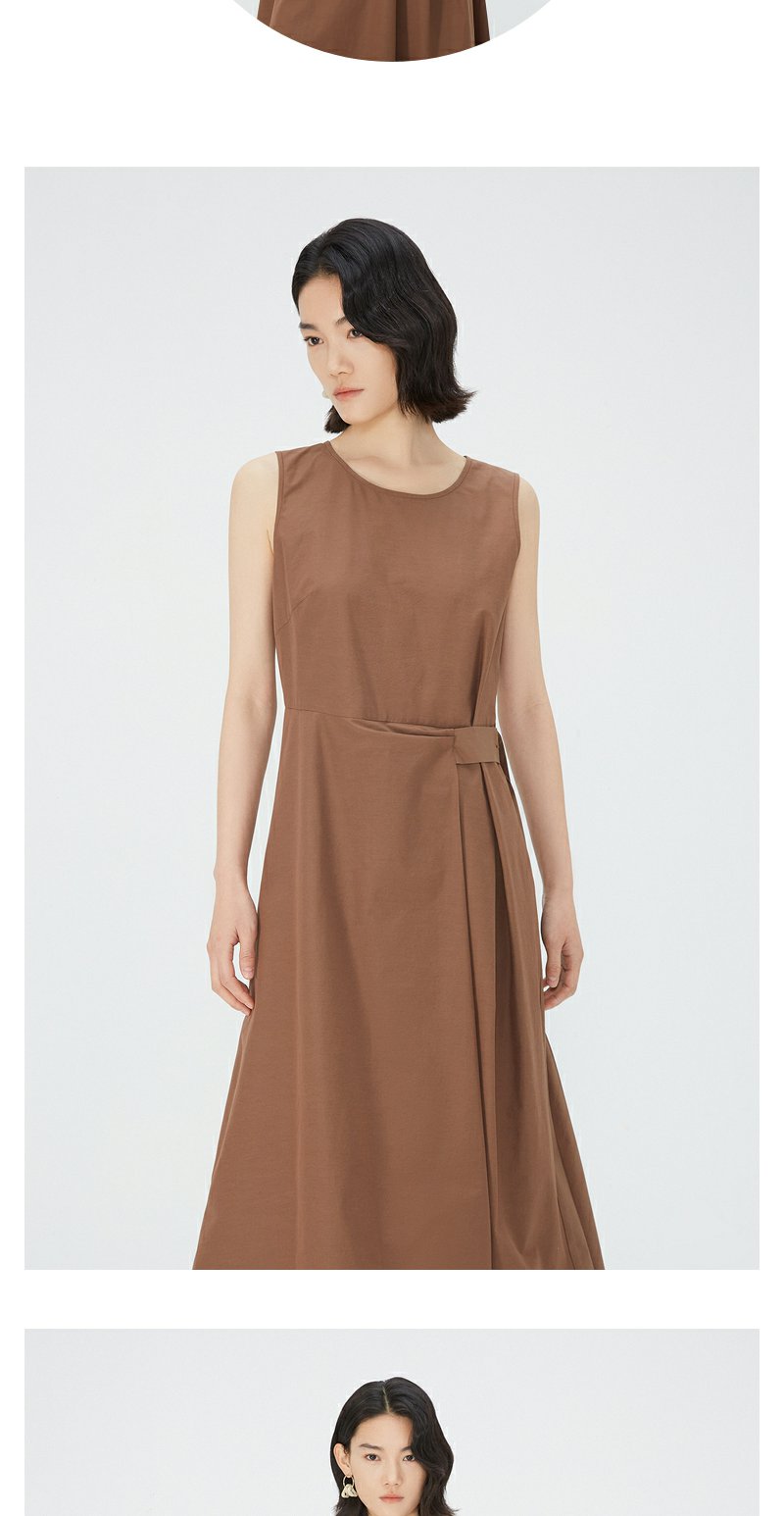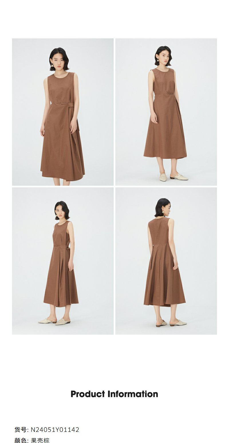 NEELLY纳俪商场同款棕色无袖连衣裙女夏季简约通勤显瘦休闲中长裙N24051Y01142