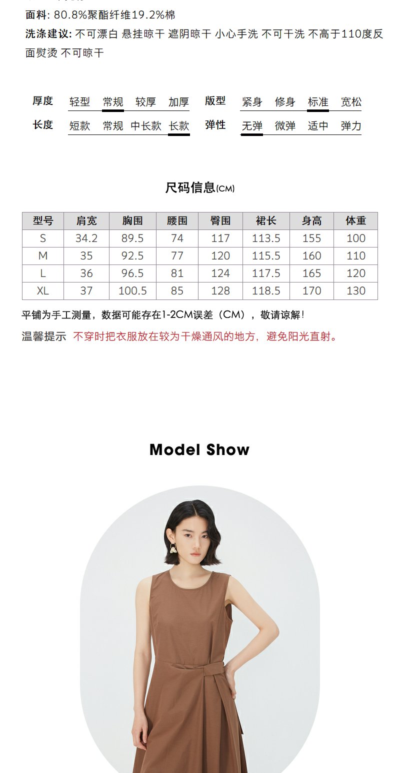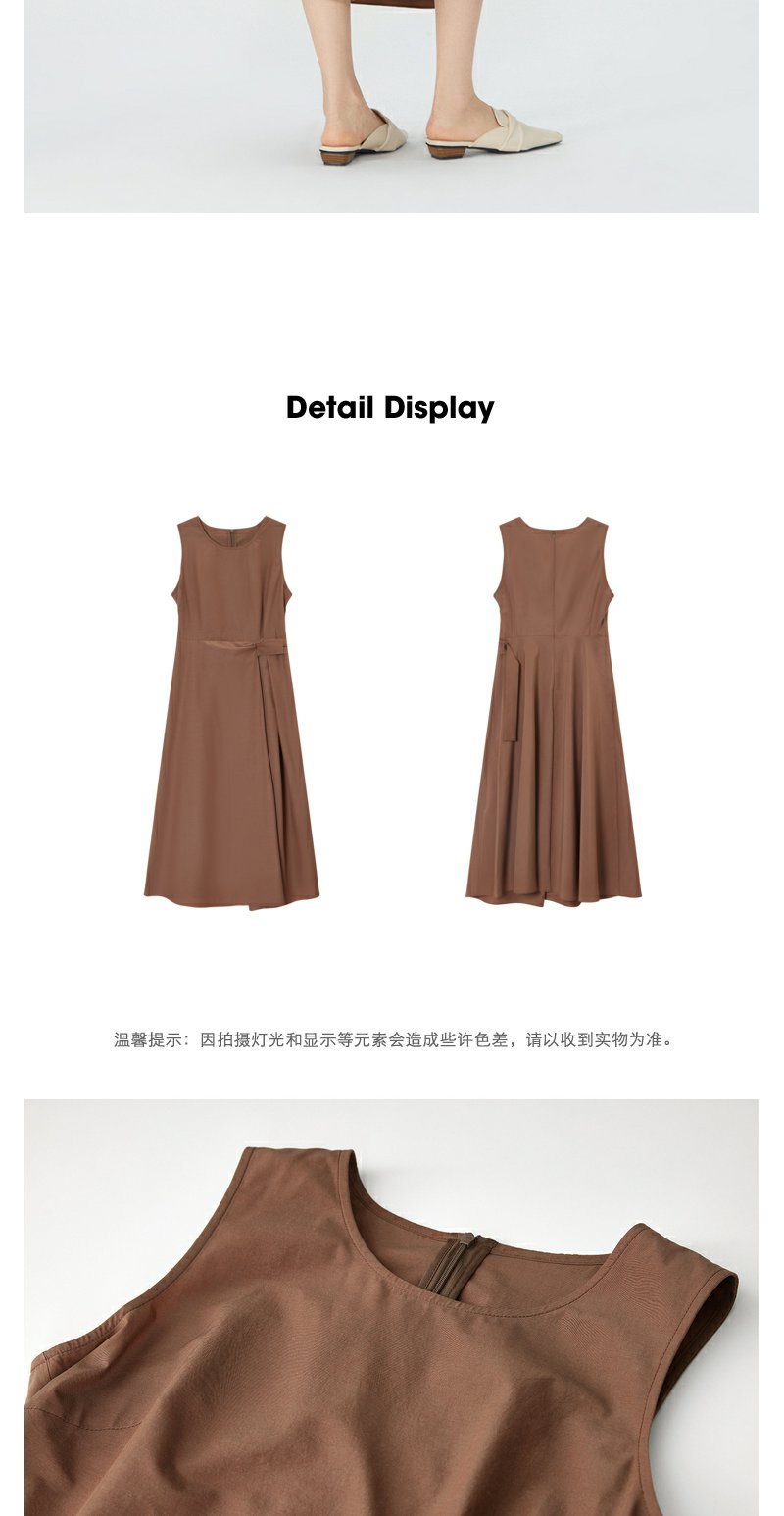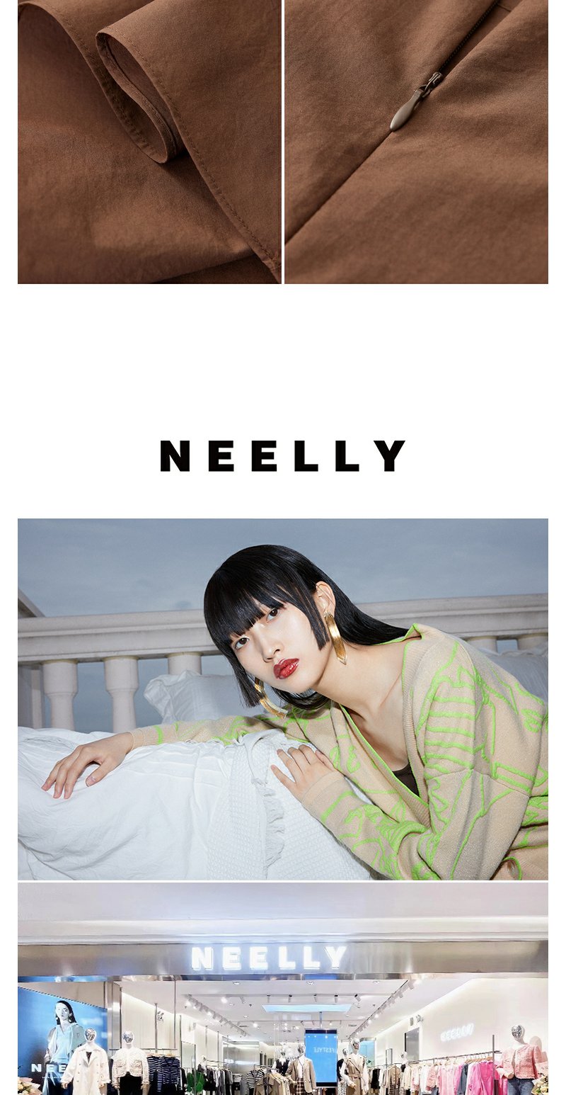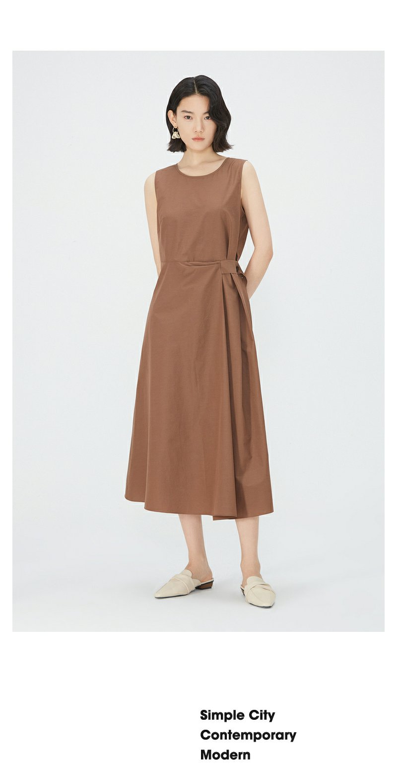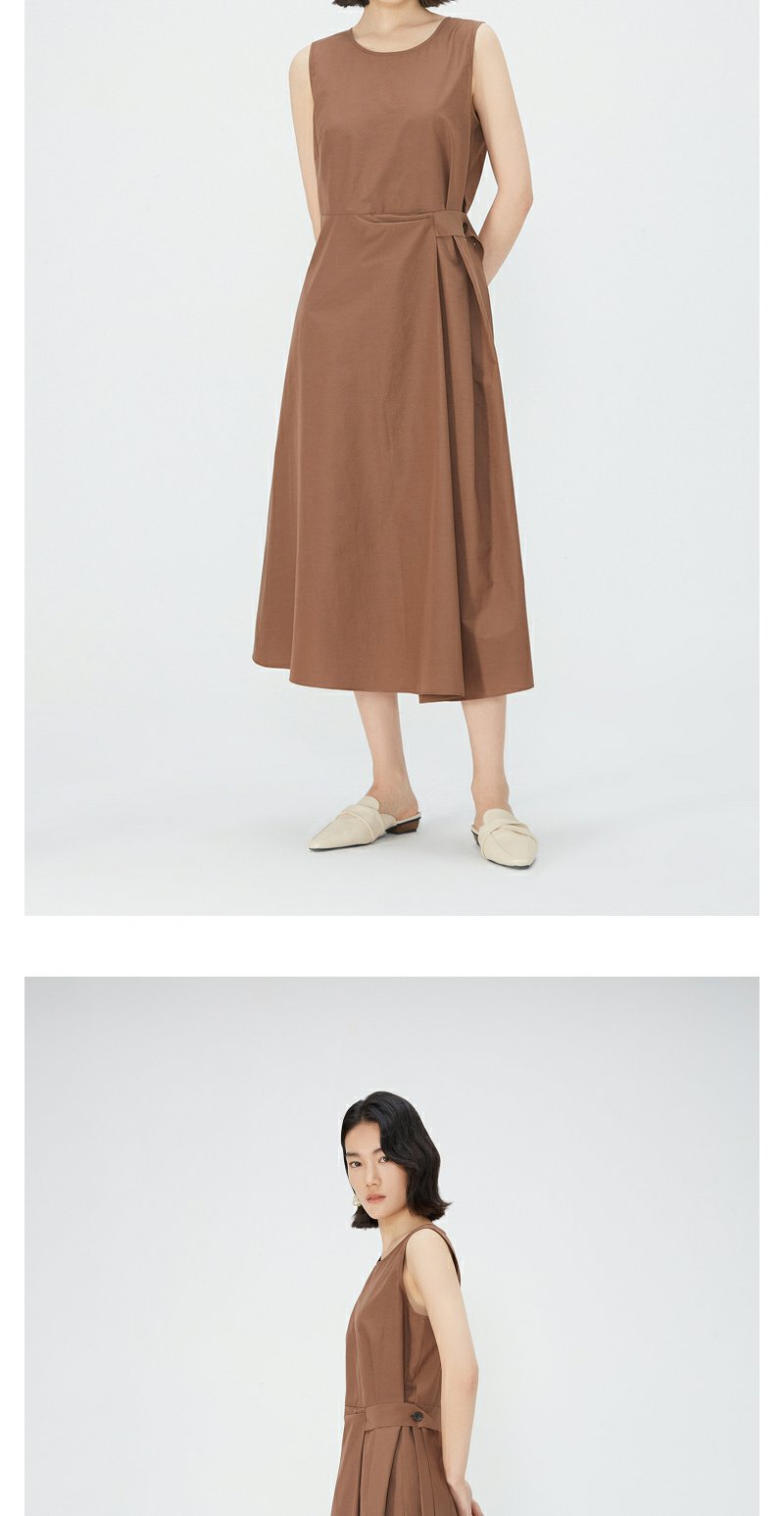 NEELLY纳俪商场同款棕色无袖连衣裙女夏季简约通勤显瘦休闲中长裙N24051Y01142