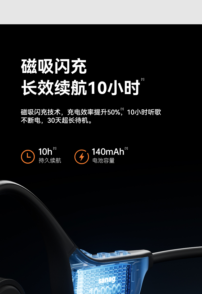 【特价!支持比价】sanag塞那 B60SPro 64G不入耳挂耳式无线游泳IPX8运动骑行跑步防水不怕掉 自带内存 健身必备华为小米苹果 挂耳式 主动降噪 蓝牙耳机