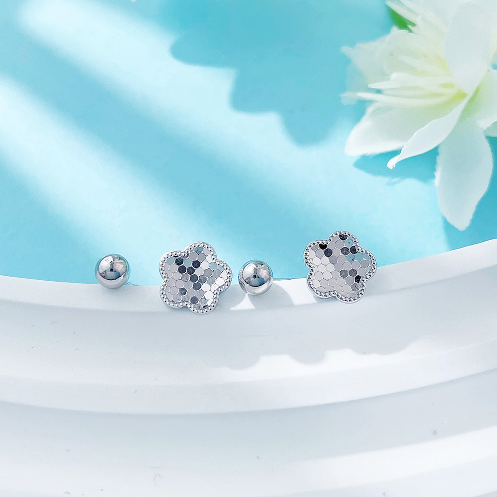 【限时8.8折】【线上铂金馆】PT950 铂金实心鱼鳞可拆螺丝U形幸运五瓣花耳饰耳钉(PTES00131)预售产品下单后不退款不退货不换货不补差价)