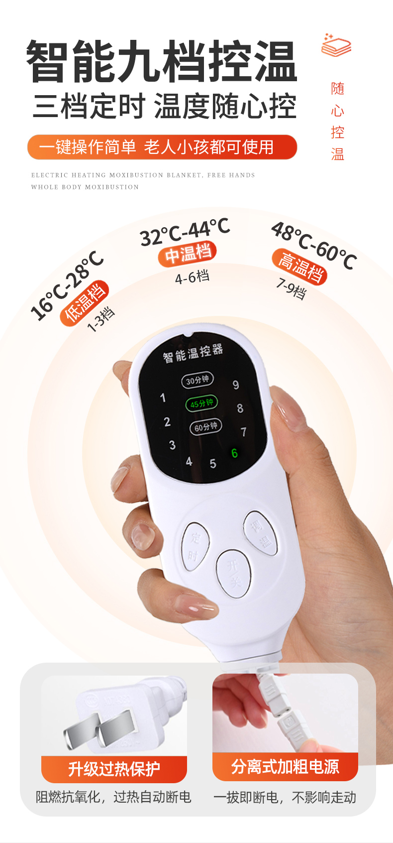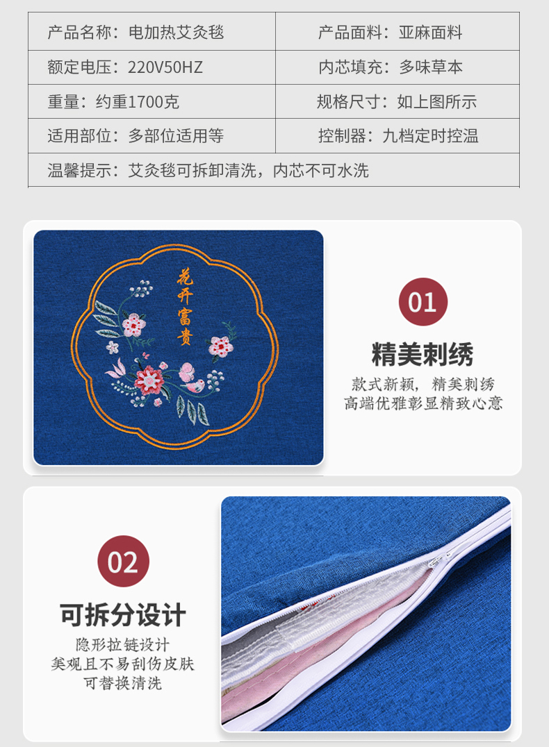 电加热定时亚麻艾绒毯