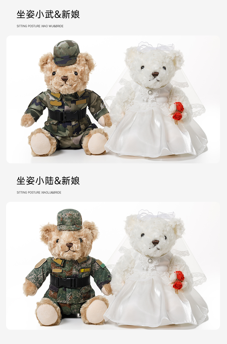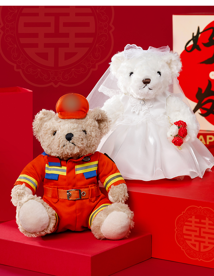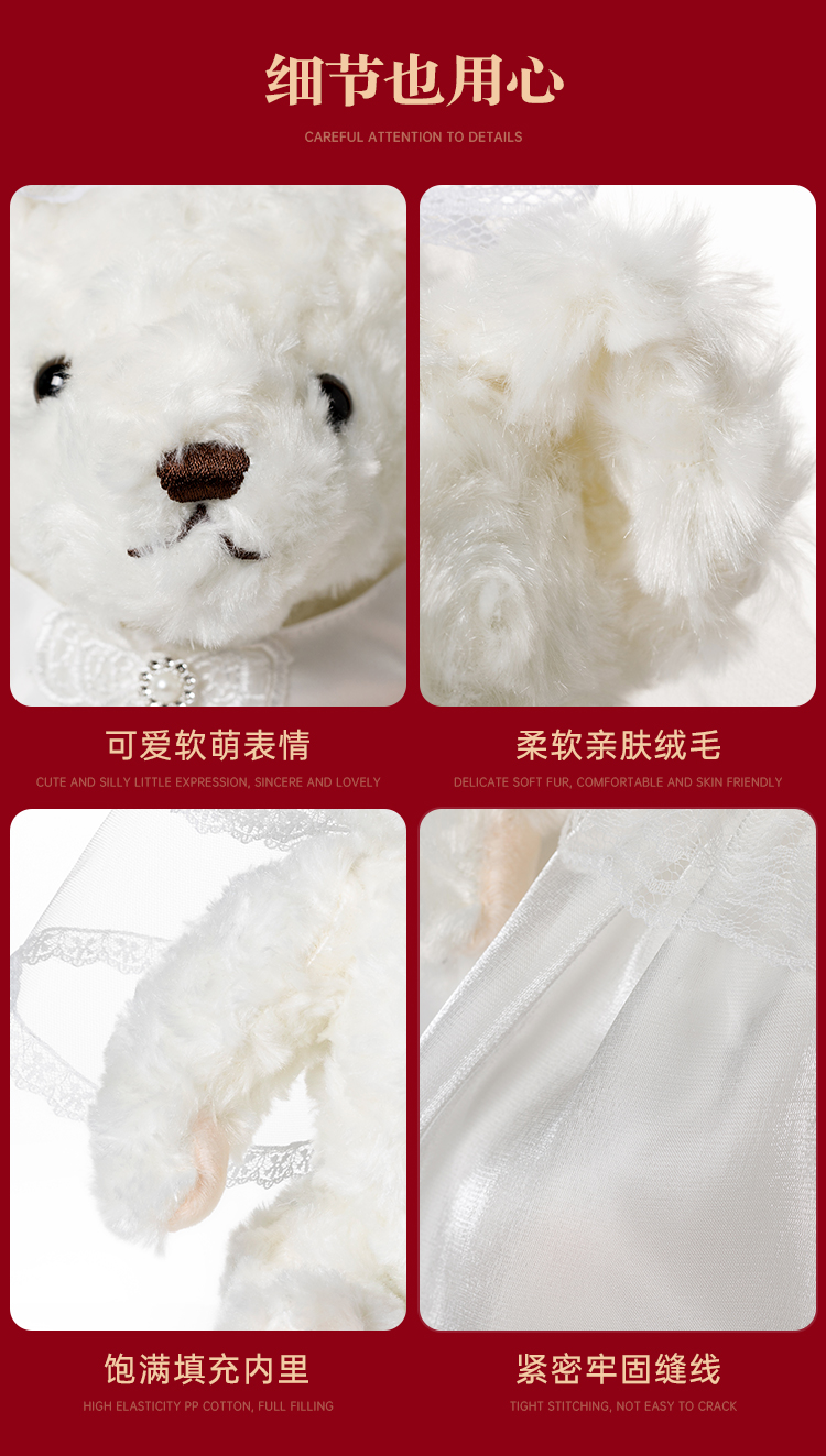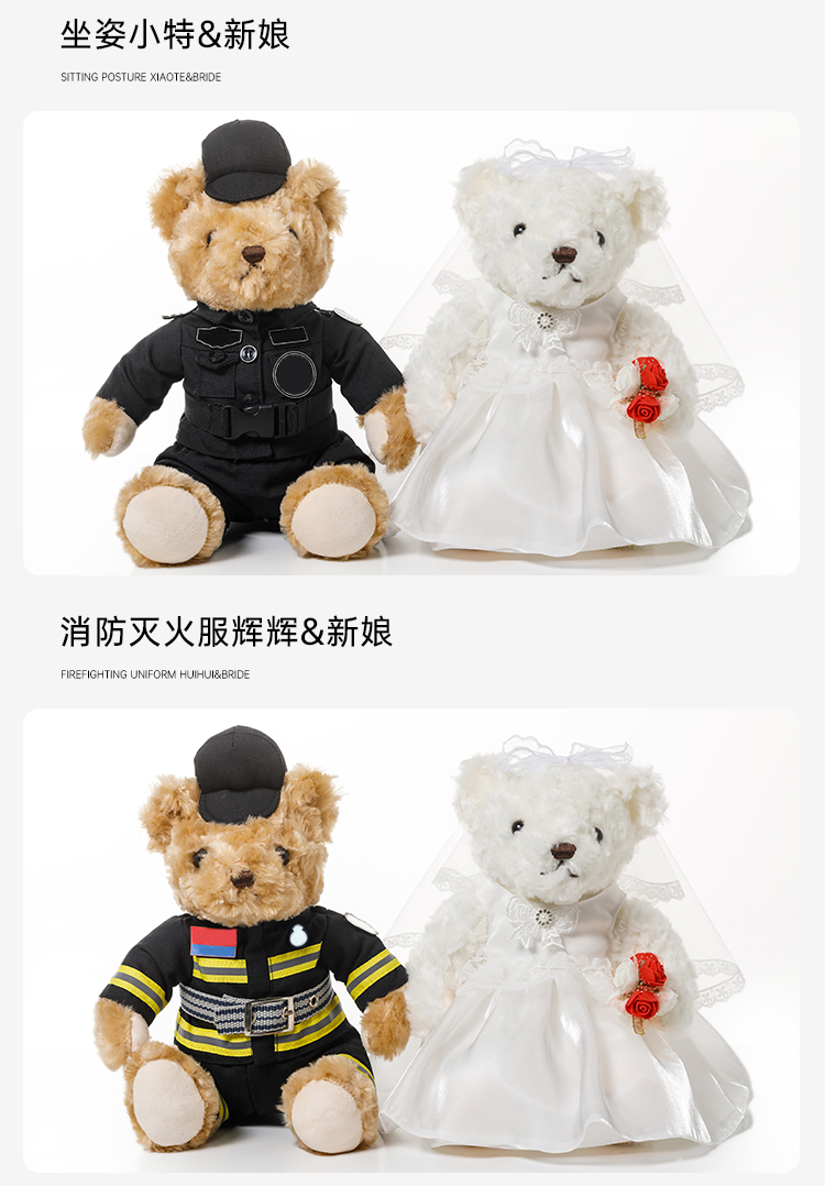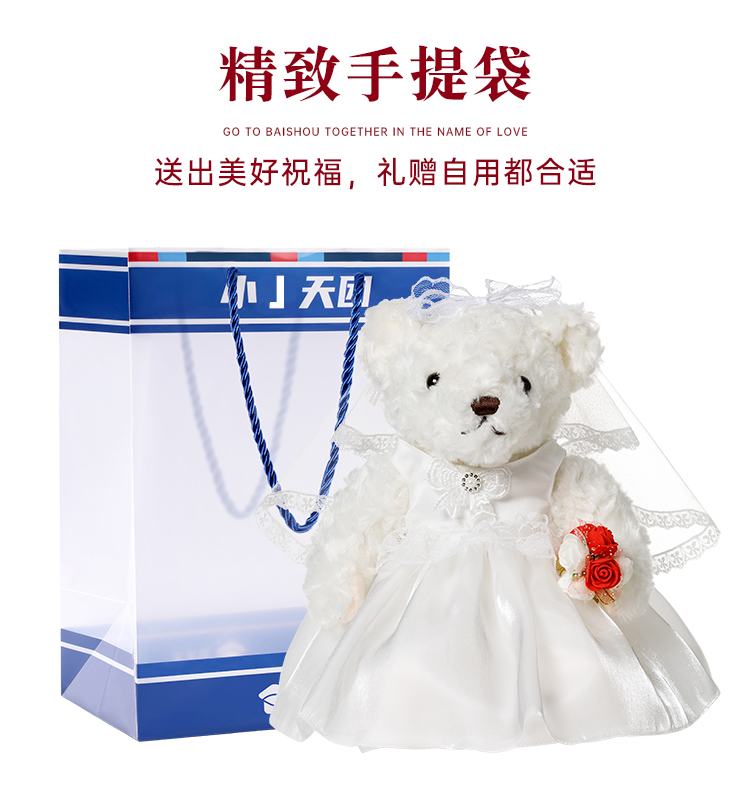 【实付满199送钥匙扣】【坐姿新婚小熊】婚纱毛绒小熊公仔订婚/结婚送礼情人节专属礼物创意玩偶婚庆用品