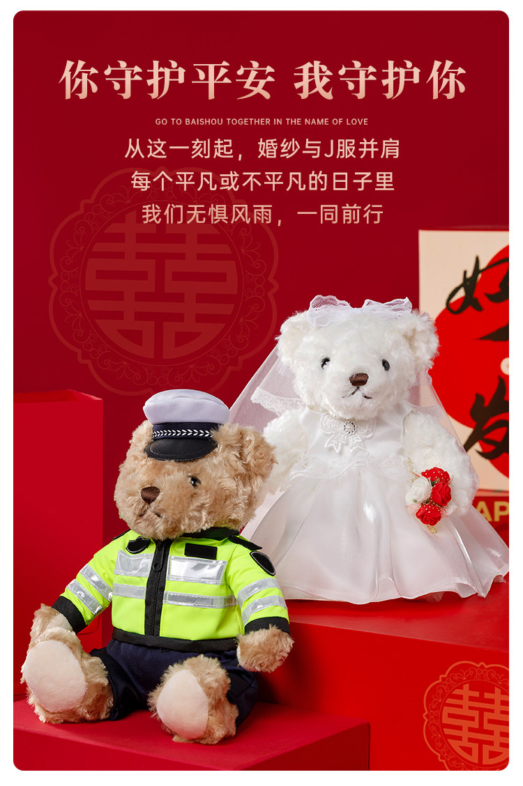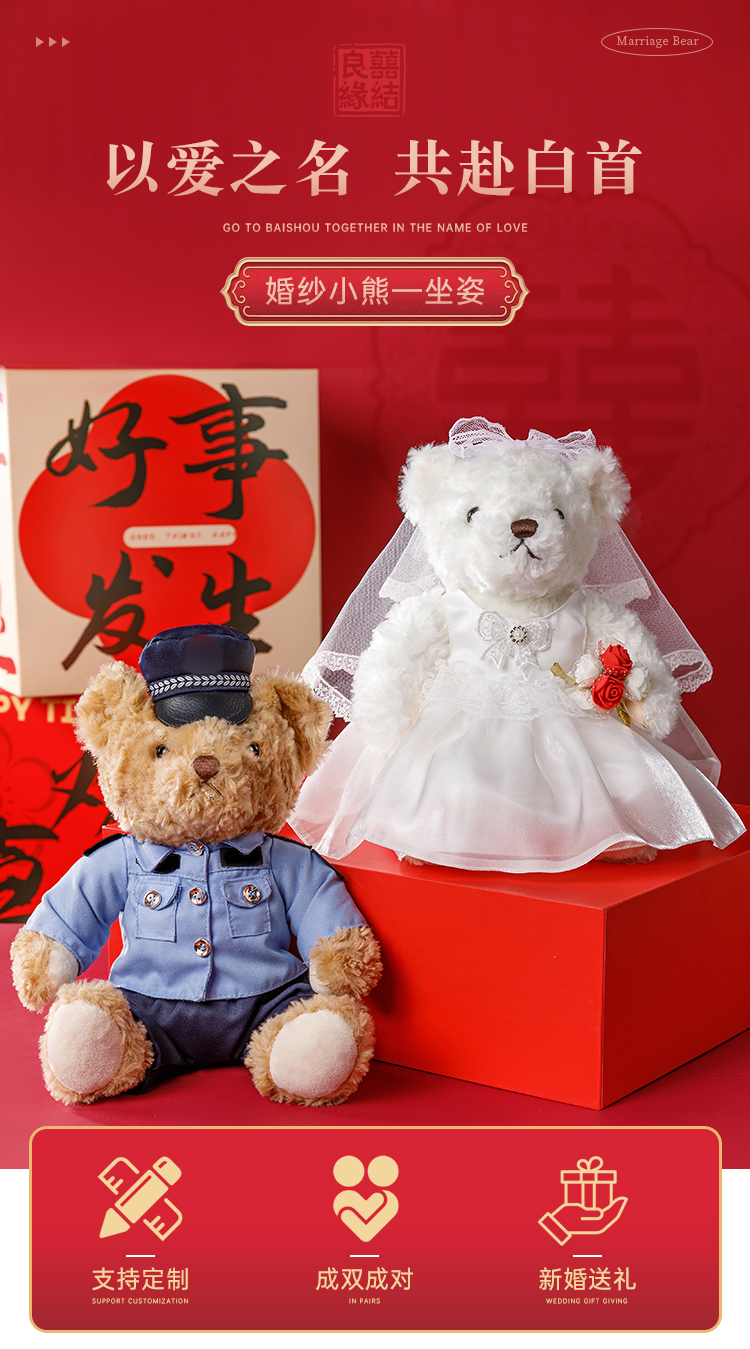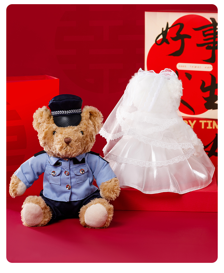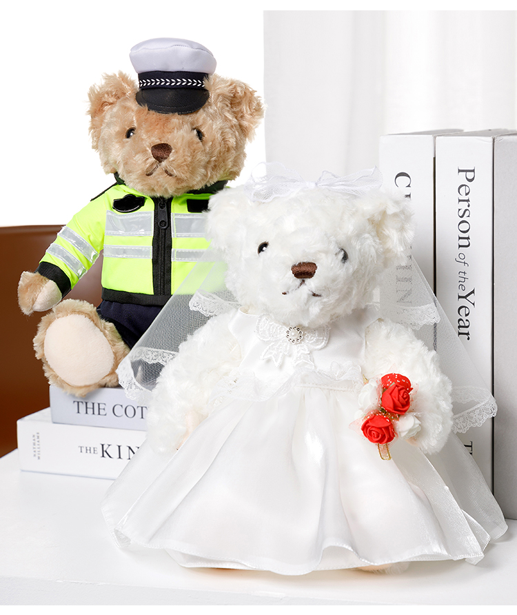 【实付满199送钥匙扣】【坐姿新婚小熊】婚纱毛绒小熊公仔订婚/结婚送礼情人节专属礼物创意玩偶婚庆用品
