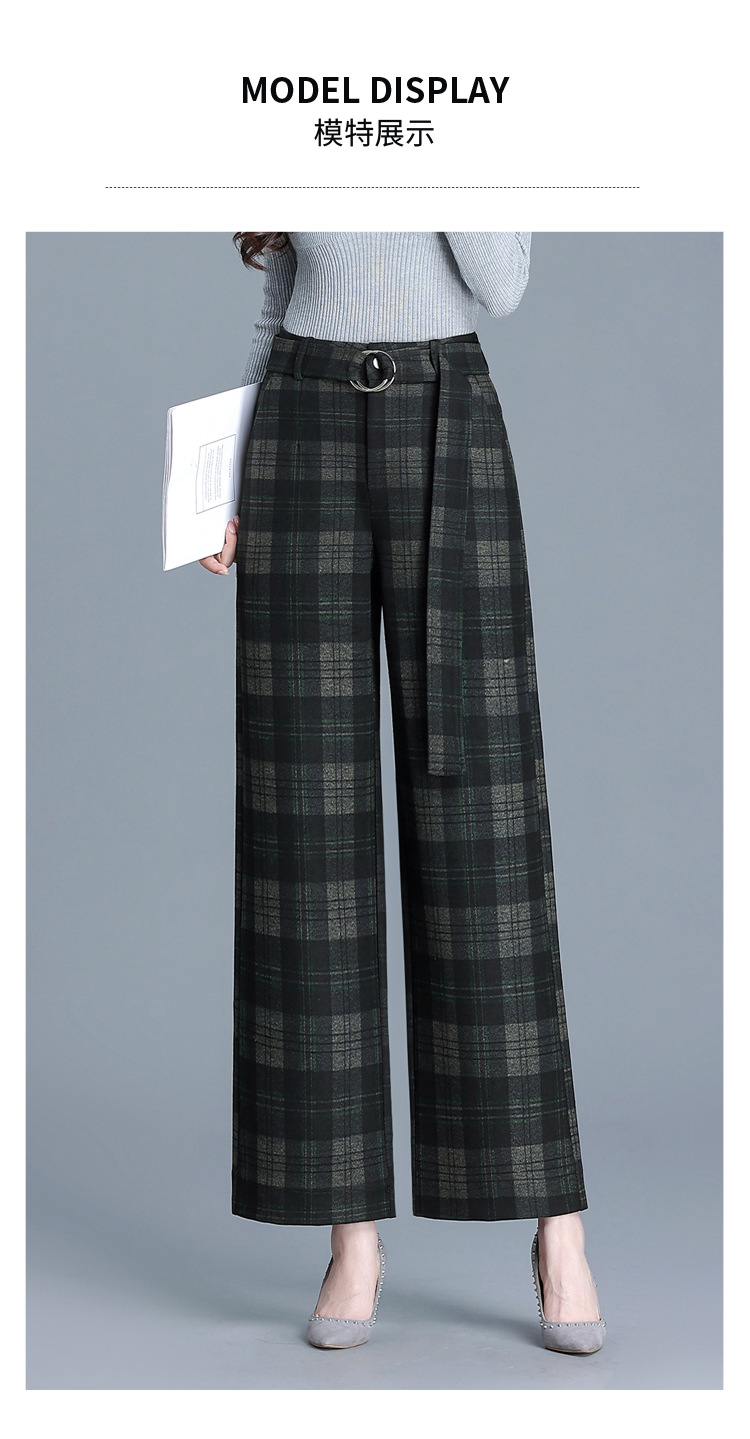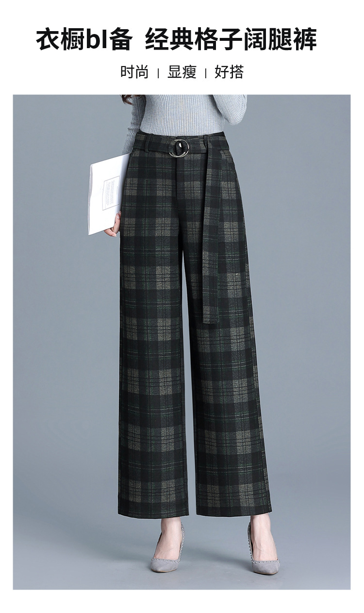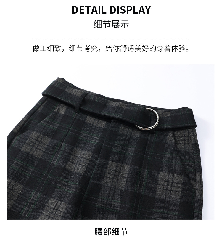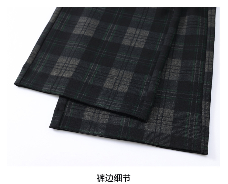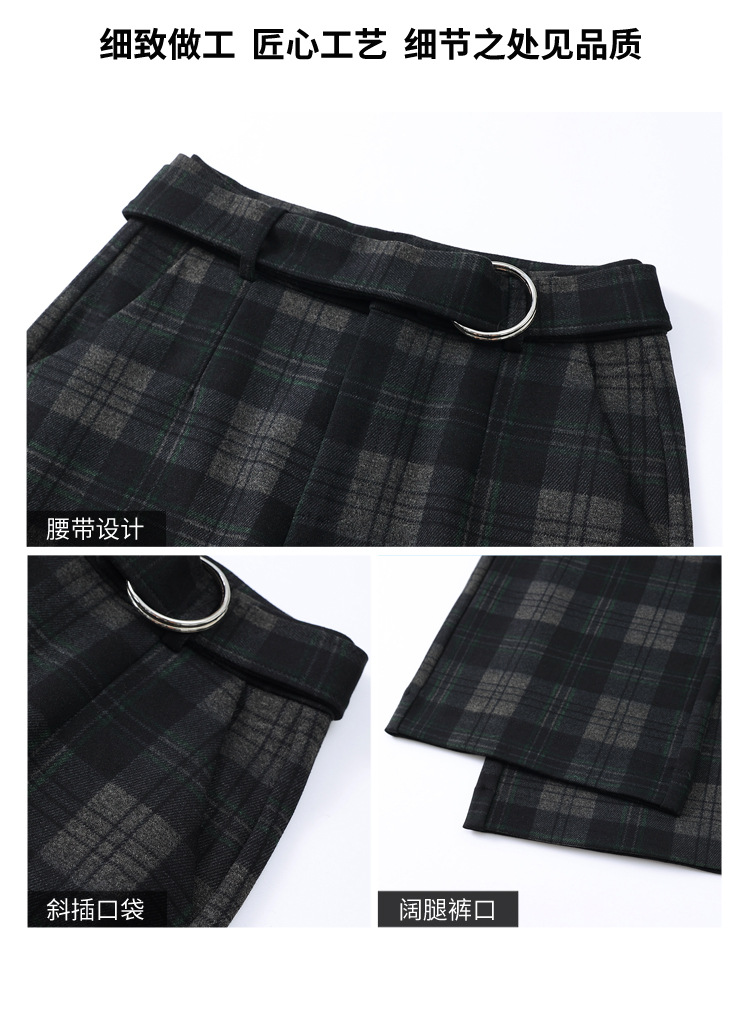 毛呢格纹裤休闲裤,时尚直筒裤长款女裤QYM- AZR-7017-Y