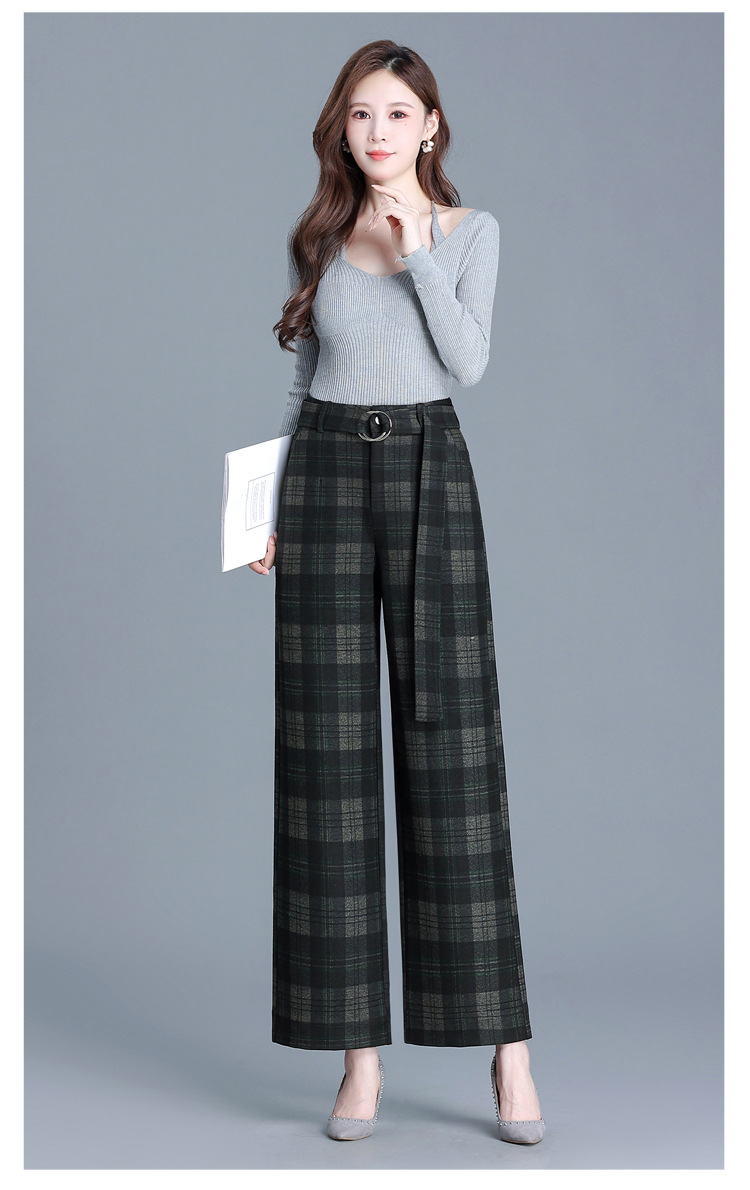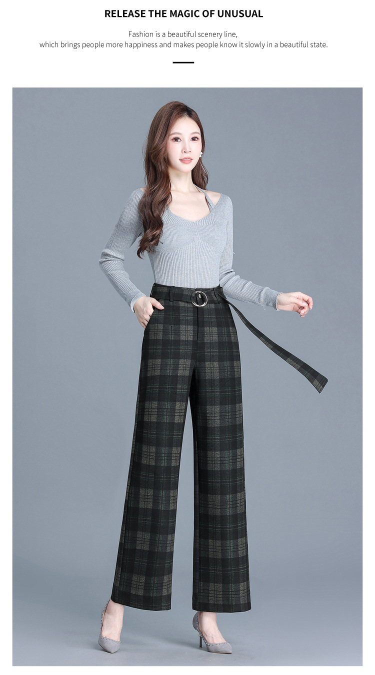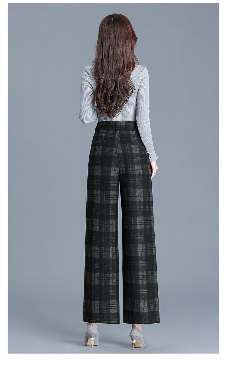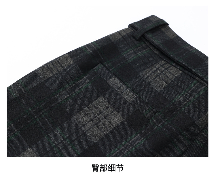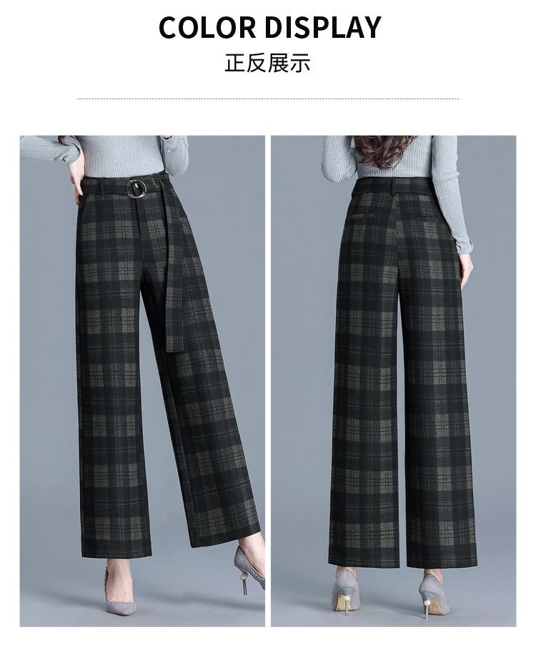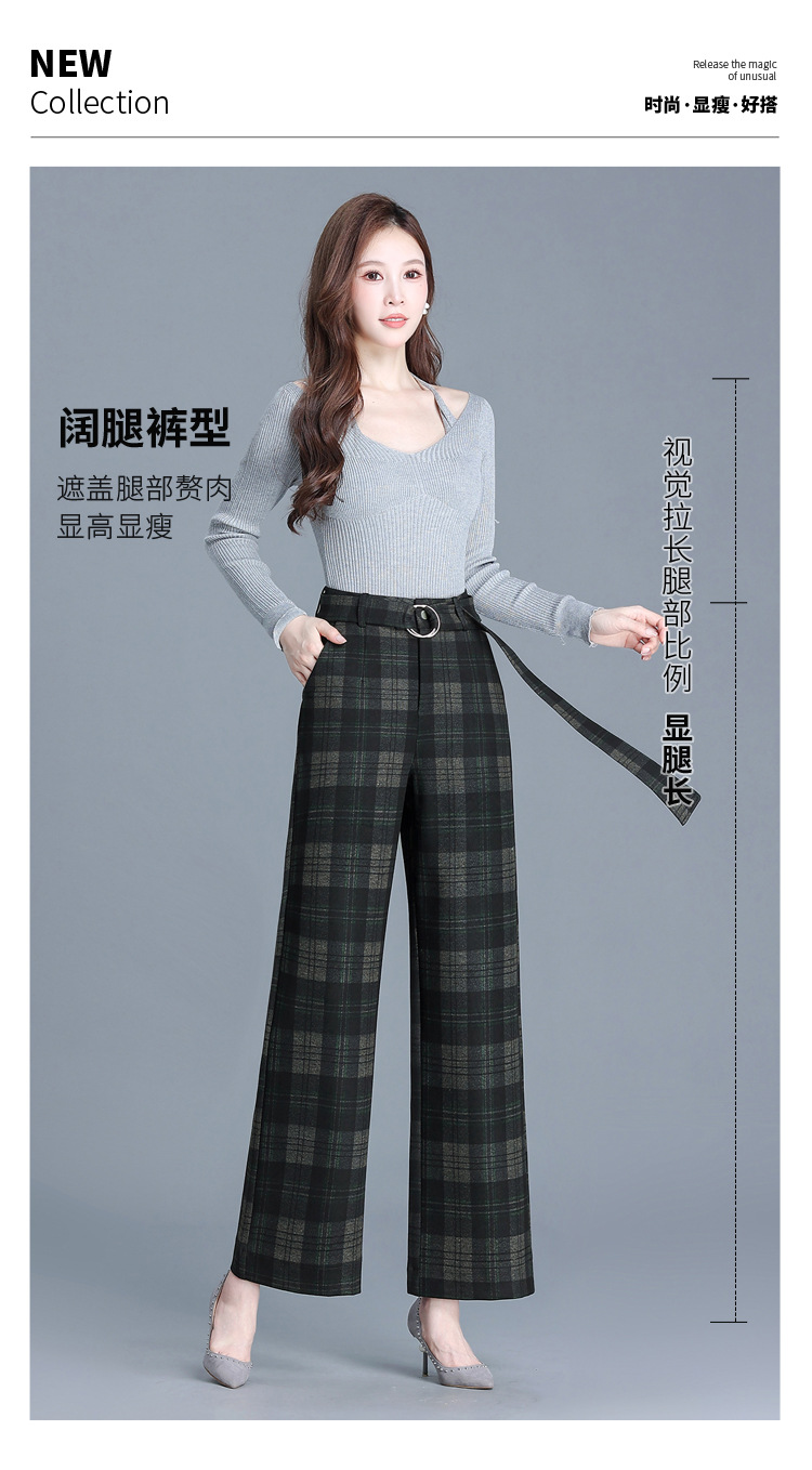毛呢格纹裤休闲裤,时尚直筒裤长款女裤QYM- AZR-7017-Y