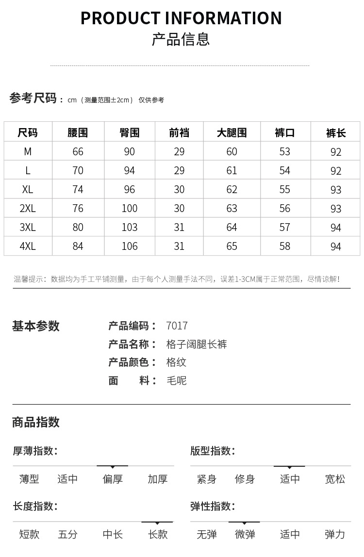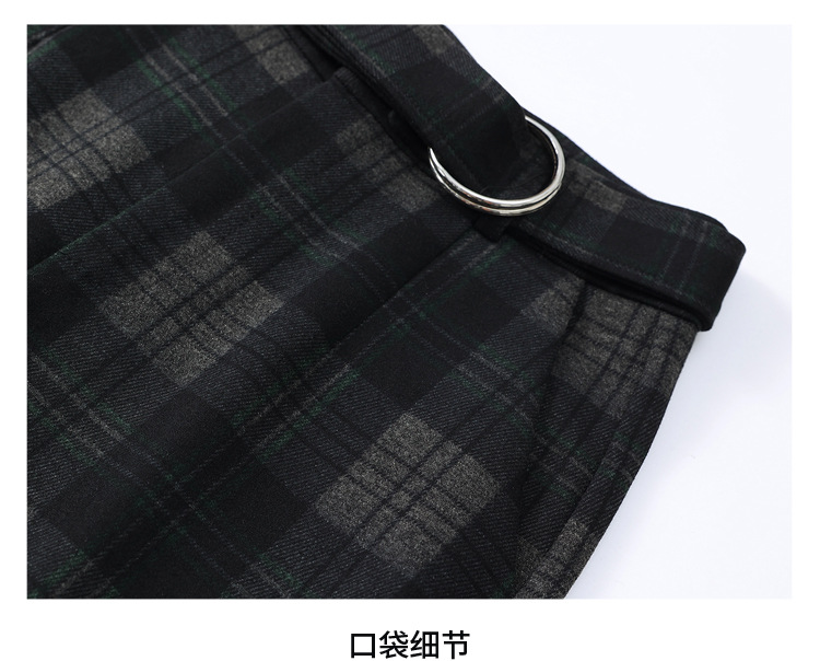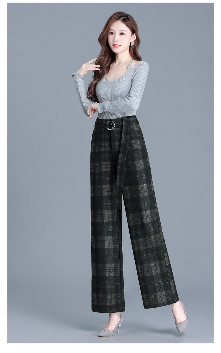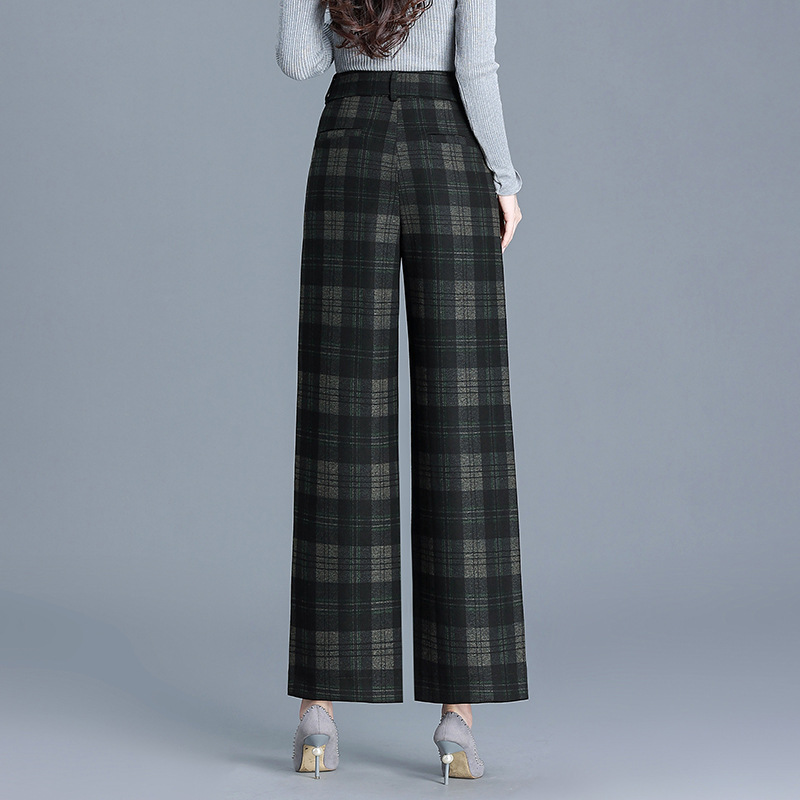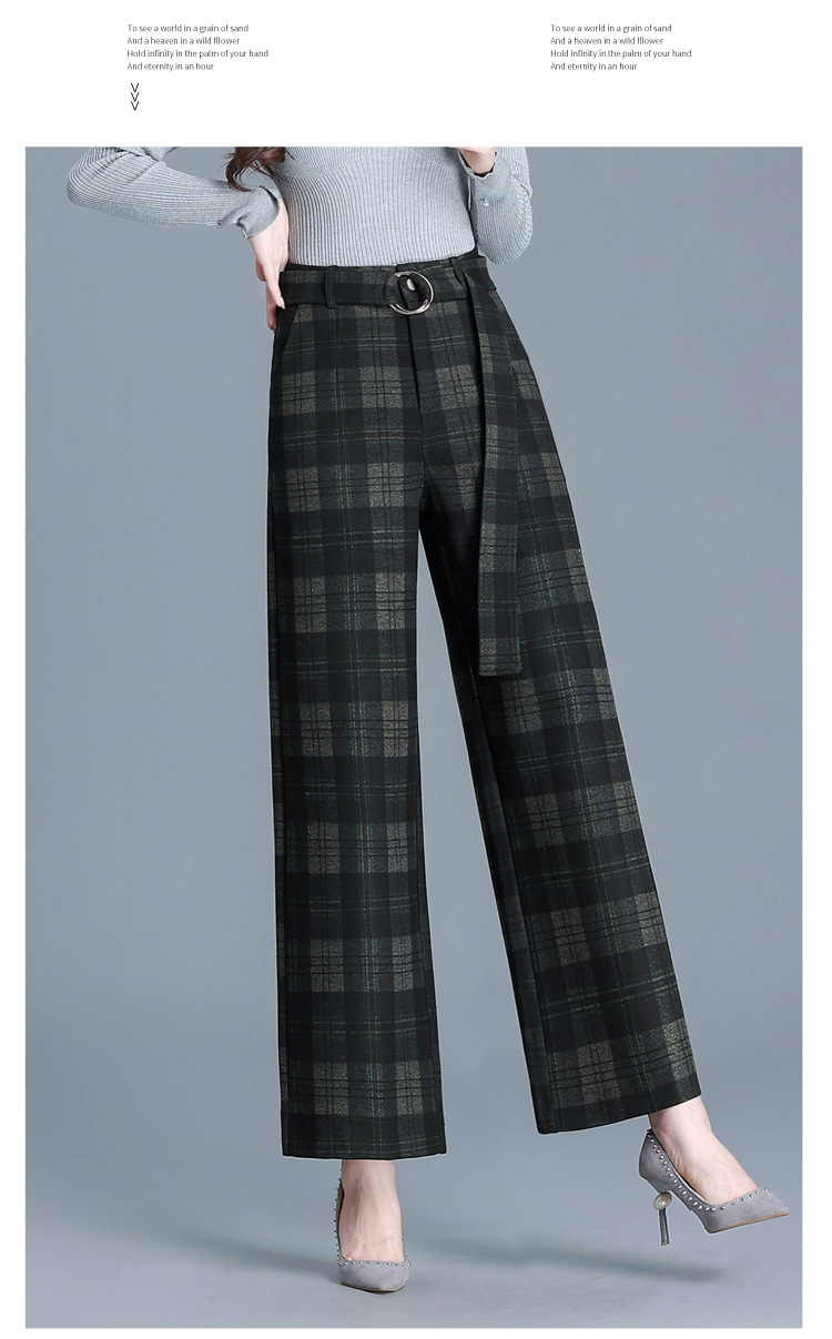 毛呢格纹裤休闲裤,时尚直筒裤长款女裤QYM- AZR-7017-Y