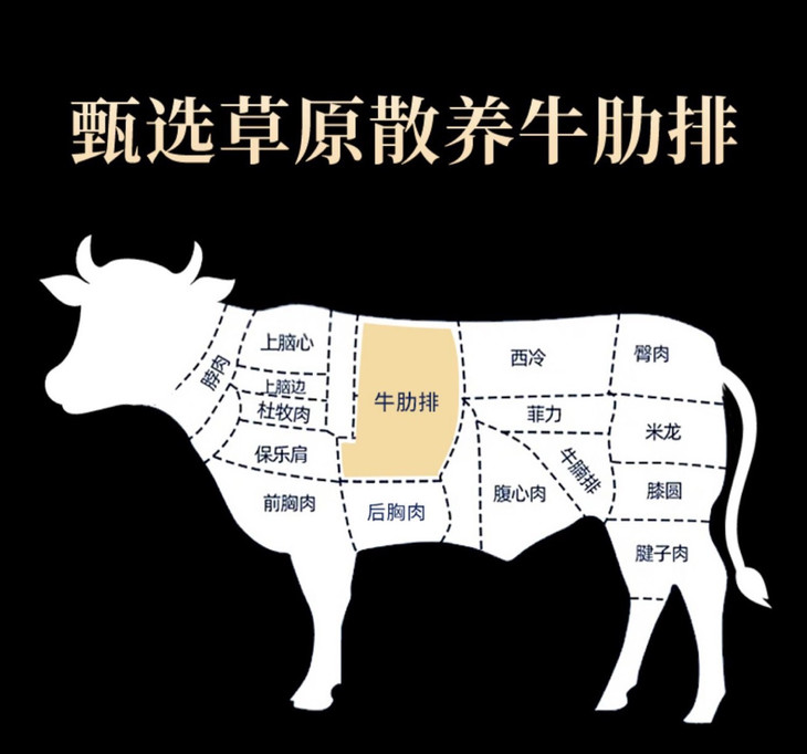一头牛就数这精华最多,在胸腔两侧,由 6 - 8 根规则肋骨和脊肉组成。