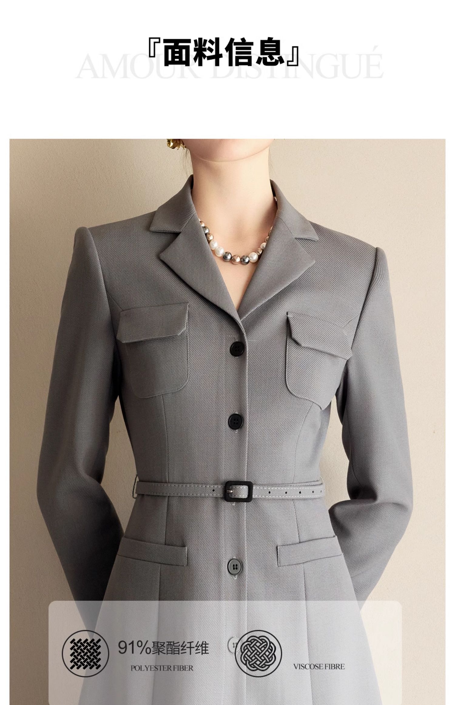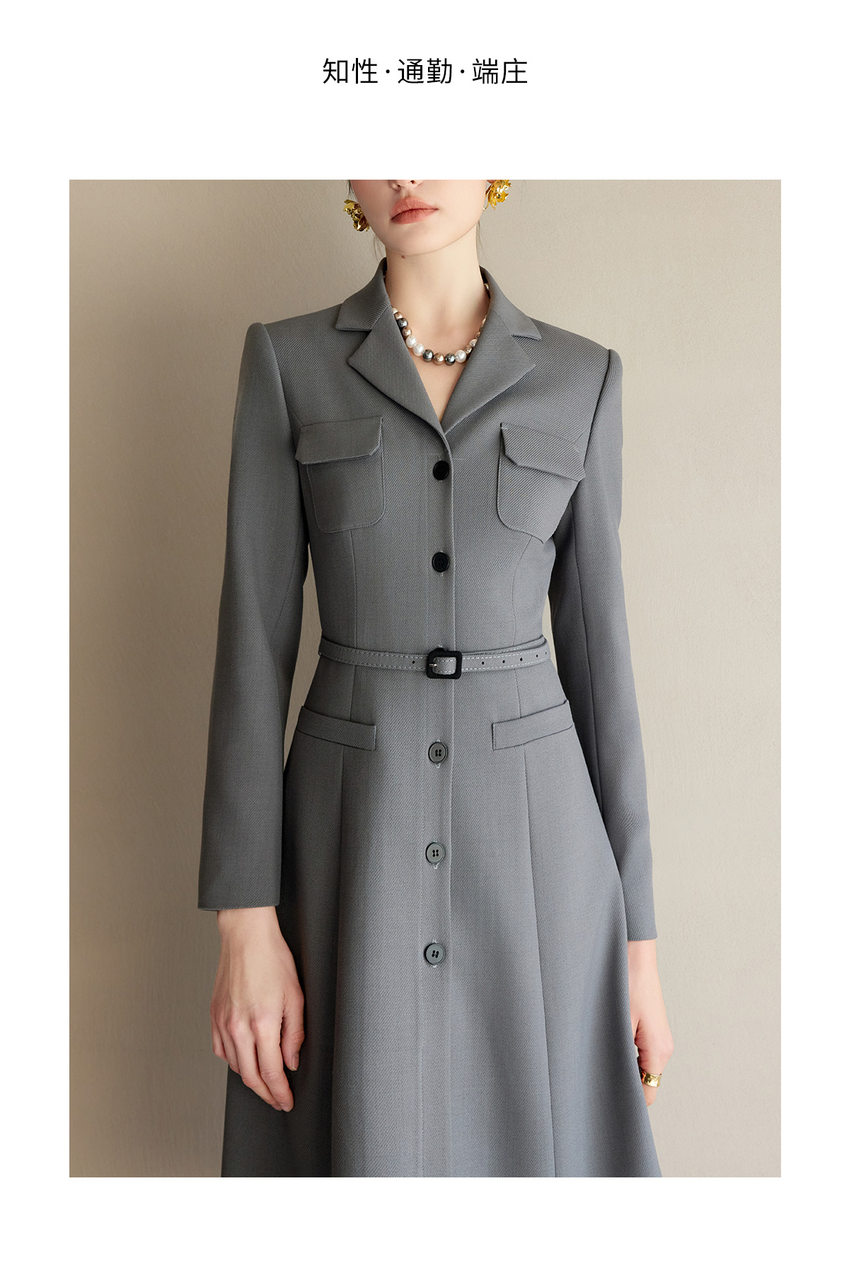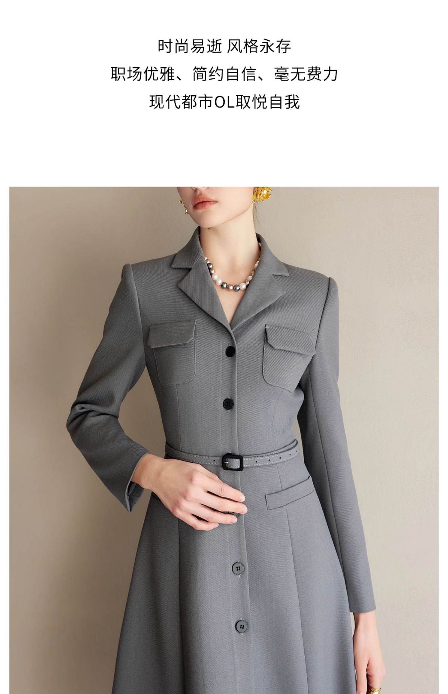 IWY/高端翻领灰色西装连衣裙女时尚干练销售职业裙装通勤工作服Q1284